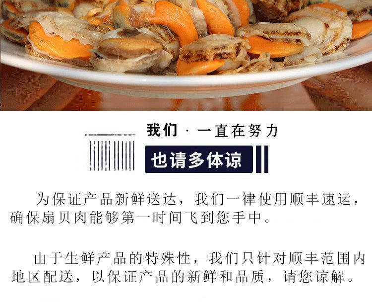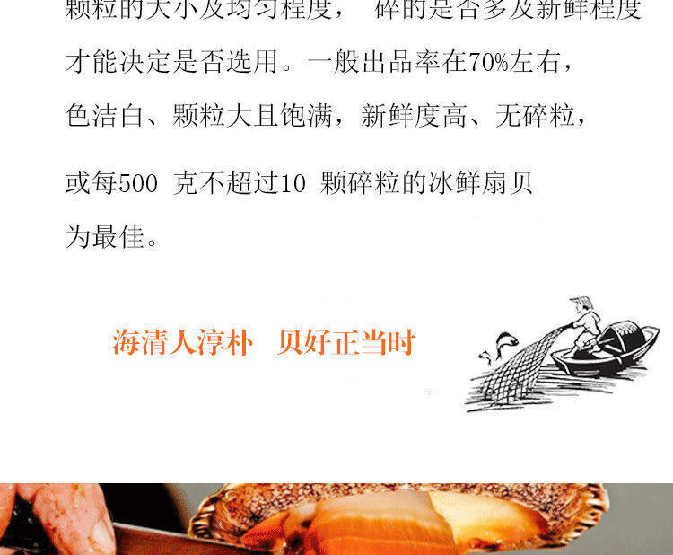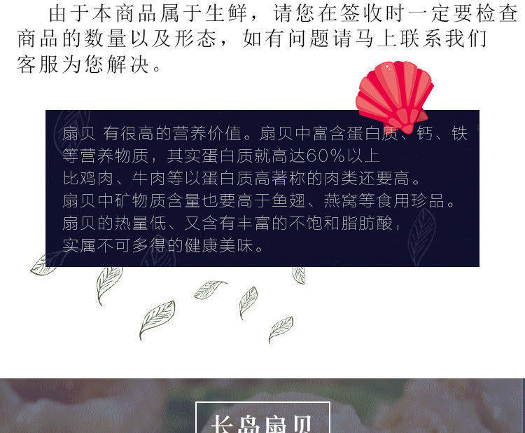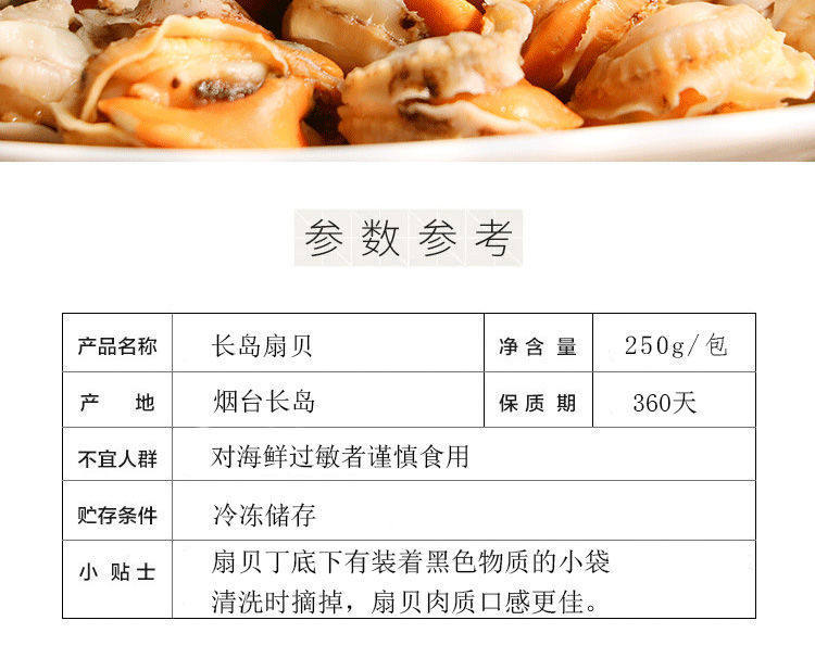 | Packaging specifications | 8 packs of 2000g/selected [freshly peeled on the same day]-[large size] authentic long island scallops,6 packs of 1500g/selected [freshly peeled on the same day]-[large size] authentic long island scallops,2 packs of 500g/selected [freshly peeled on the same day]-[large size] authentic long island scallops,1 pack of 250g/[tasting size] not enough to eat-[large size] authentic long island scallops |