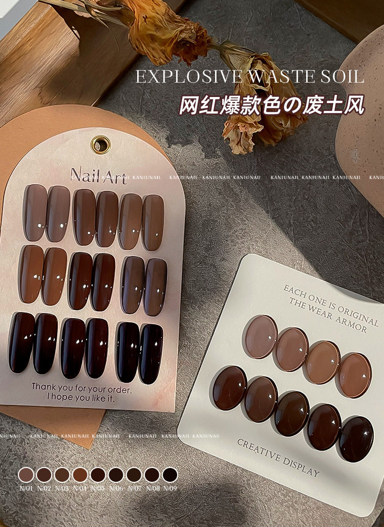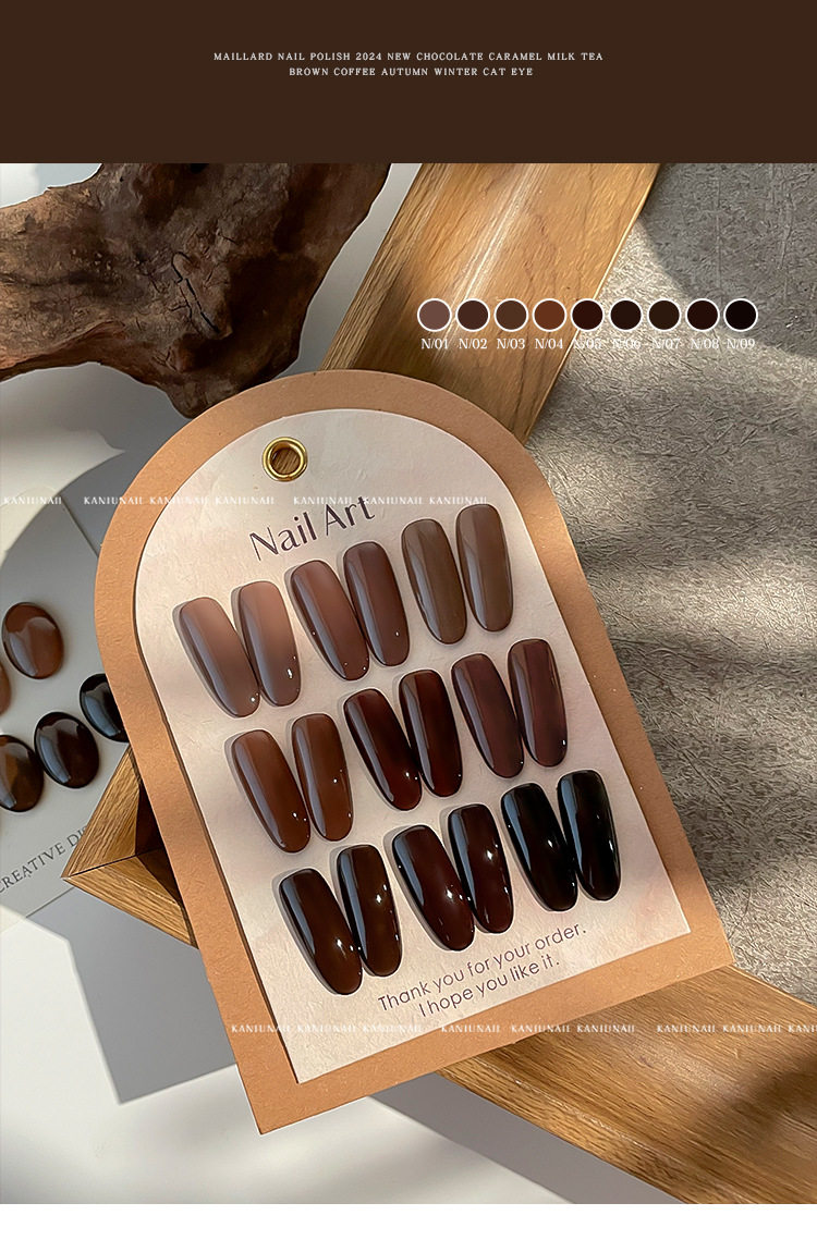 | Product name | Nail art wasteland style amber maillard 2024new arrivalfall and winter whitening caramel amber chocolate black nail glue |