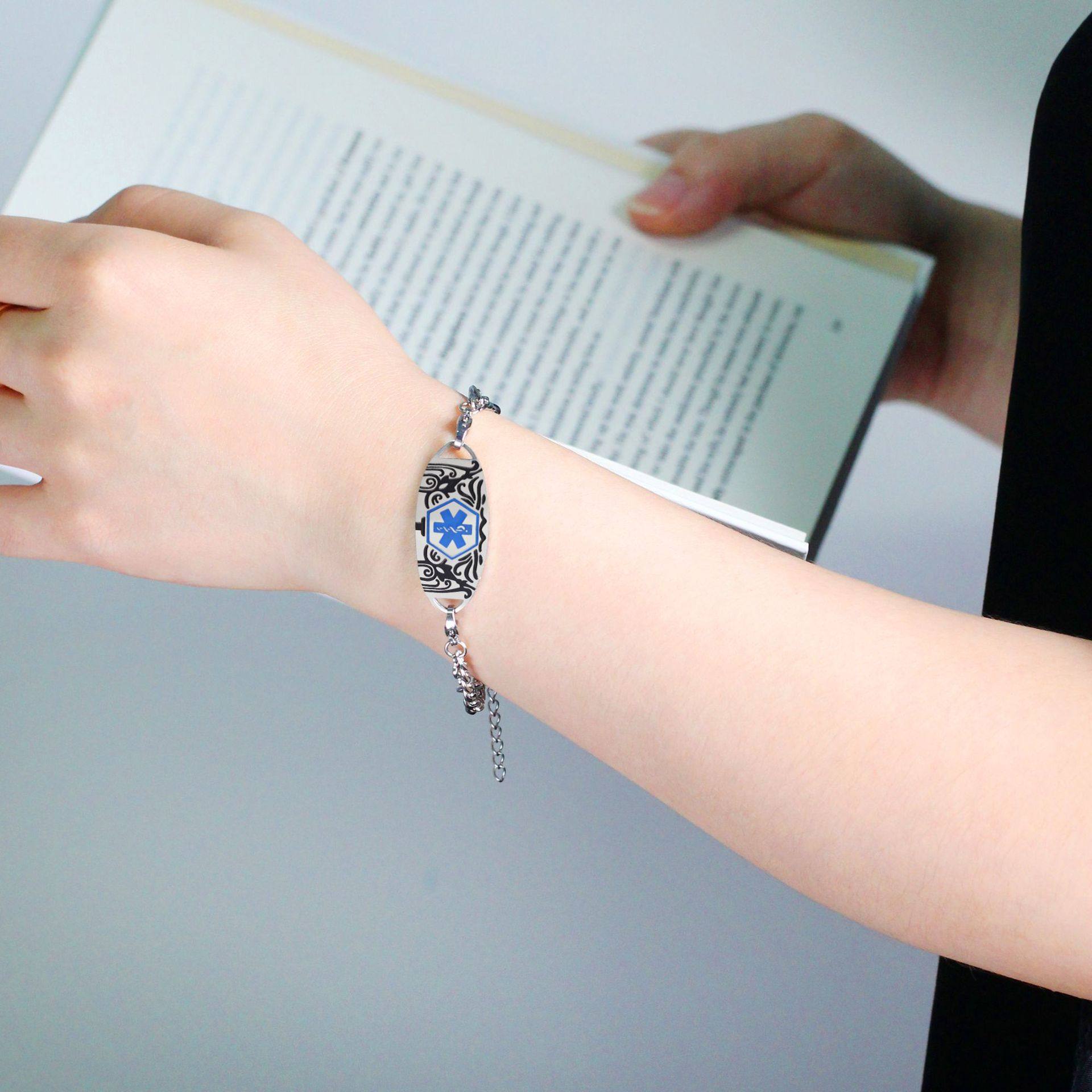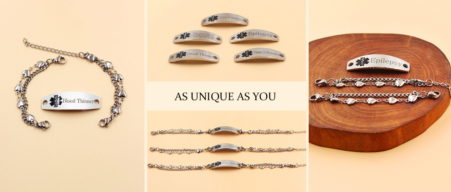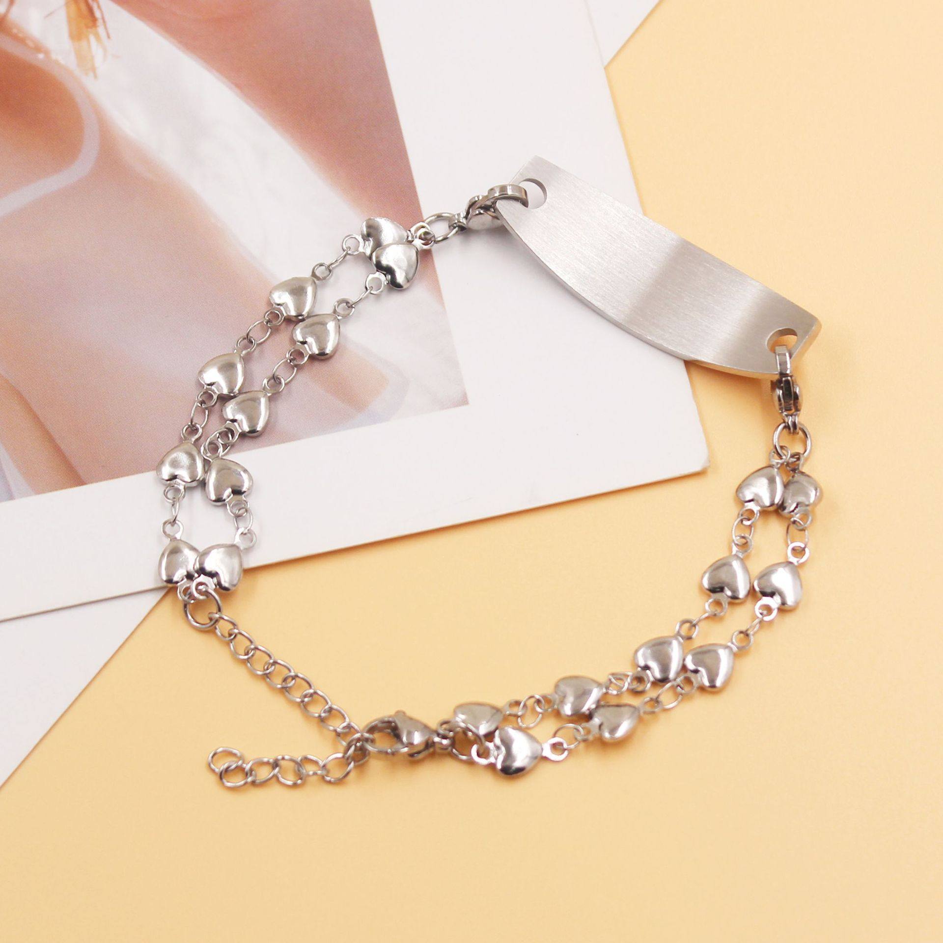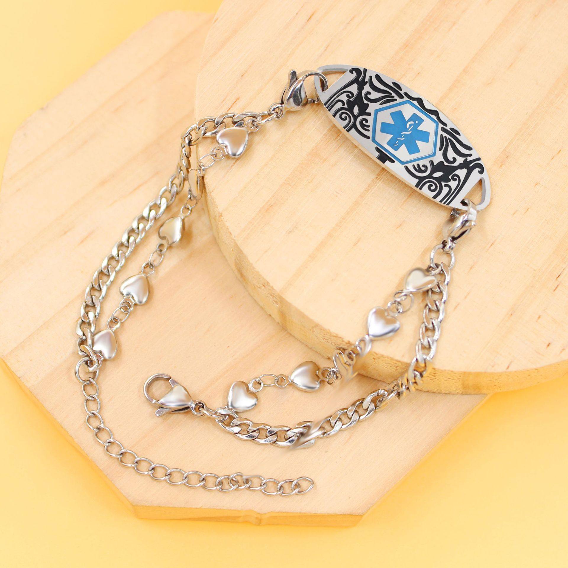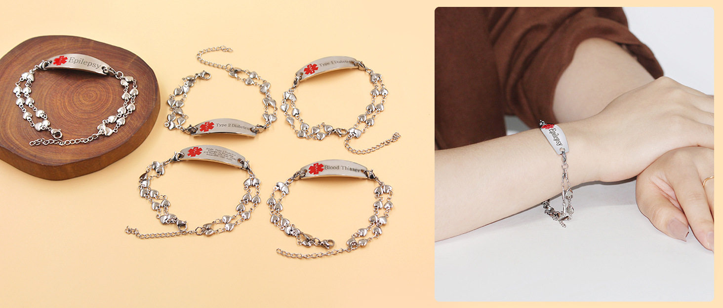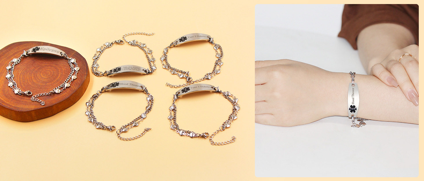 Cross-border Hot Sale Titanium Steel Bracelet Stainless Steel Bend Brand Medical Logo Engraving Detachable Double Layer Bracelet