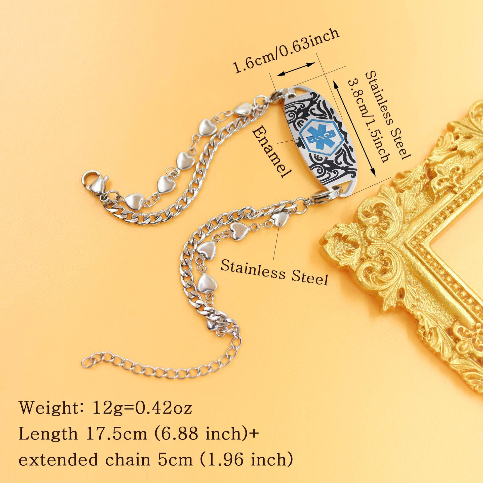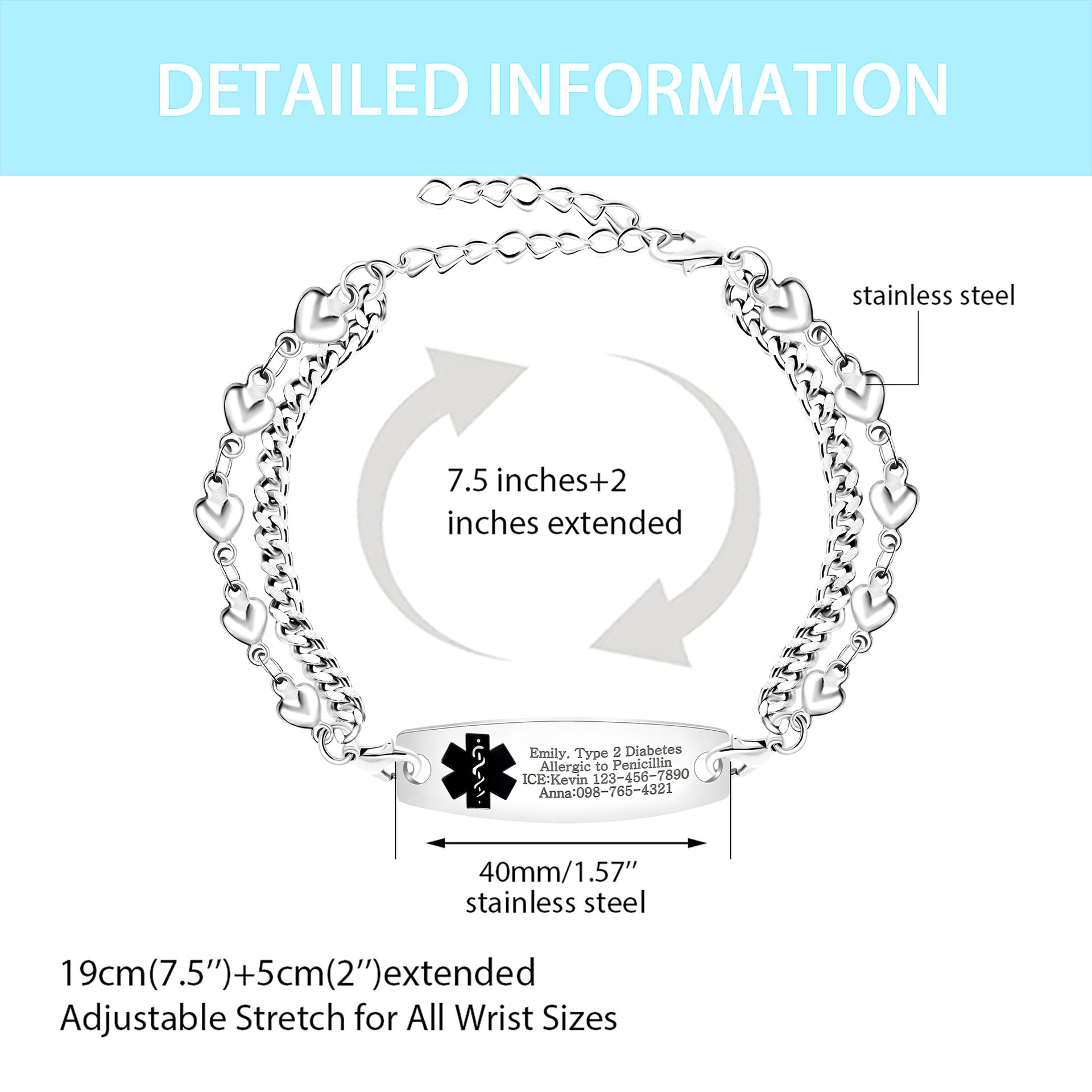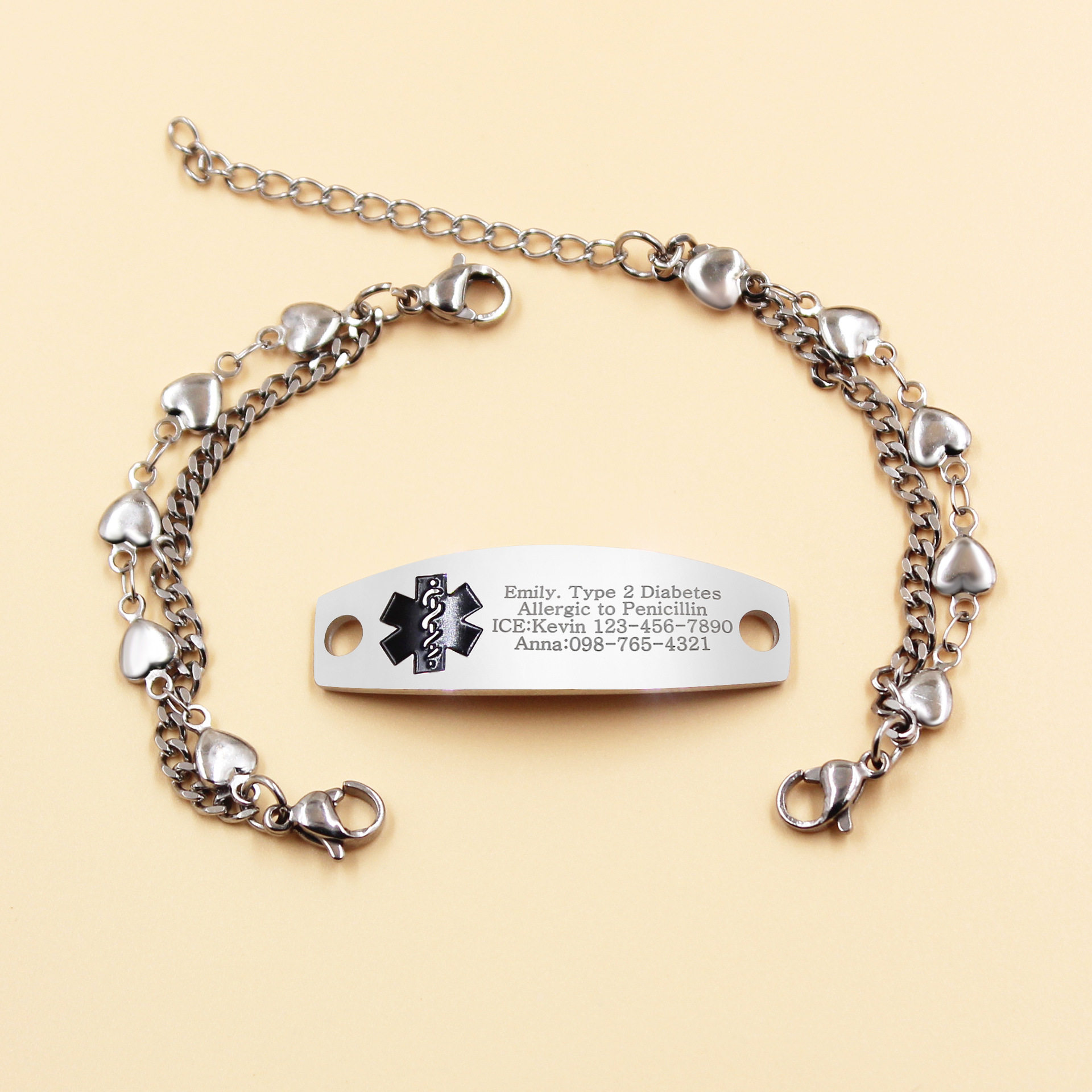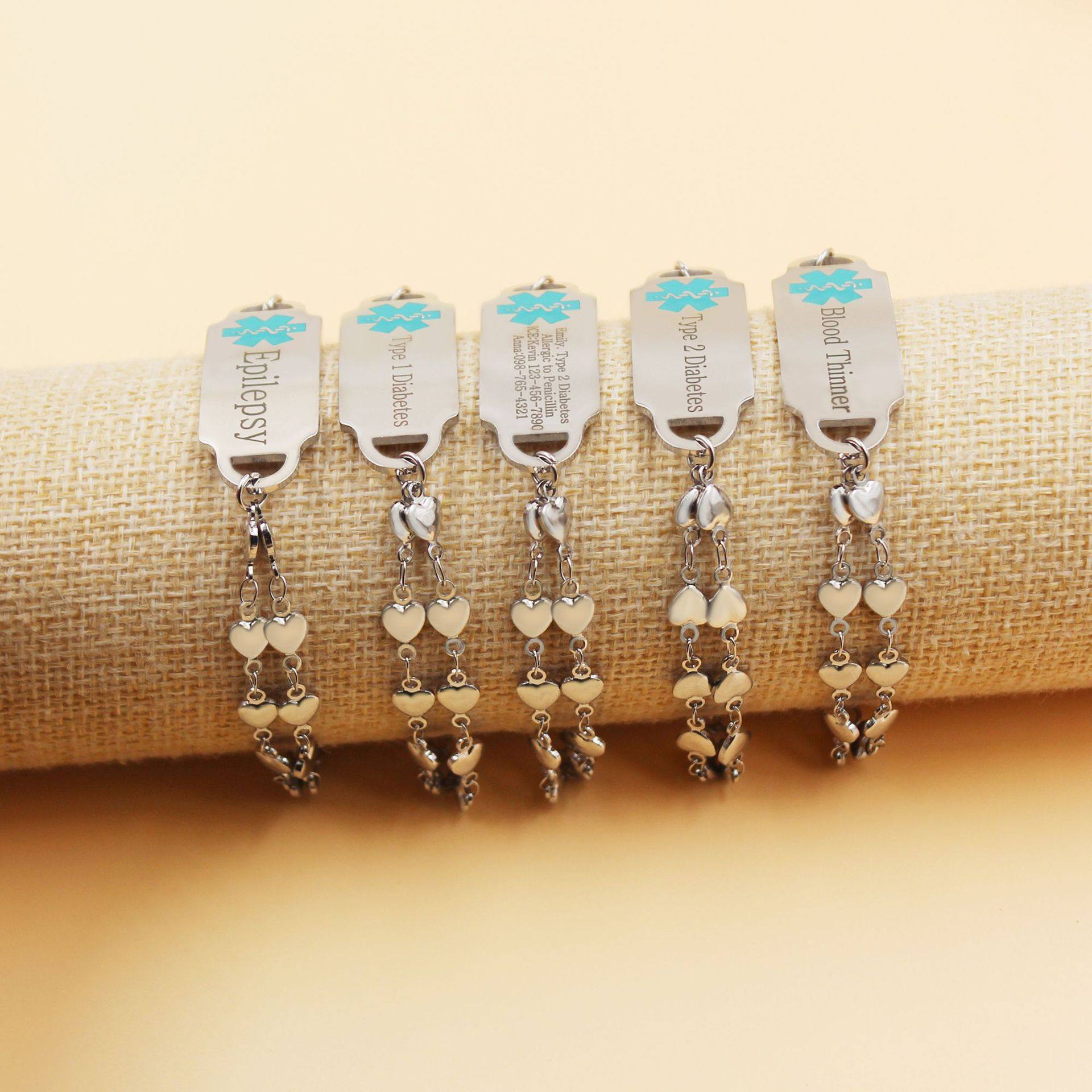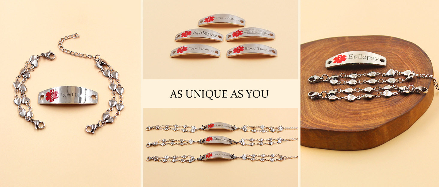Cross-border Hot Sale Titanium Steel Bracelet Stainless Steel Bend Brand Medical Logo Engraving Detachable Double Layer Bracelet