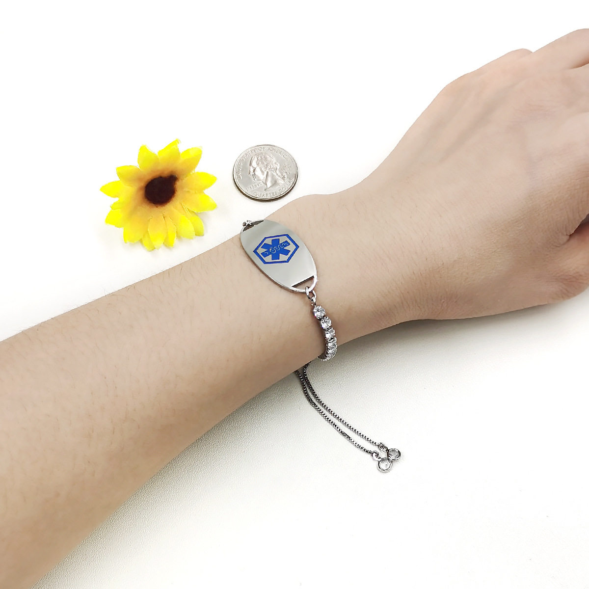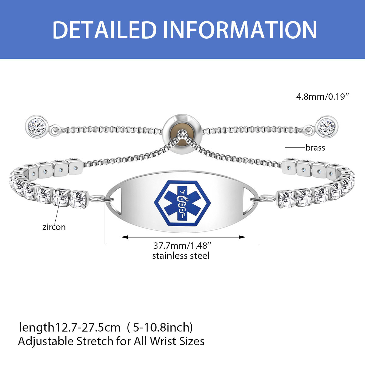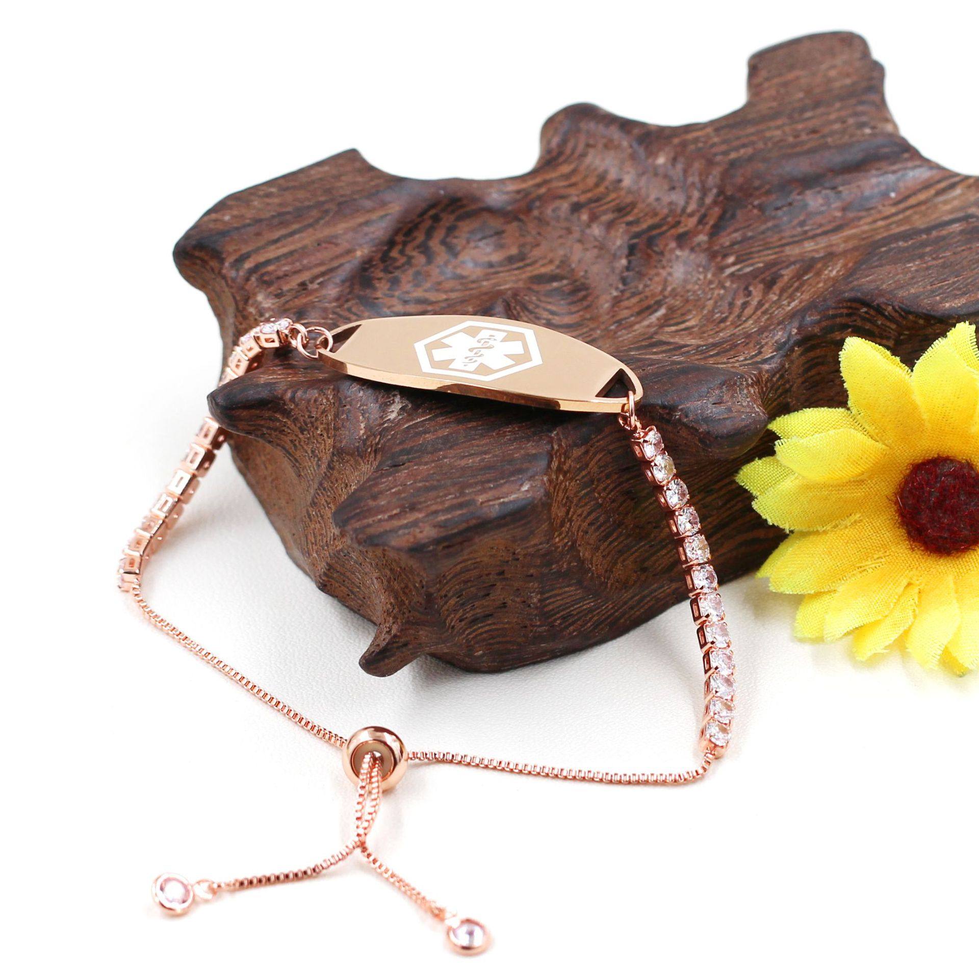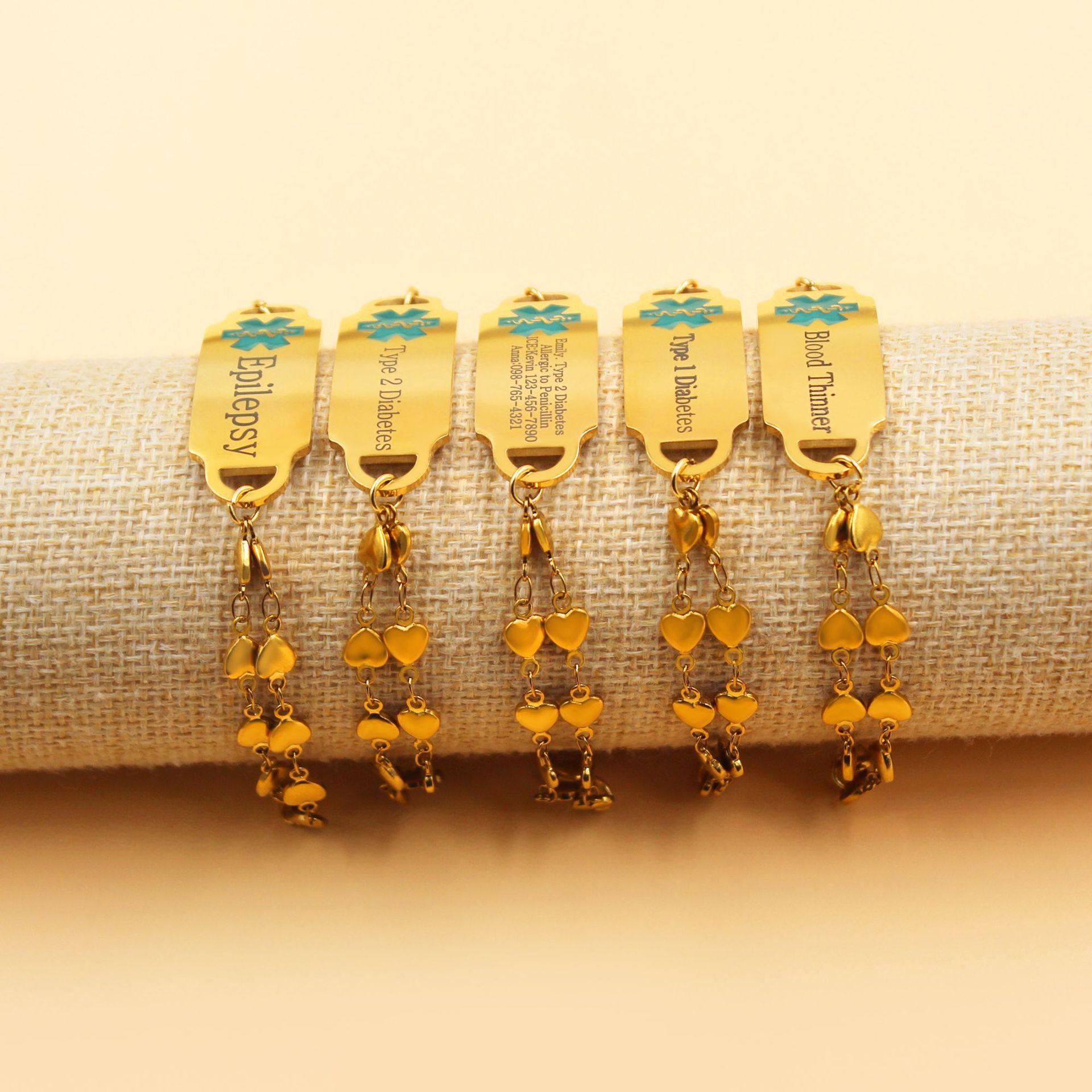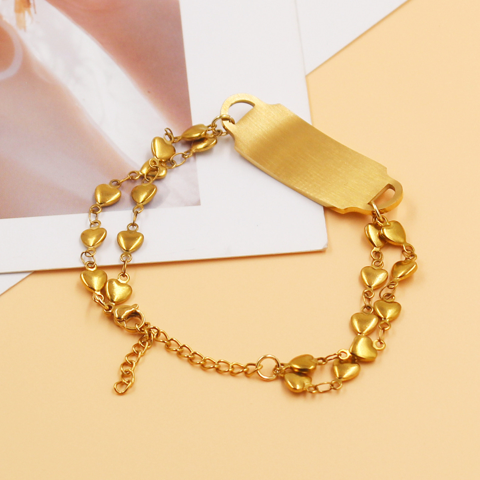 Cross-border Hot Sale Titanium Steel Bracelet Stainless Steel Bend Brand Medical Logo Engraving Detachable Double Layer Bracelet