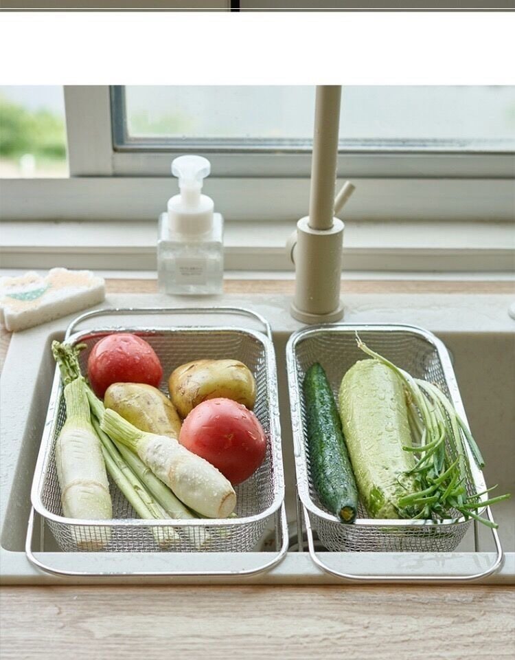 Retractable Draining Basket Stainless Steel Vegetable Washing Basin Storage Rack Kitchen Dishwasher Trough Draining Rack Sink Water Filtering Artifact
