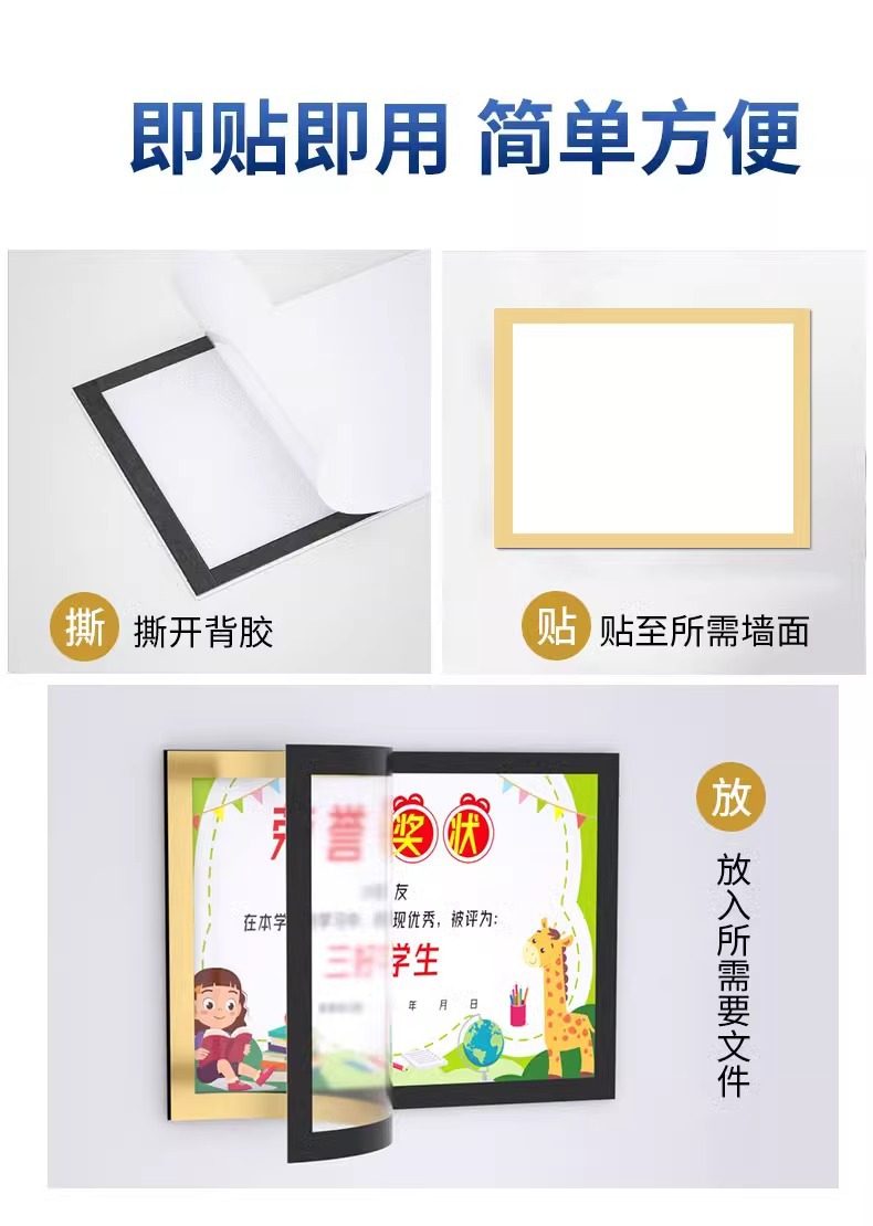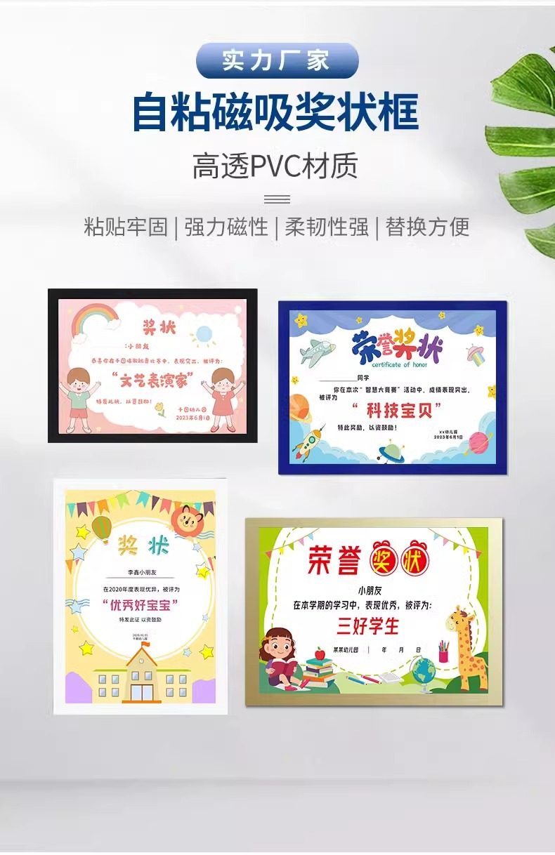 Certificate Storage Wall-Mounted Display Frame Picture Frame Mounting Frame Magnetic Display Sticker Photo Frame Protection Wall Sticker Nail-Free A4