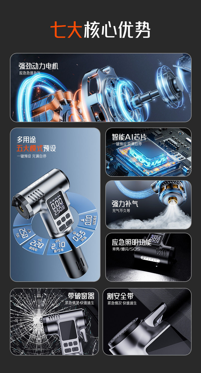 Car wireless safety hammer car bicycle car motorcycle tire electric pump portable air pump