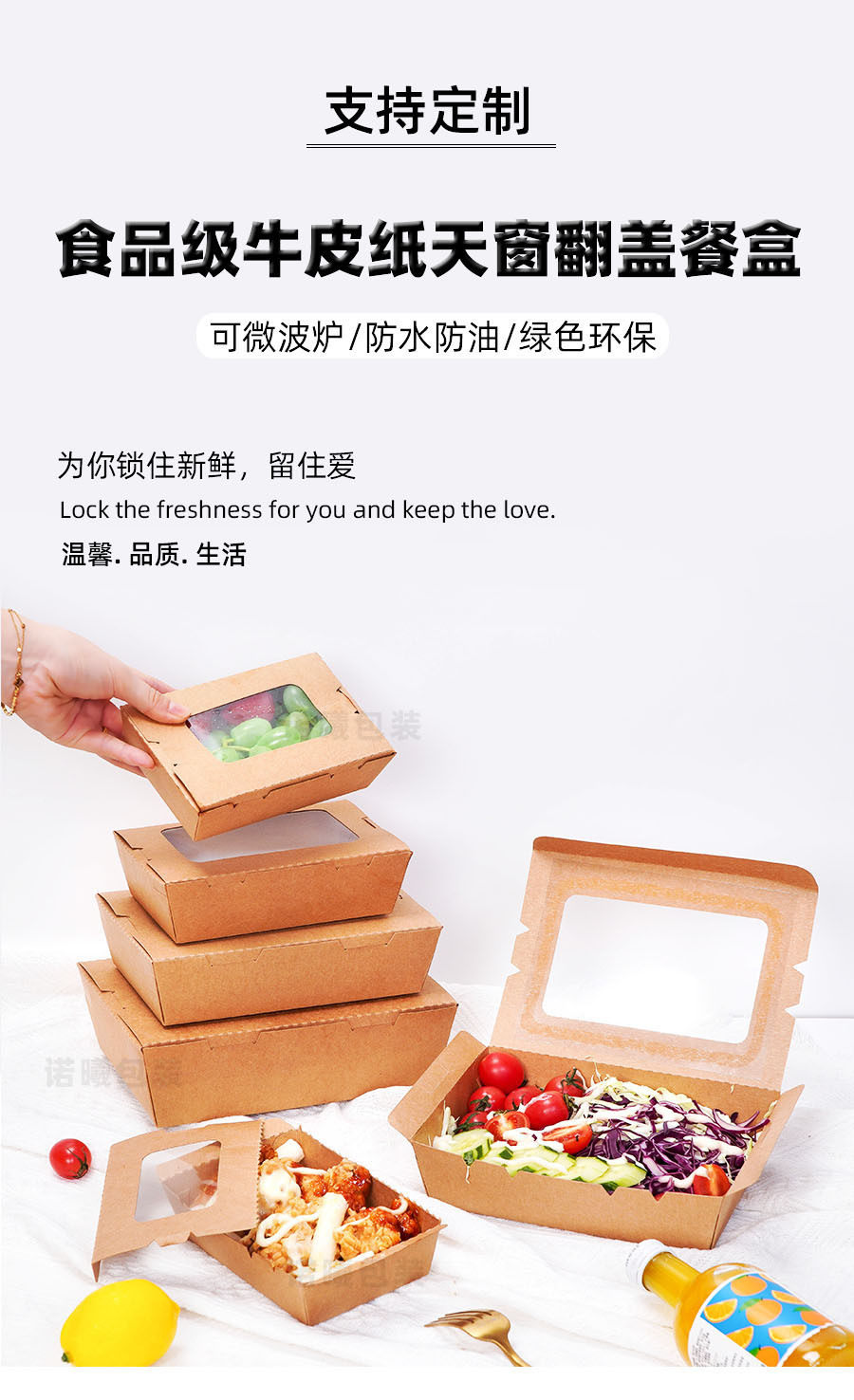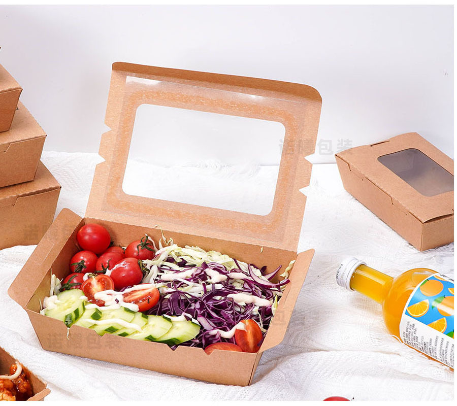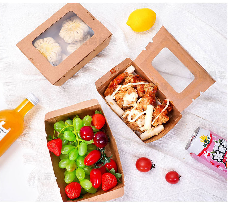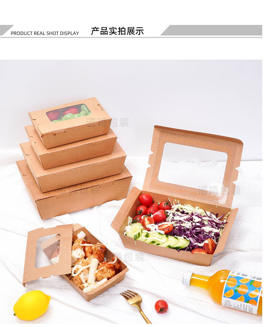 Kraft paper packing box visual window disposable salad box takeout lunch box fruit sushi paper box light food lunch box