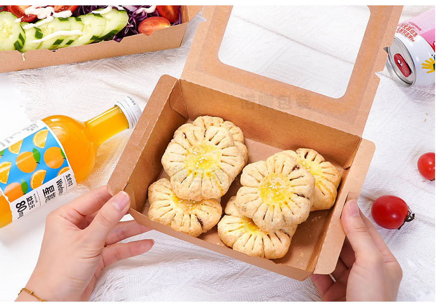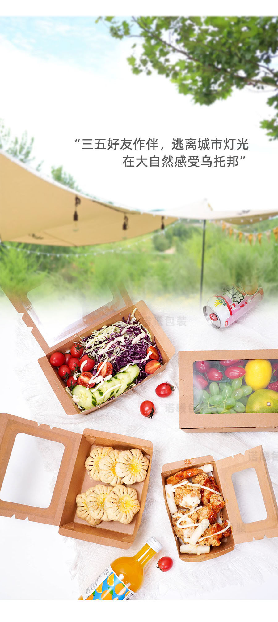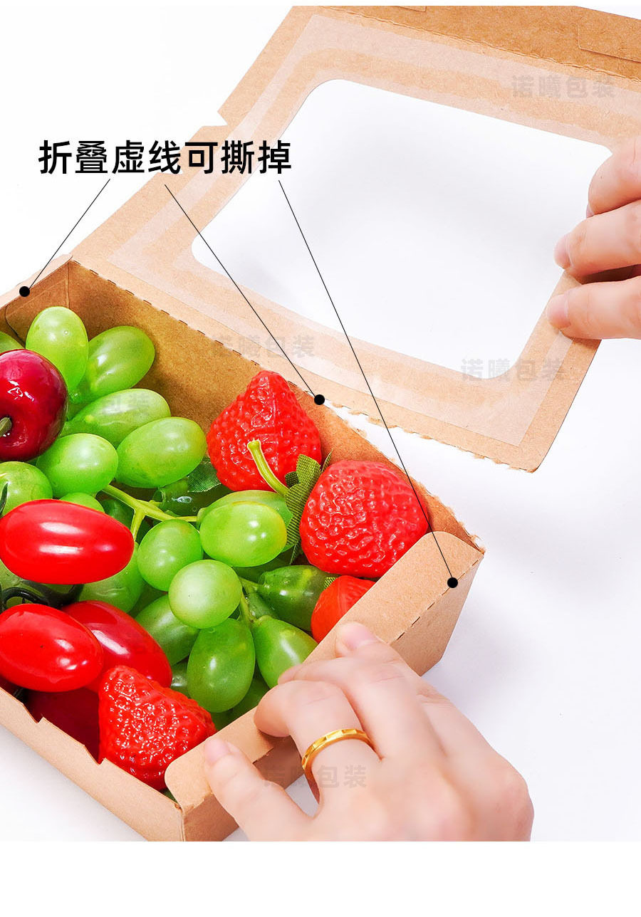 Kraft paper packing box visual window disposable salad box takeout lunch box fruit sushi paper box light food lunch box