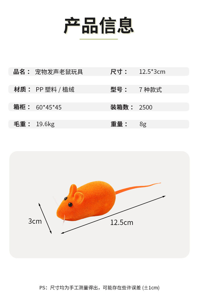 Wholesale pet sound toy cat and dog interactive simulation mouse vinyl flocking little mouse funny cat toy cross border