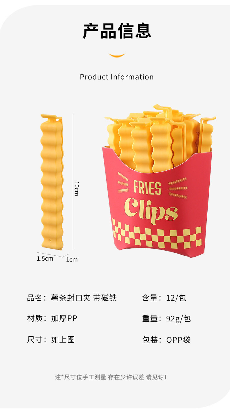 Cute French Fries Shaped Sealing Clip Cartoon Magnetic Refrigerator Snack Bag Moisture-Proof Sealing Clip Moisture-Proof Sealing