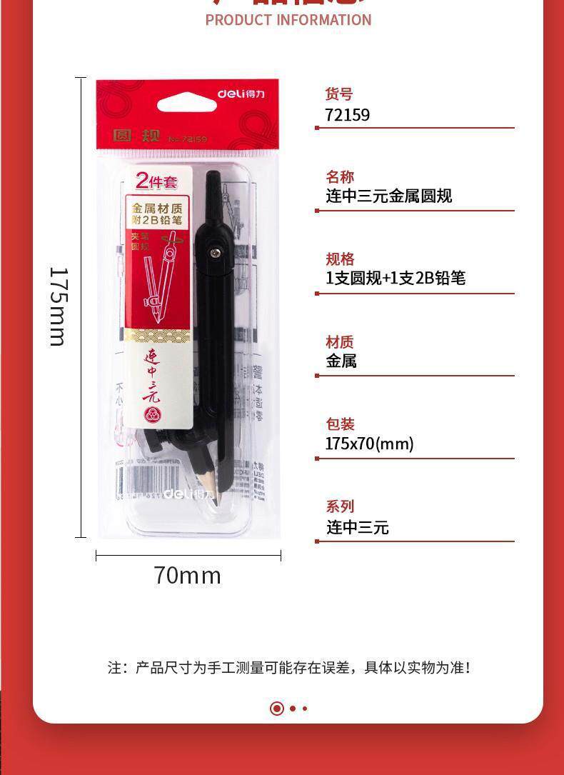 Deli Lianzhong Ternary compasses Can Clamp Pen Test Special 2-piece Set of compasses Pen Type compasses Drawing Drawing 72159