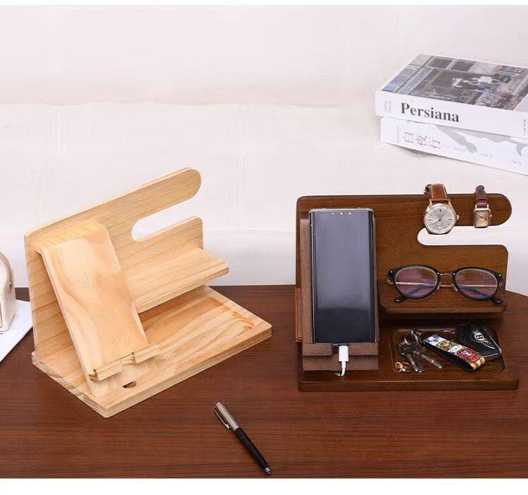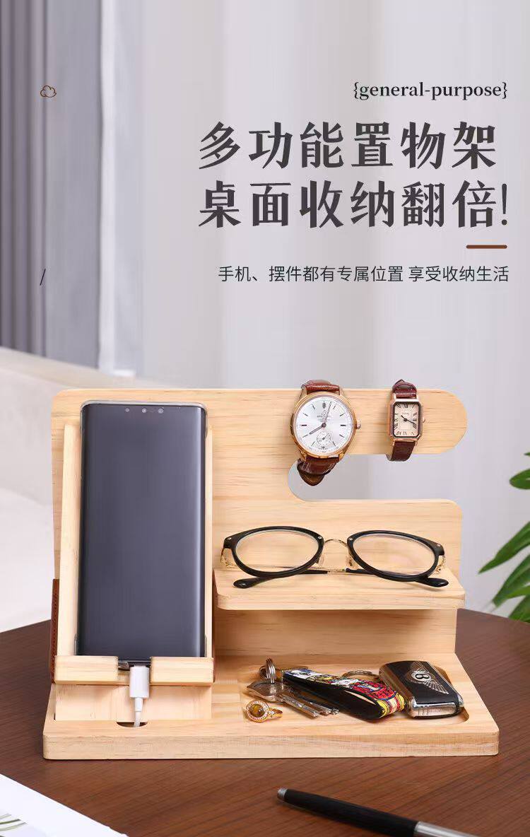 Solid Wood Storage Rack Office Desktop Mobile Phone Holder Glasses Watch Storage Rack Creative Simple Storage Rack