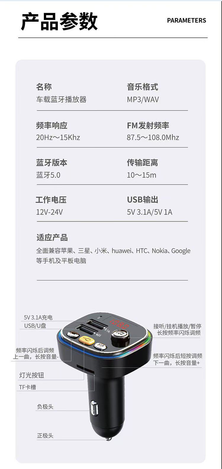 | Power supply mode | Cigarette lighter car mp3 |