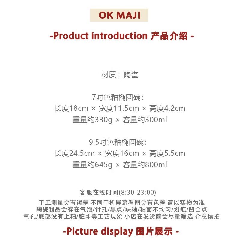 | Color | 7inch oval baked bowl-milk green,9.5inch oval baked bowl-milk white,9.5inch oval baked bowl-milk green |