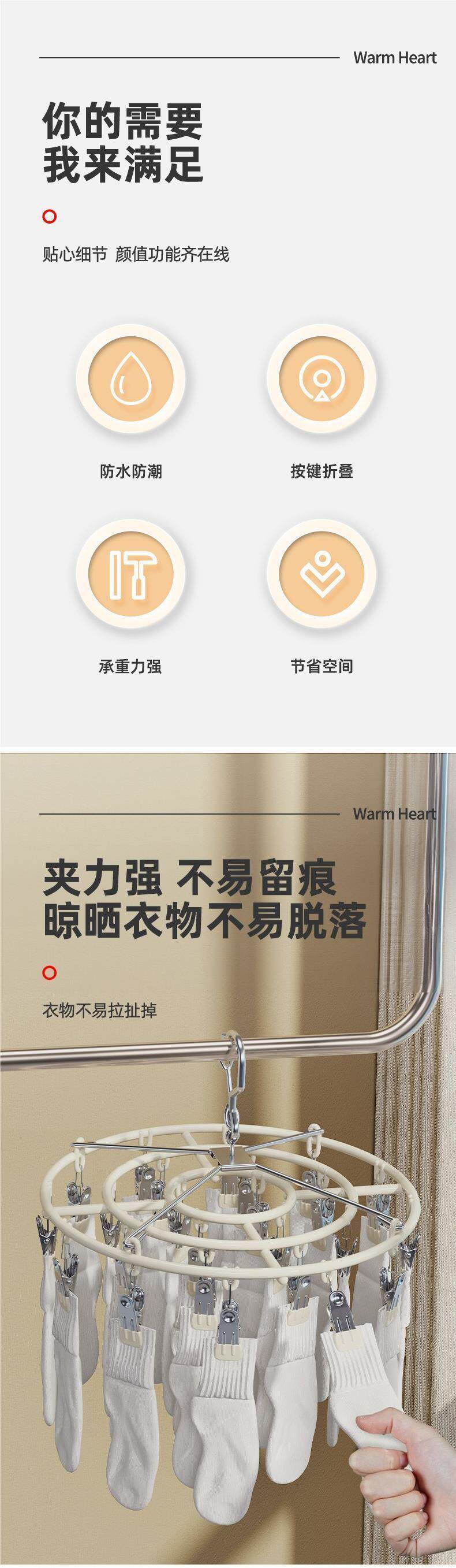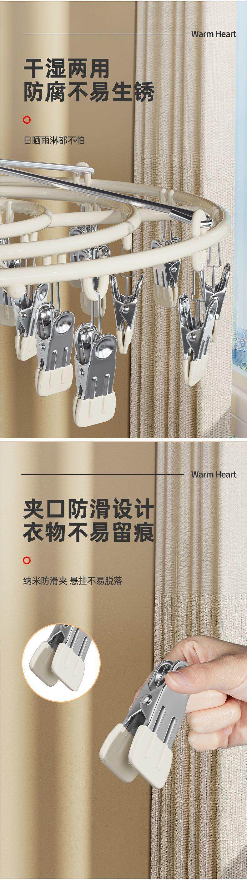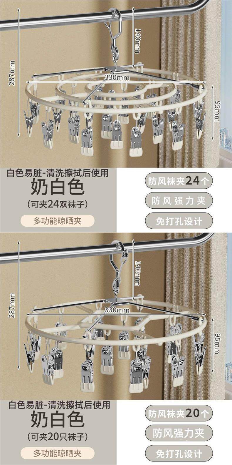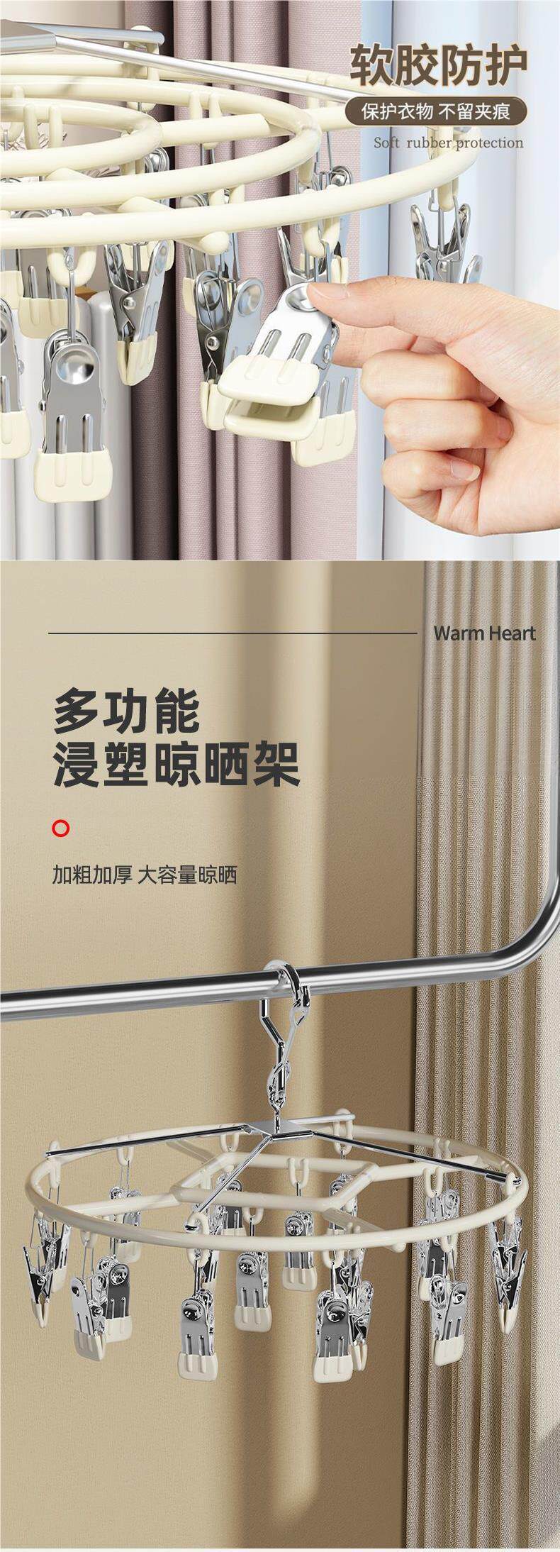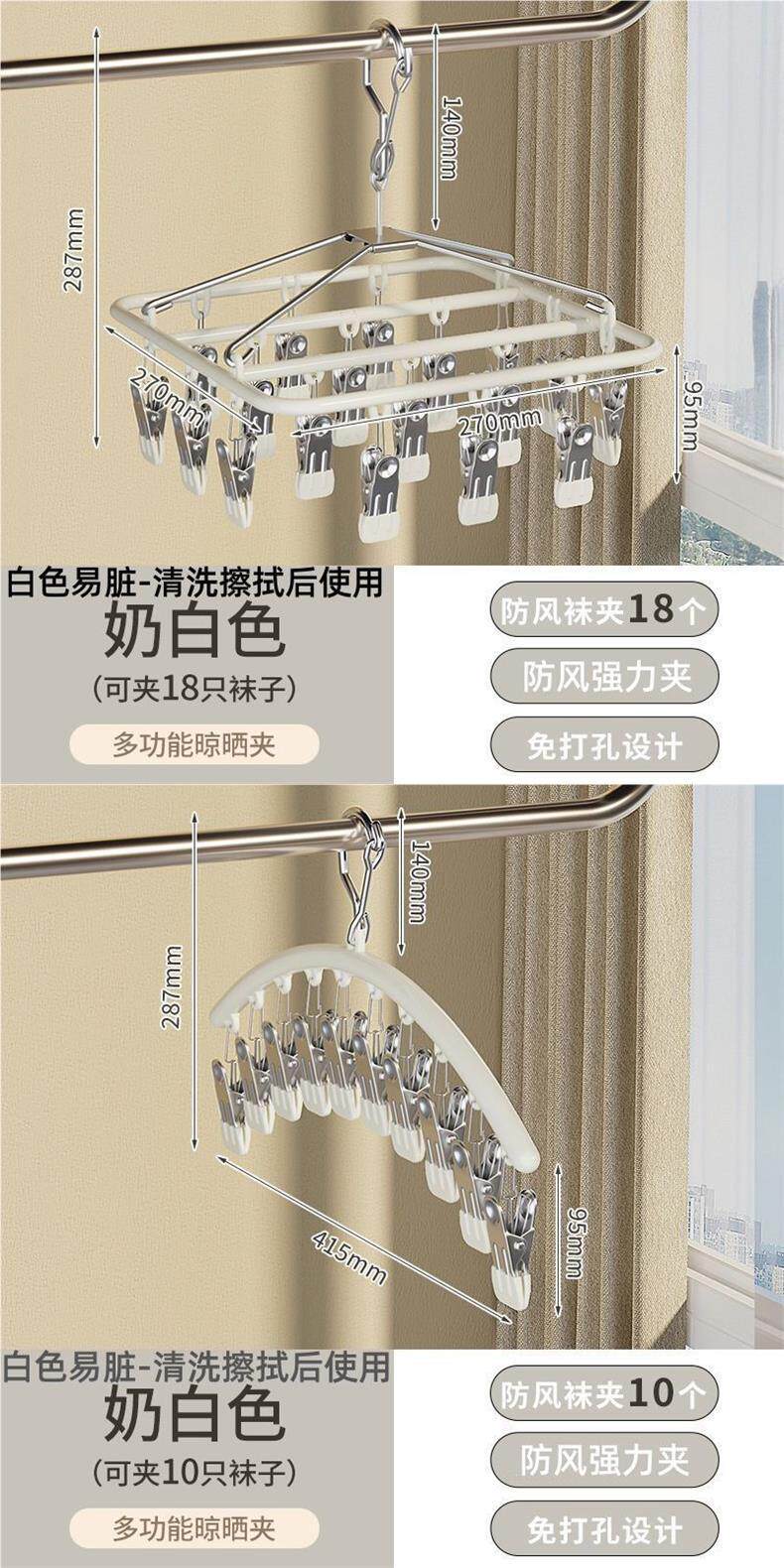 Sock drying rack multi-clip stainless steel underwear clip drying rack windproof balcony multifunctional inner hanger