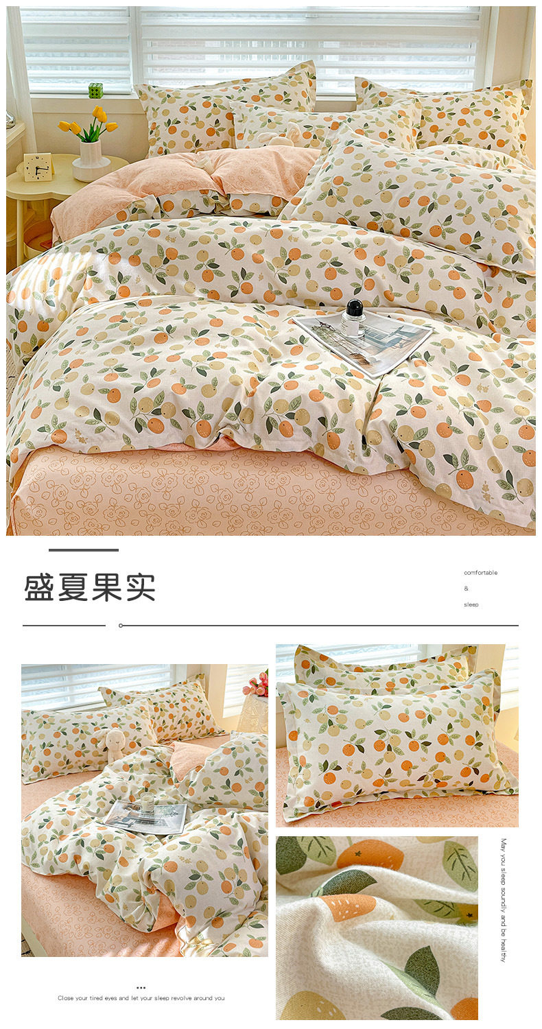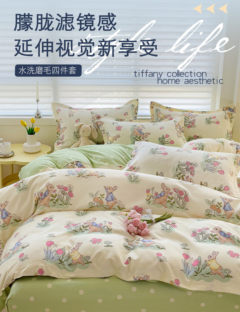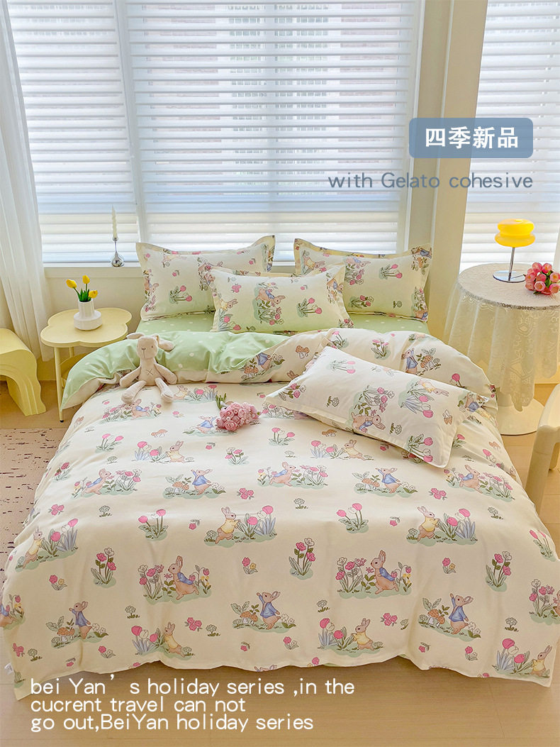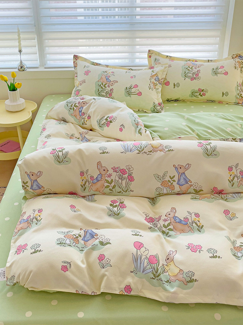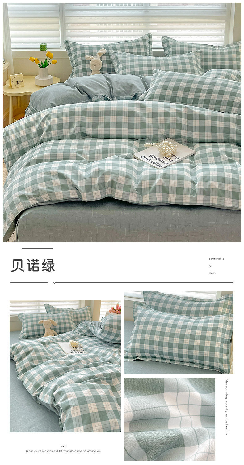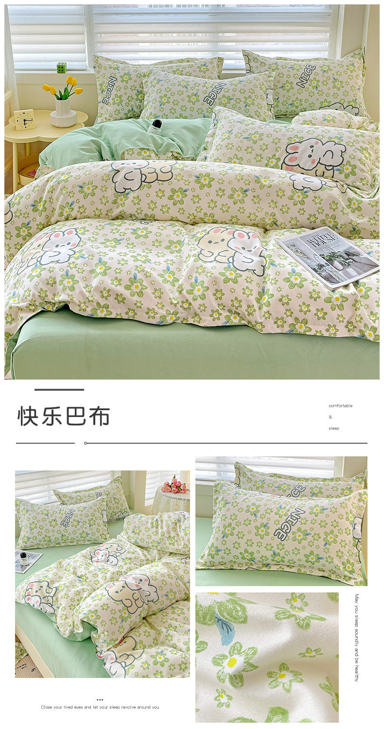 Class A Small Fresh Thickened Sanding Four-piece Set Washed Cotton Bed Sheet Quilt Cover Pillowcase Student Dormitory Three-piece Cover ins