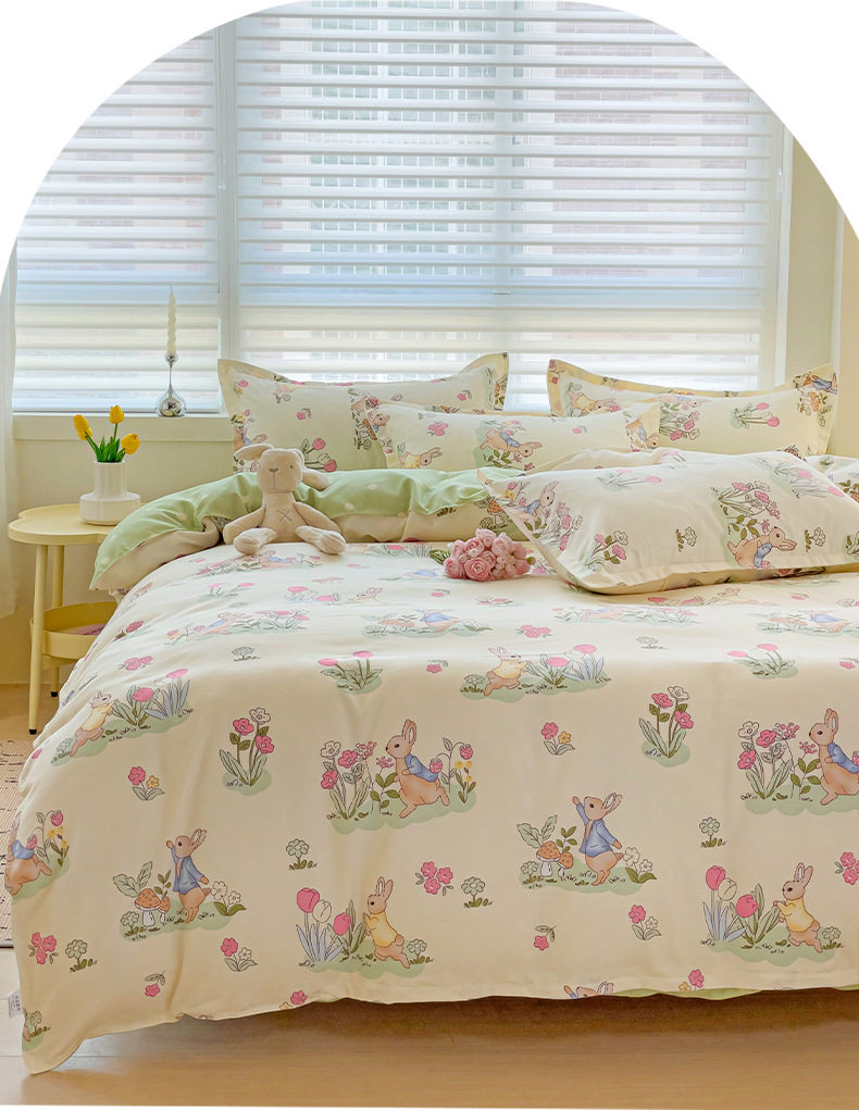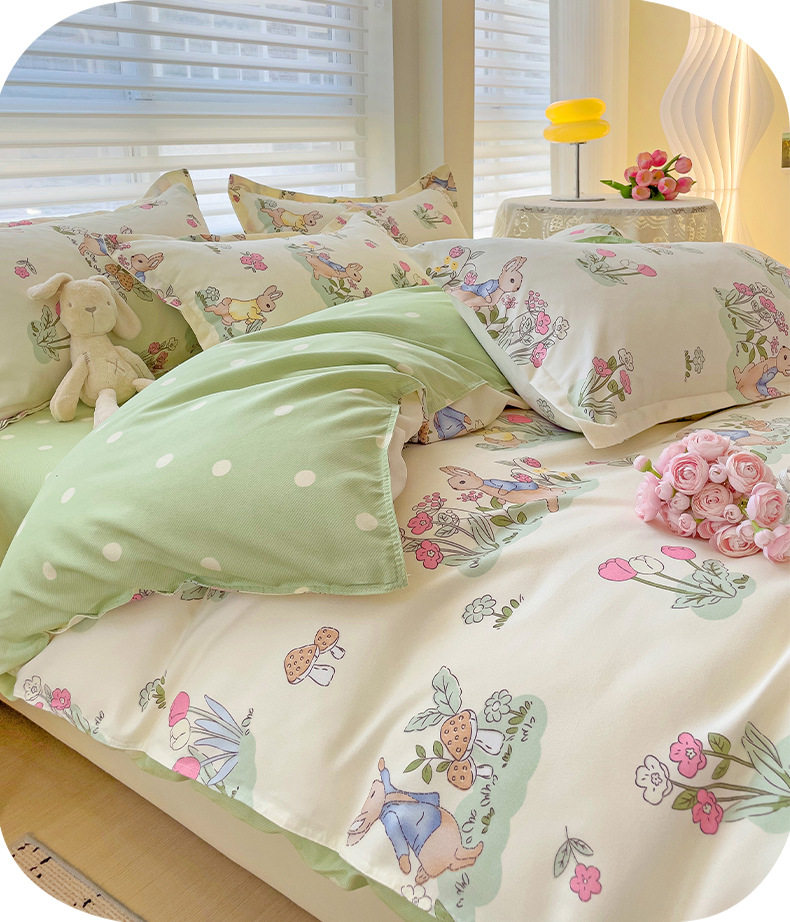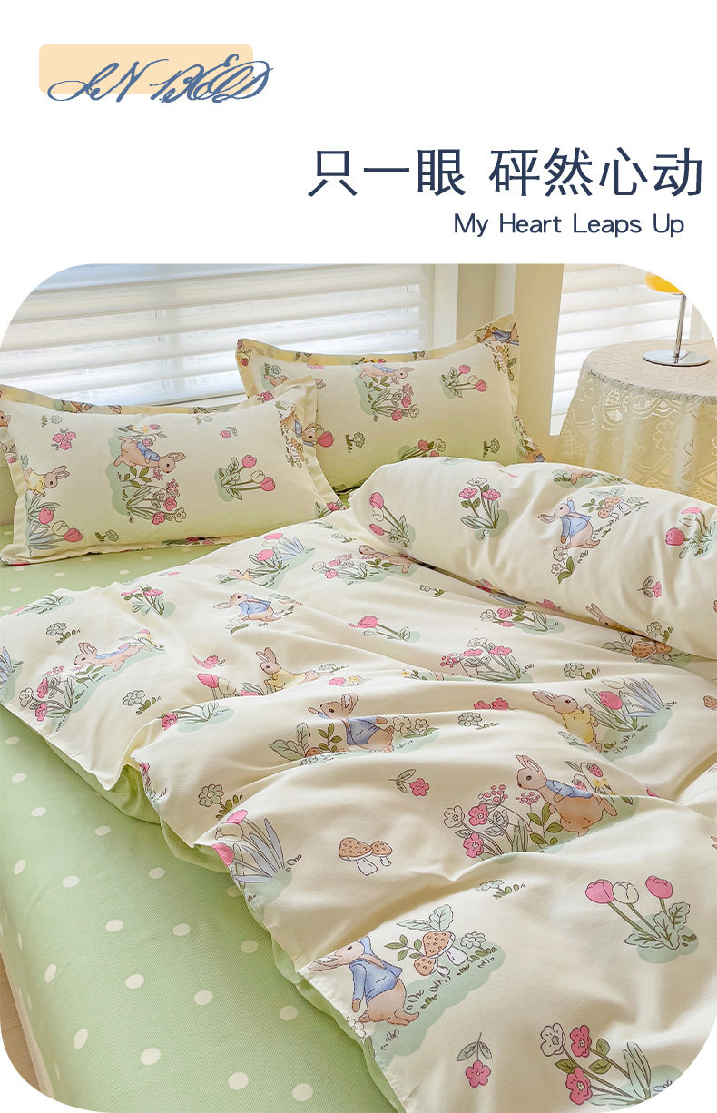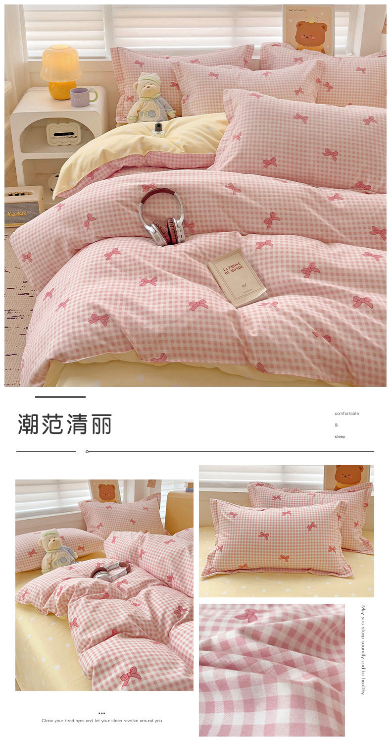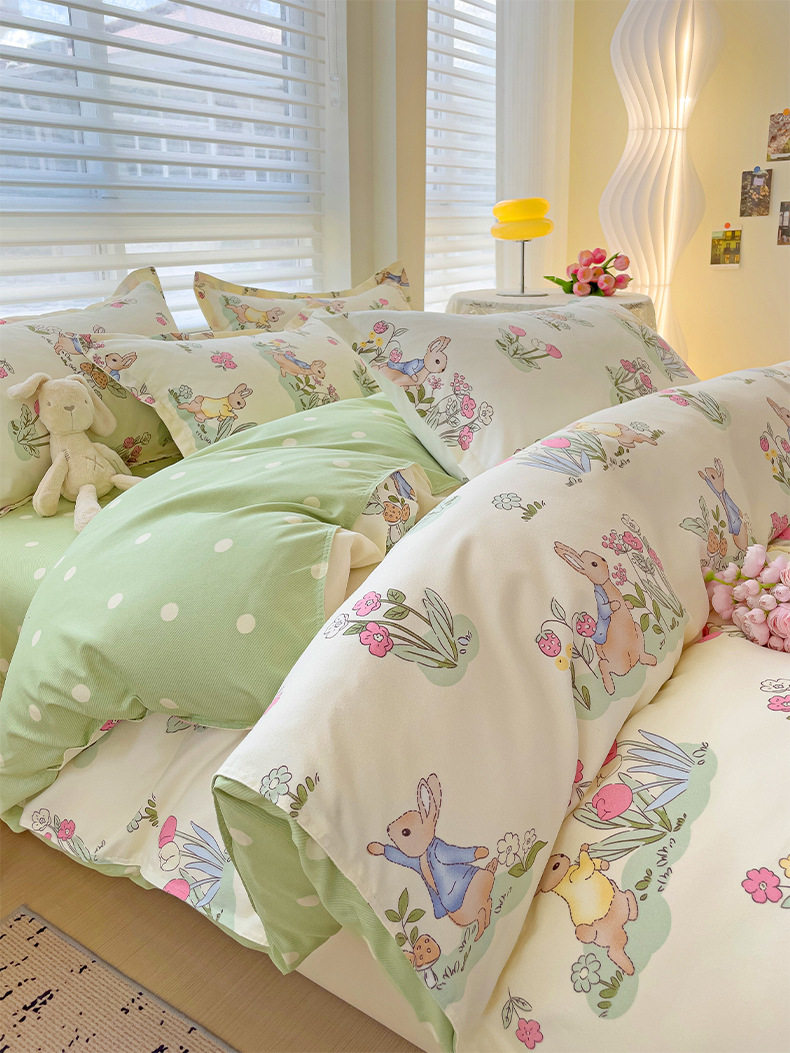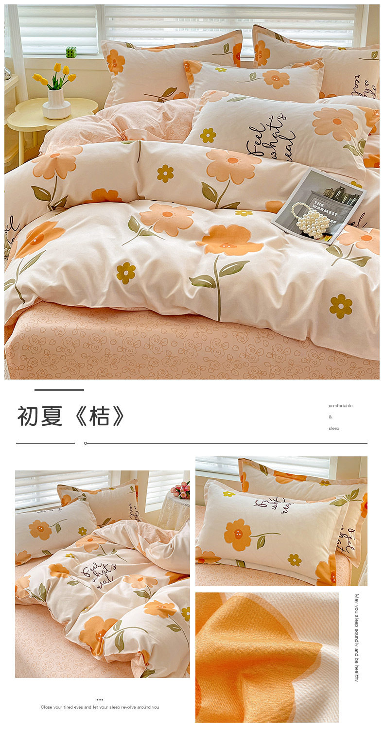 Class A Small Fresh Thickened Sanding Four-piece Set Washed Cotton Bed Sheet Quilt Cover Pillowcase Student Dormitory Three-piece Cover ins