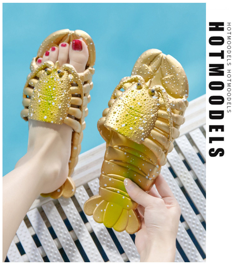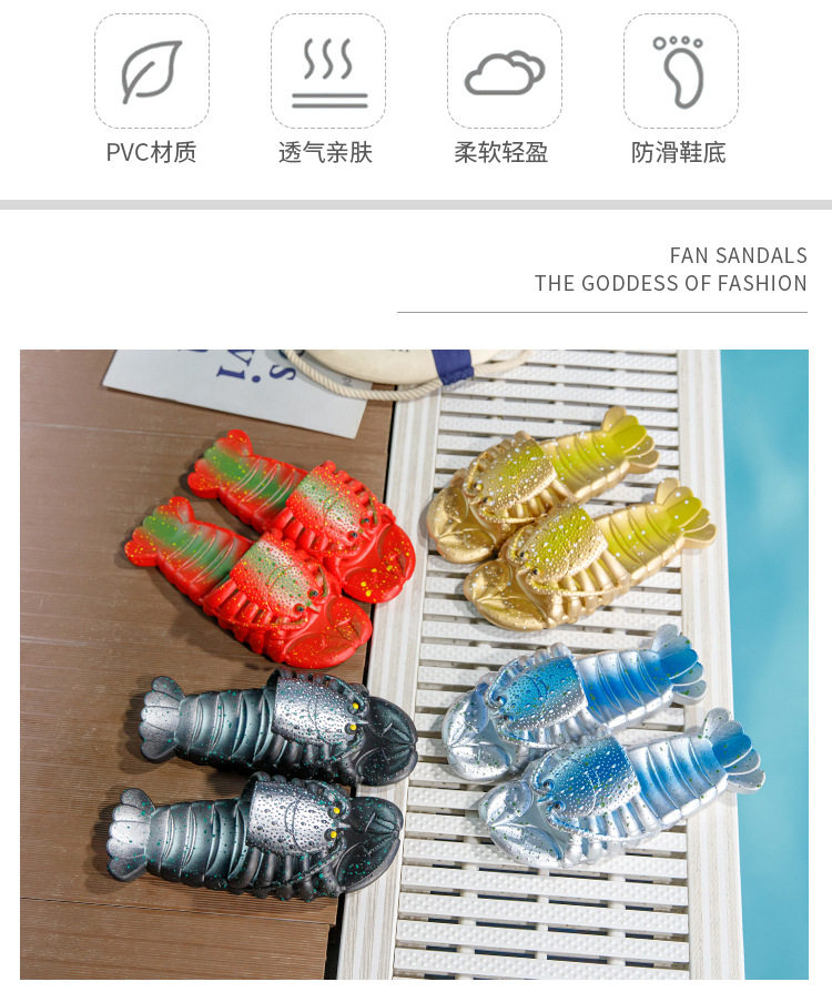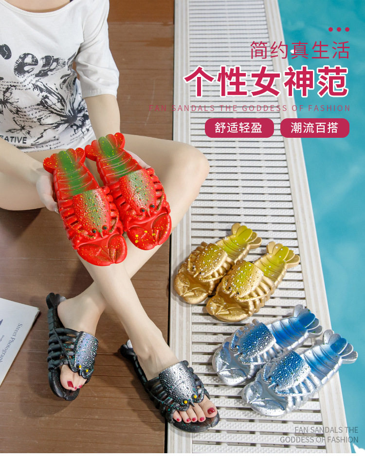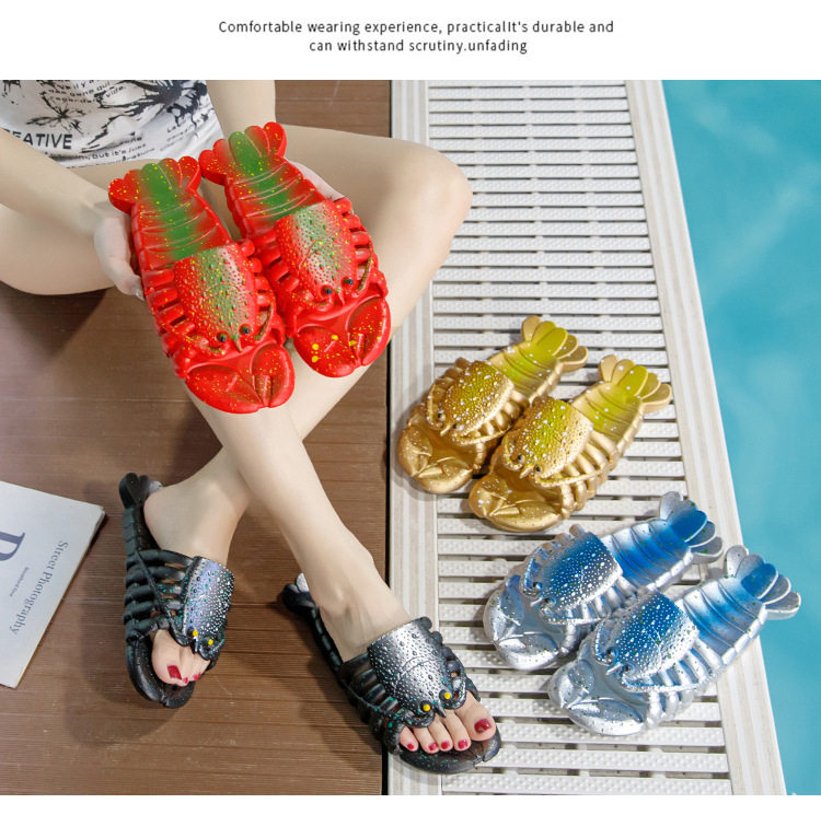 2025 Metallic New Crayfish Beach Slippers Creative Alien Slippers Funny Slippers Wholesale