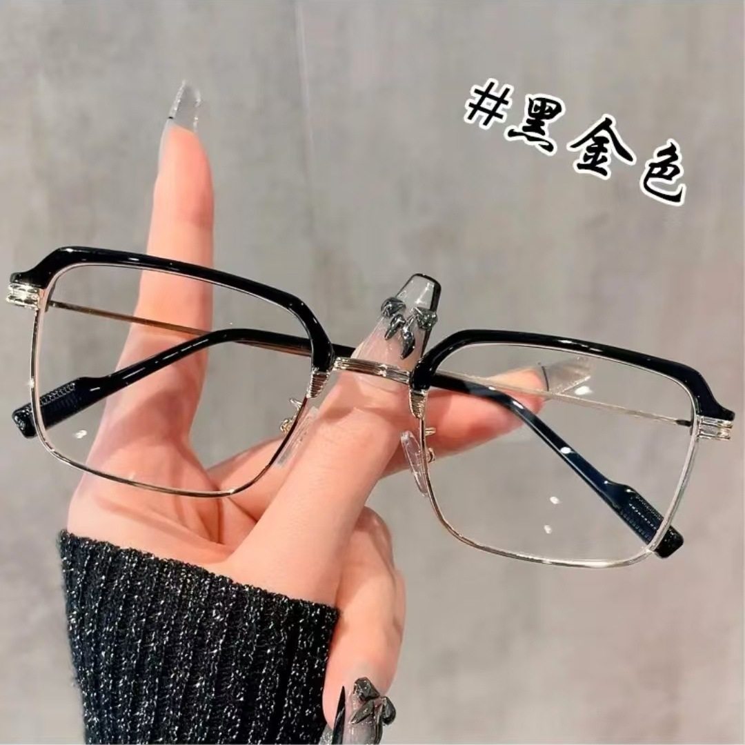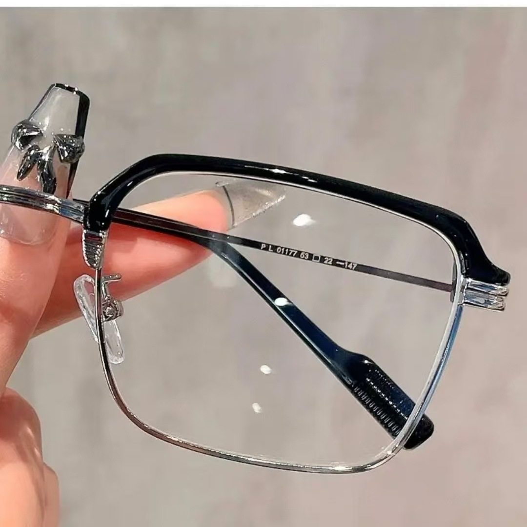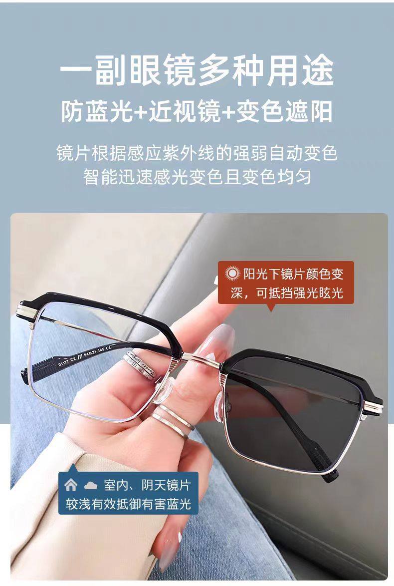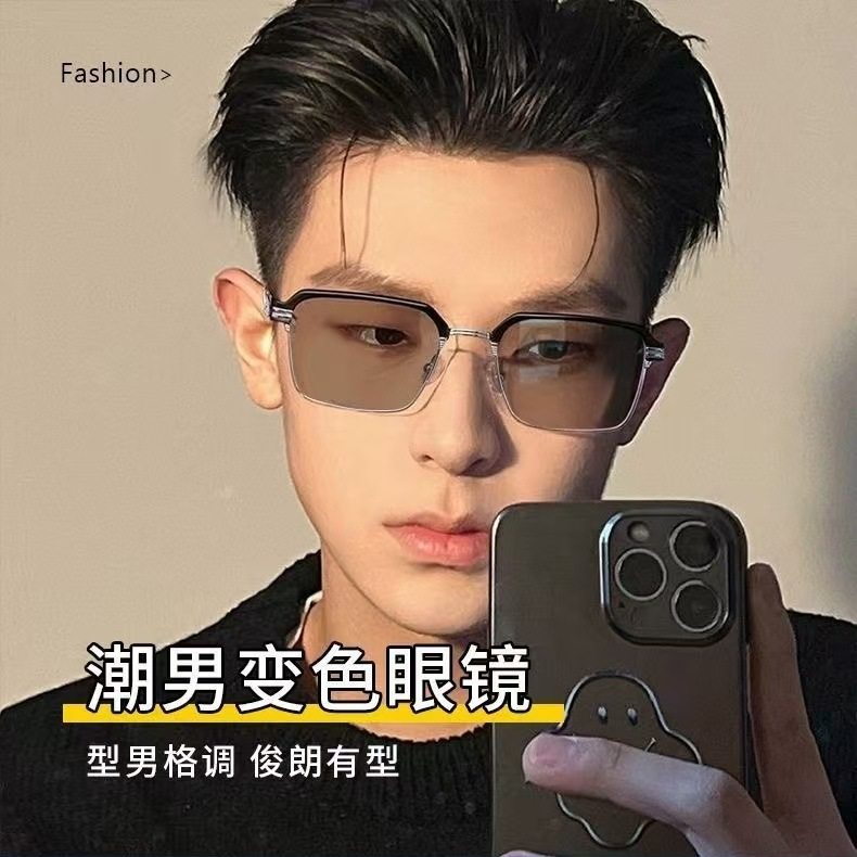 Eyebrow Line Half-Frame Color-Changing Glasses Anti-Blue Light Myopia Glasses Men's High-Value Glasses Frame High-Sense Flat Glasses for Women