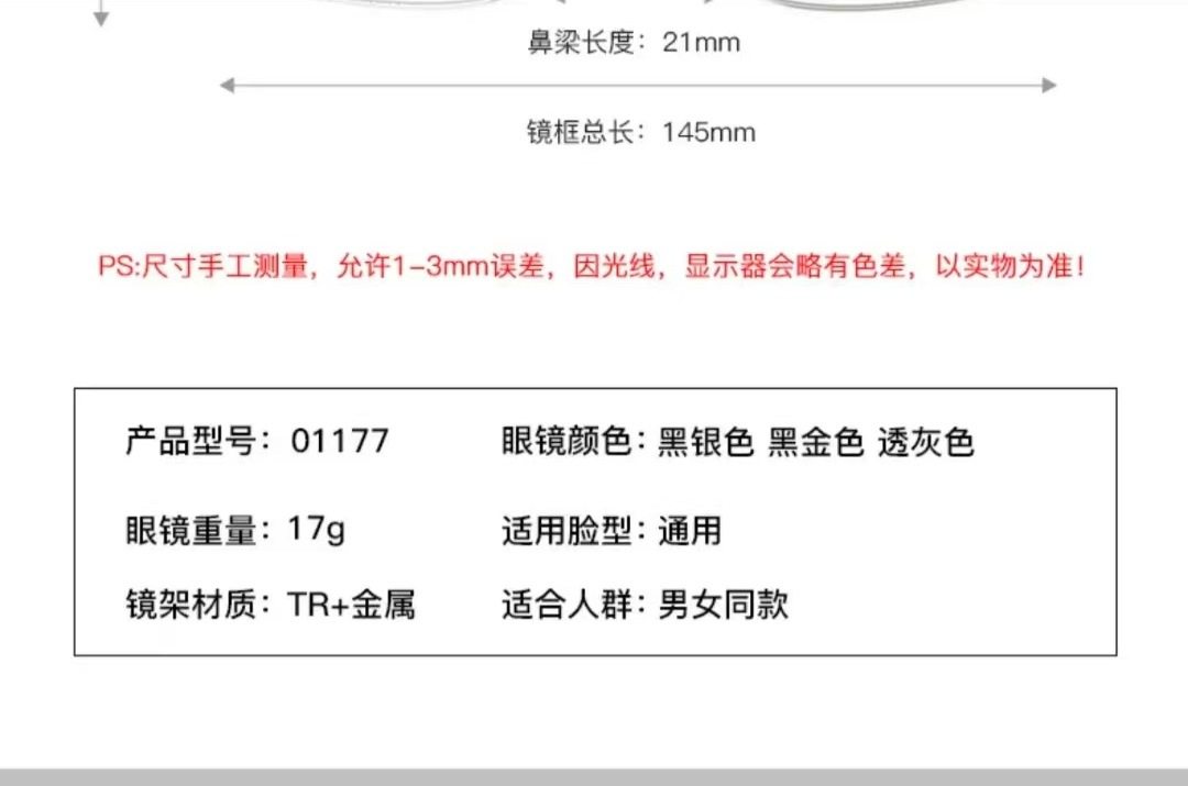 | Frame color | Black silver,Black gold,Black silver-turns black gray,Black silver-turns brown,Black gold - turns black gray,Black gold-brown,Black silver-turns blue,Black gold-turns blue |
