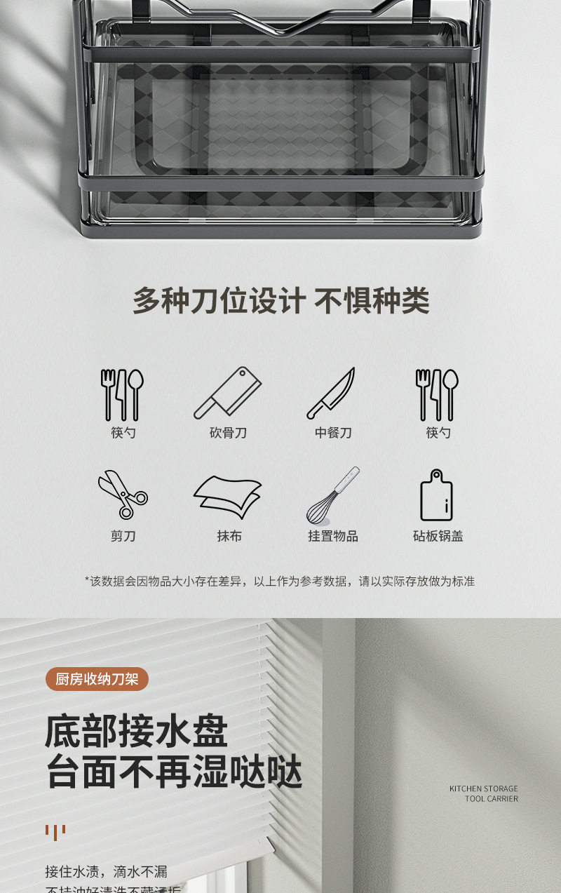 | Number of layers (specifications) | Gray full version [knife holder and chopstick holder + rag holder],Black full version [knife holder and chopstick holder + rag holder],White full version [knife holder and chopstick holder + rag holder],Gray medium version [knife holder and chopstick holder],Black medium configuration [knife holder and chopstick holder],White medium version [knife holder and chopstick holder],Gray simple style [knife holder type],Black simple model [knife holder type],White simple model [knife holder type] |
