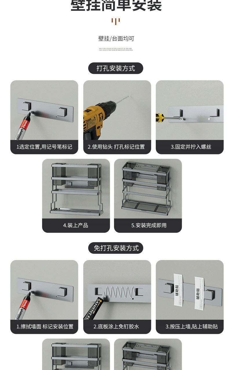 | Storage rack classification | Wall hanging, countertop |