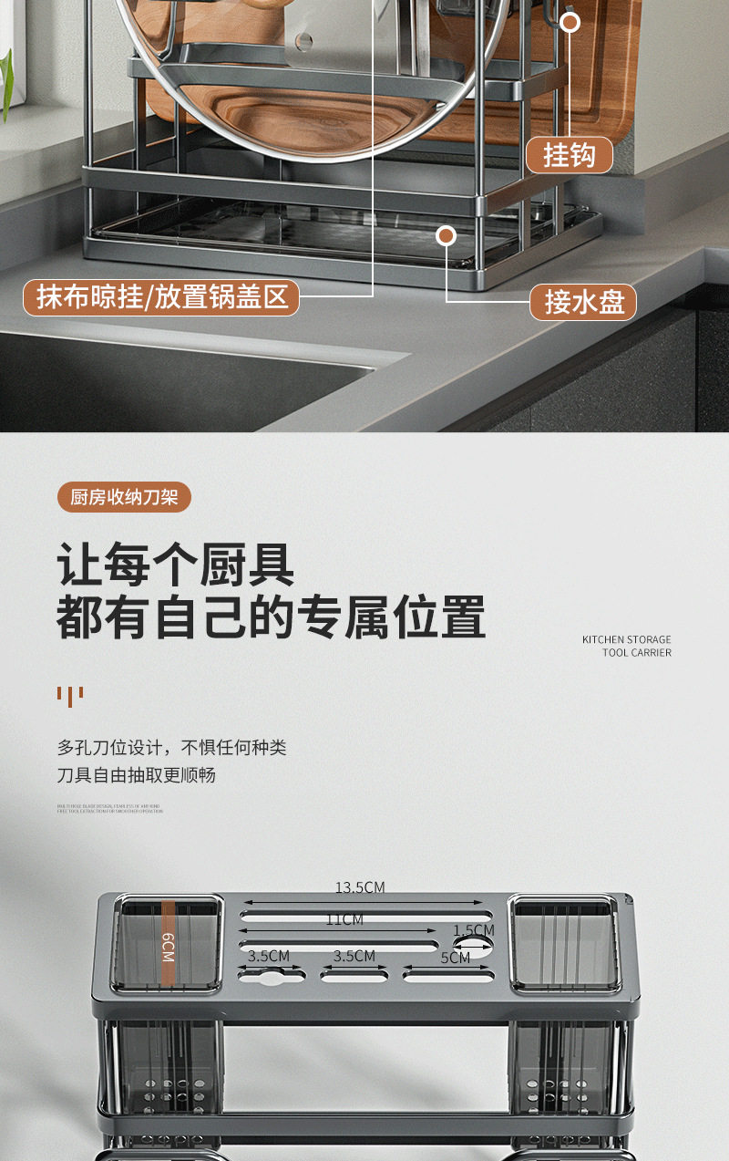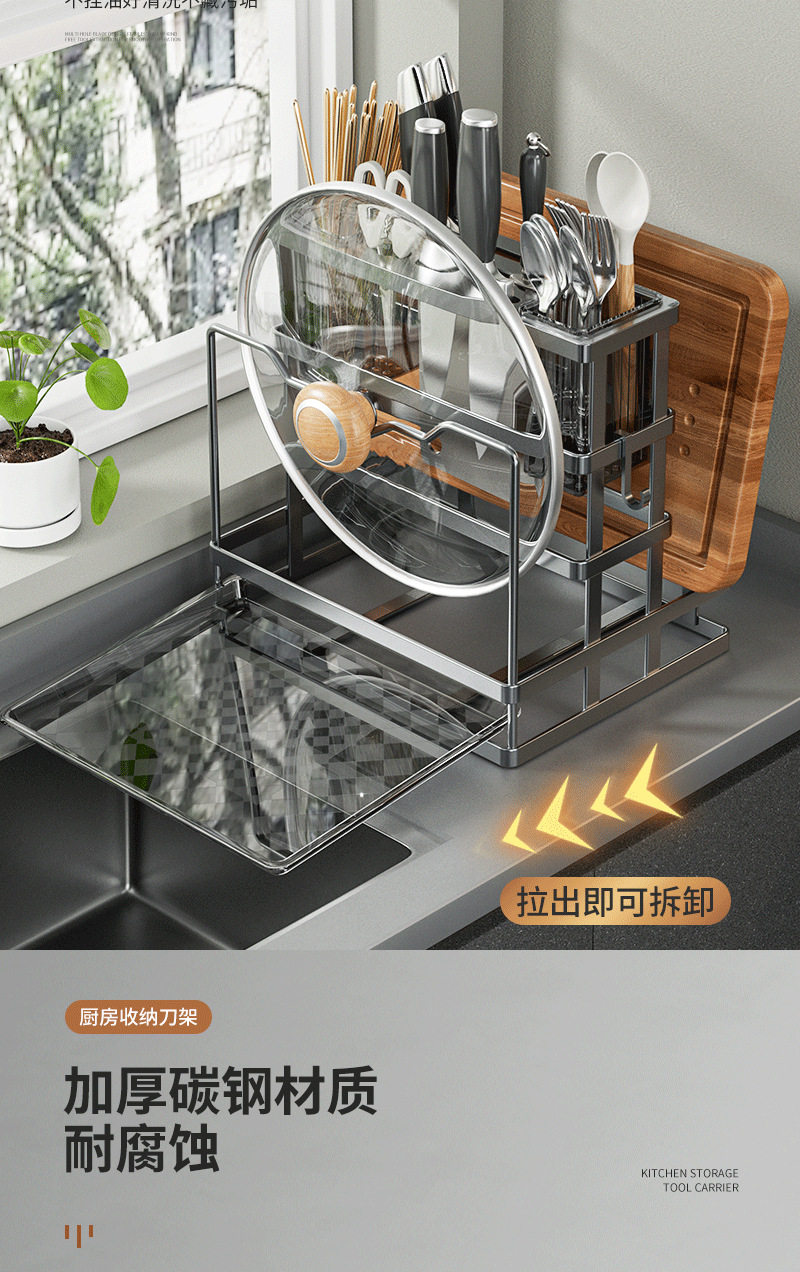 Kitchen Storage Rack Knife Rack Chopping Board Storage Rack Pot Cover Storage Rack Cutting Board Knife Storage Rack Countertop Multifunctional Rack