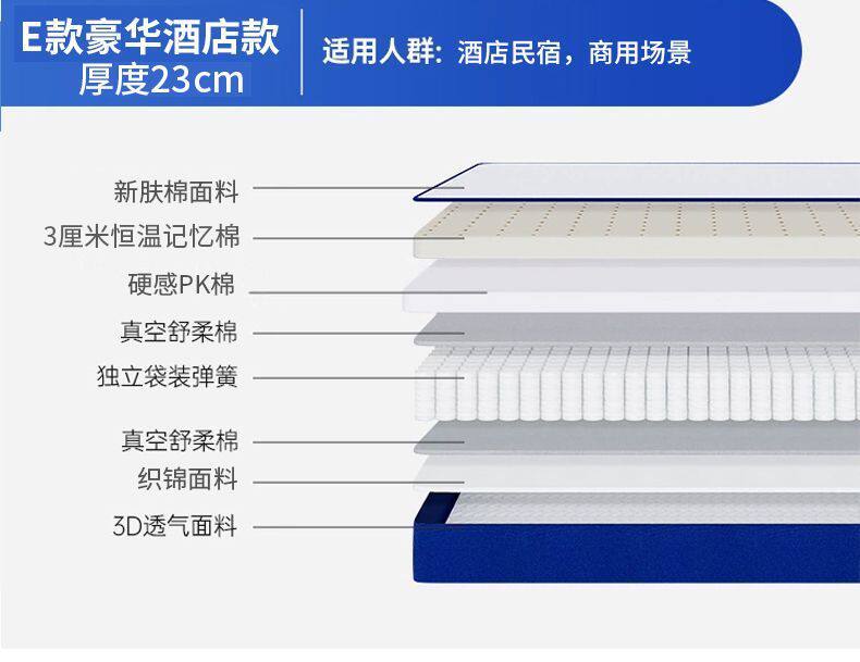 | Color | [soft style] a thickness about 20cm,[slightly harder style] b thickness is about 21cm,[comfortable style] c thickness about 22cm,[zero pressure model] d thickness about 22cm,[hotel model] e thickness is about 23cm |