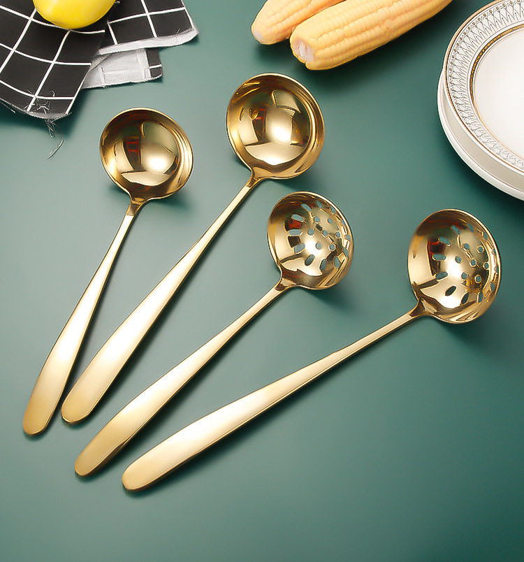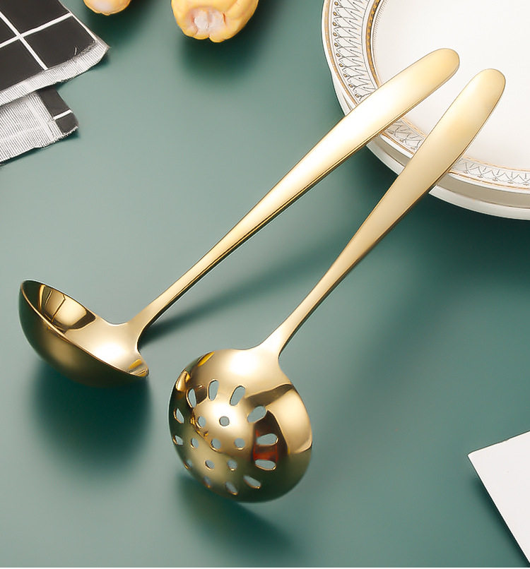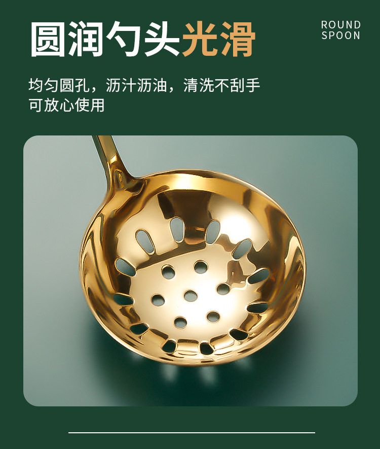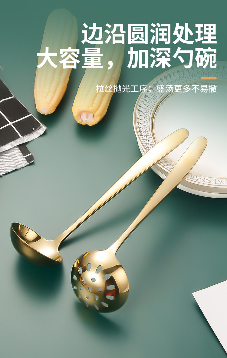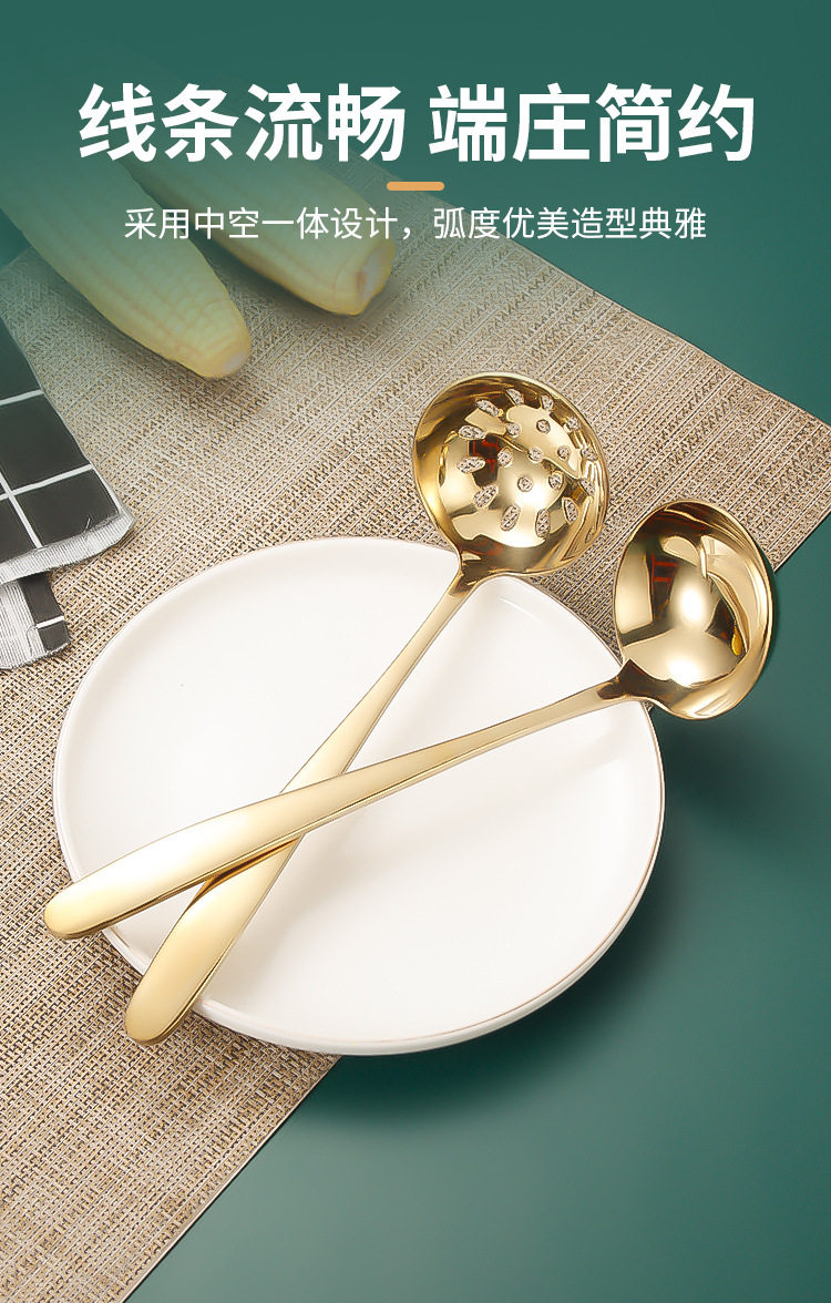 Stainless steel hot pot spoon colander thickened golden long handle soup shell household hot pot cooking kitchenware soup spoon colander wholesale