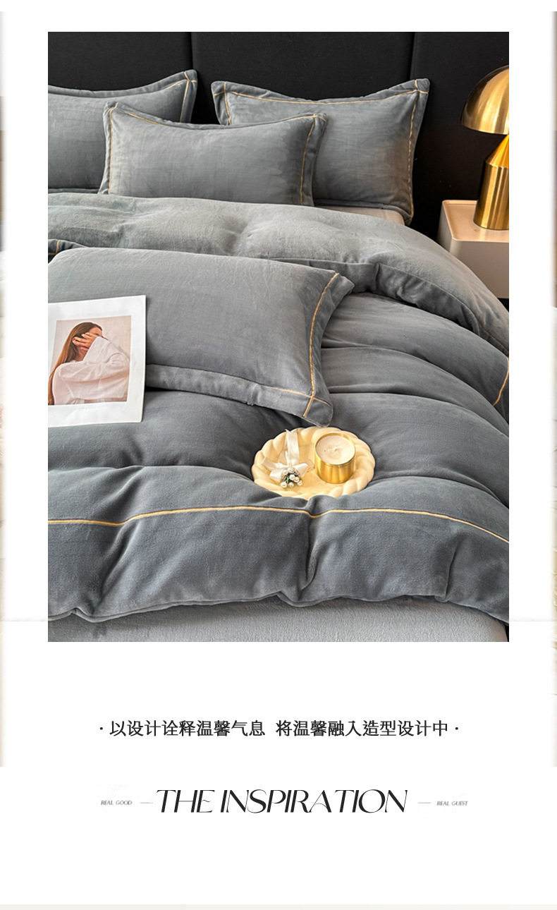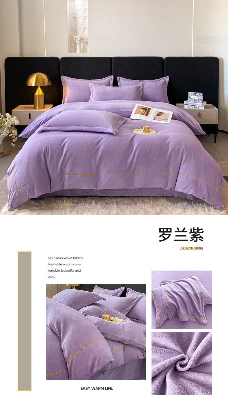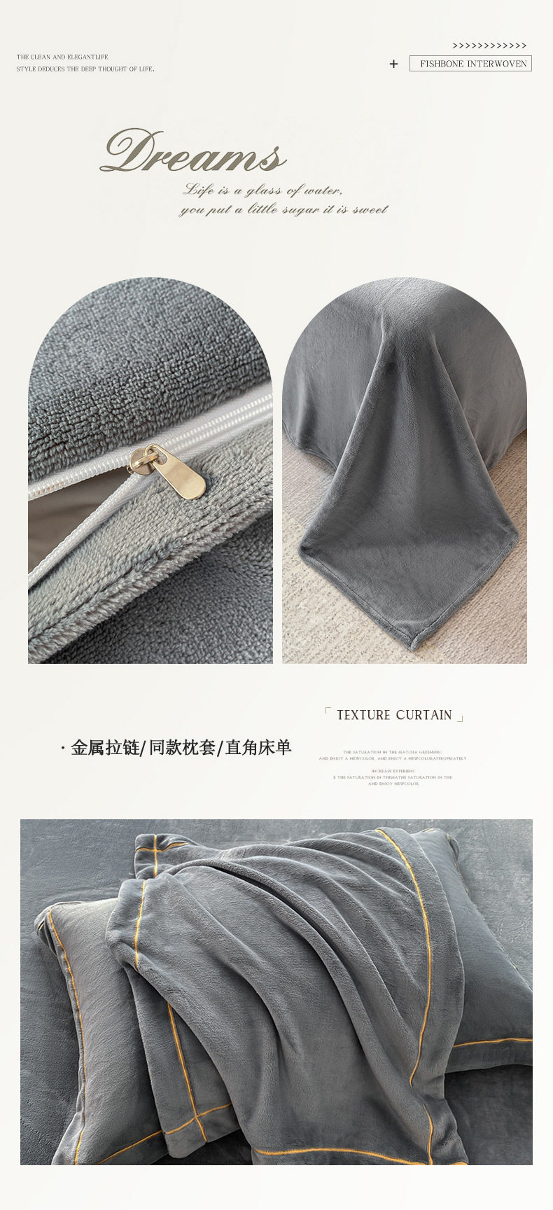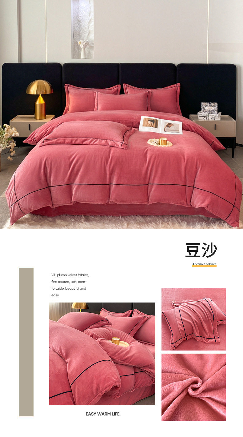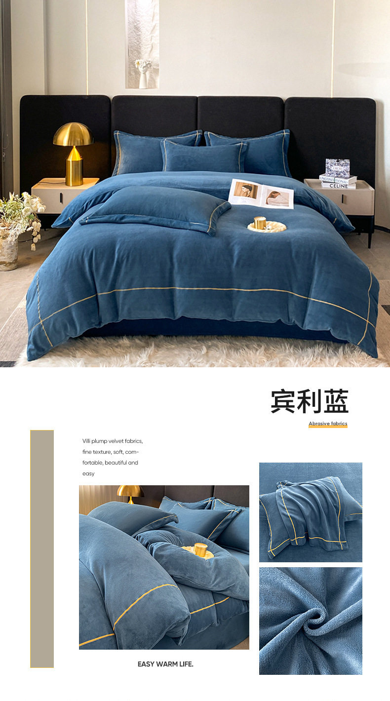 Four-piece double-sided velvet padded quilt cover velvet pillowcase velvet solid color milk ins baby dormitory three-piece bed sheet