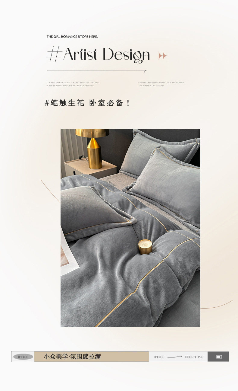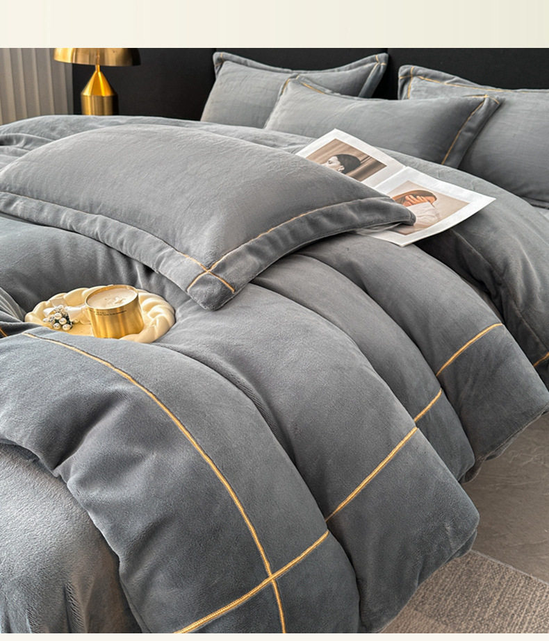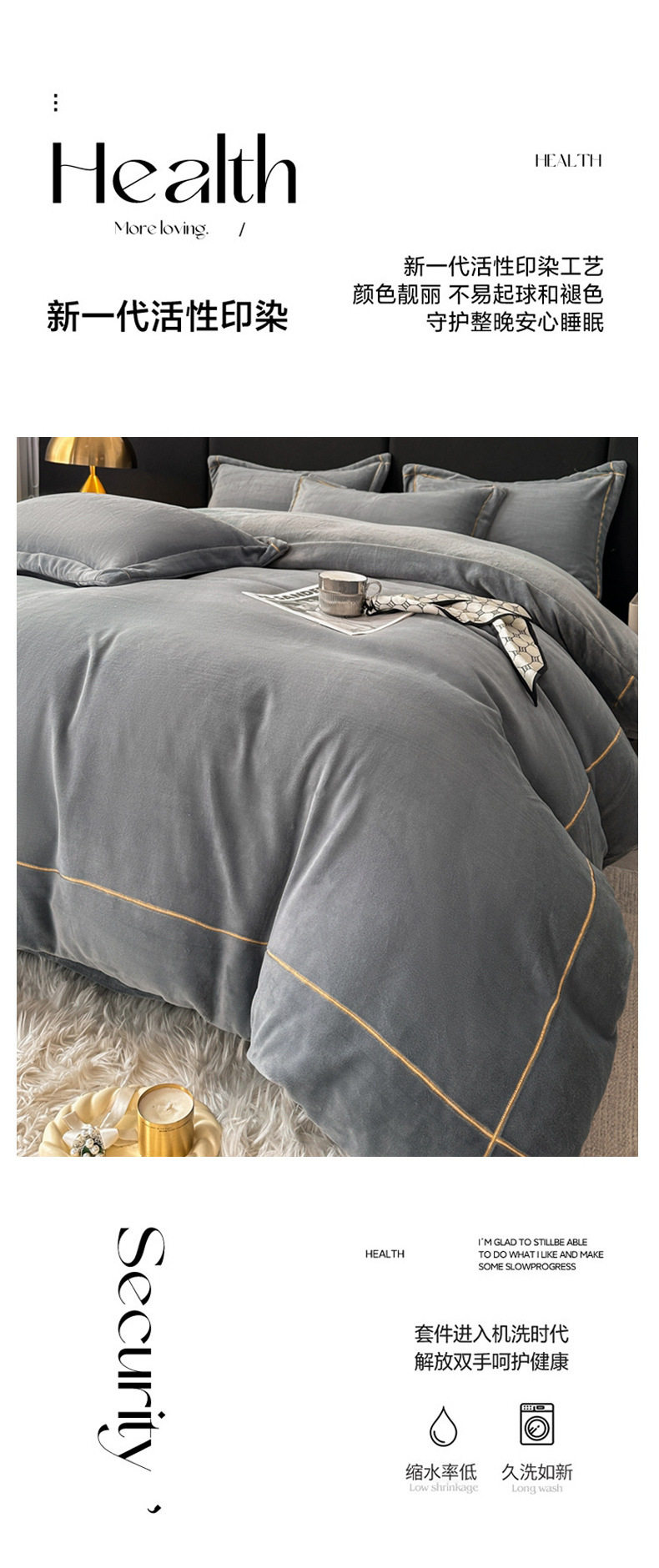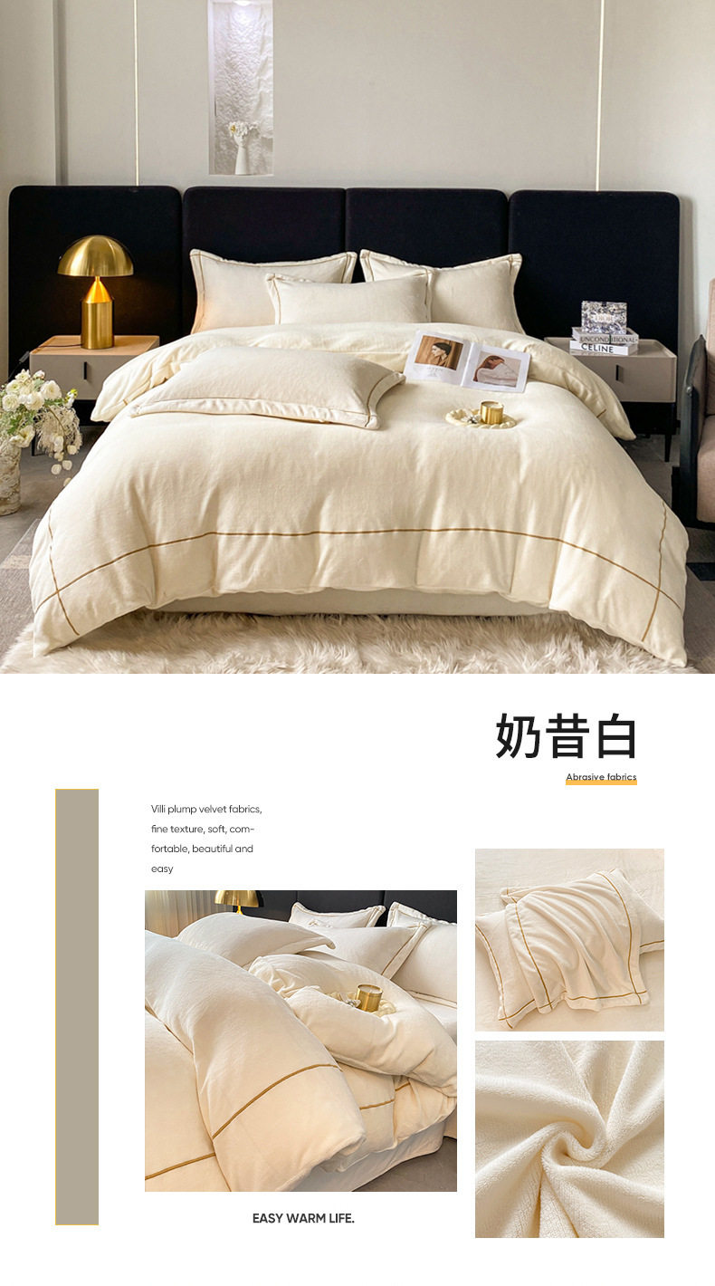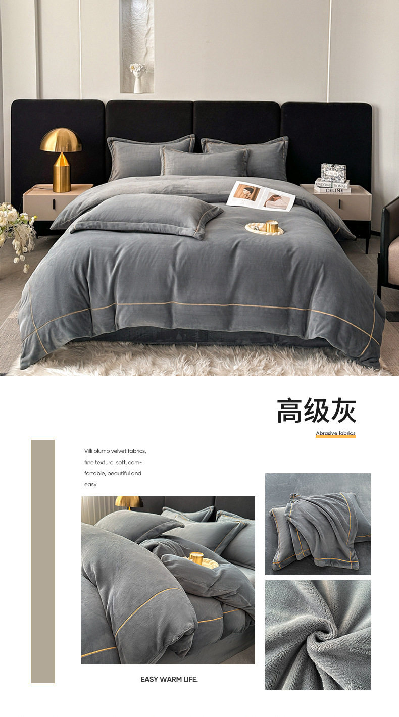 Four-piece double-sided velvet padded quilt cover velvet pillowcase velvet solid color milk ins baby dormitory three-piece bed sheet