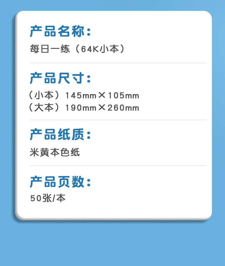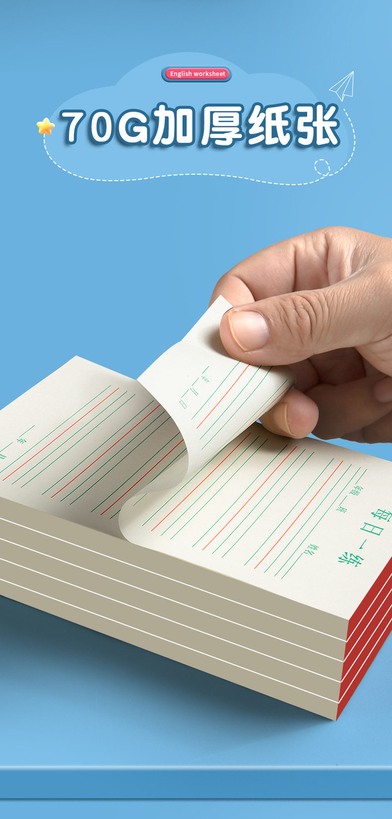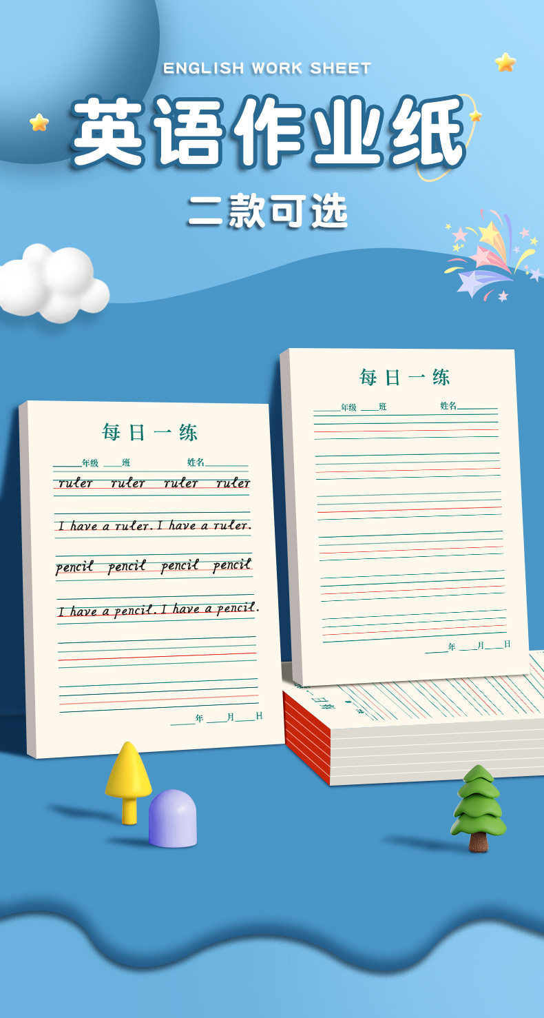 | Specifications | (english four-line grid) 1 pack/50 sheets,(green field grids) 1 pack/50 sheets,(red field grids) 1 pack/50 sheets,(green rice grids) 1 pack/50 sheets,(red rice grid) 1 pack/50 sheets,(english four-line grid) 2 packs/100 sheets in total,(english four-line grid) 3 packs/150 sheets in total,(english four-line grid) 4 volumes/total 200 sheets,(english four-line grid) 5 volumes/total 250 sheets,(english four-line grid) 10 packs/500 sheets in total,(english four-line grid) 20 packs/1000 sheets in total,(english four-line grid) 30 volumes/1500 sheets in total |