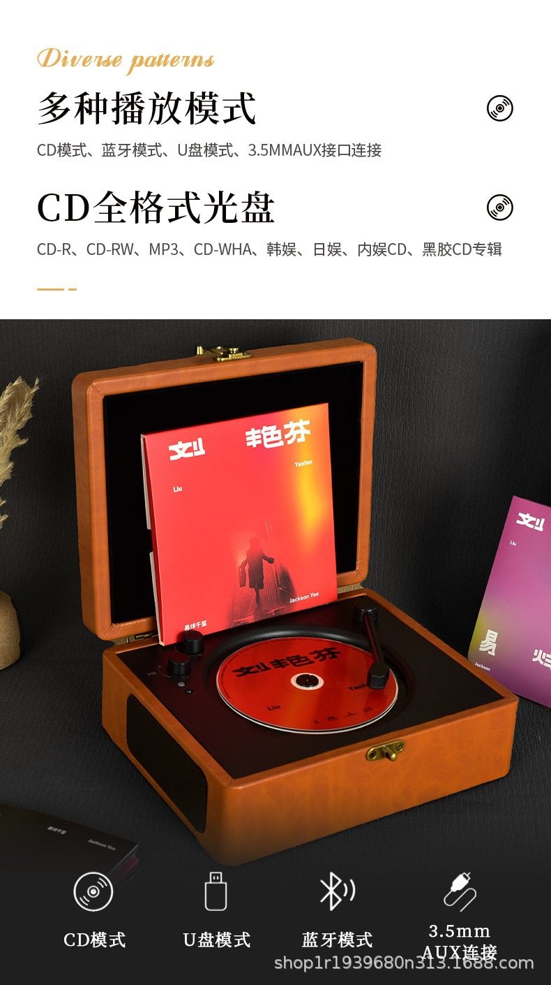Retro leather case cd player mobile bluetooth speaker niche student affordable gift multifunctional desktop stereo