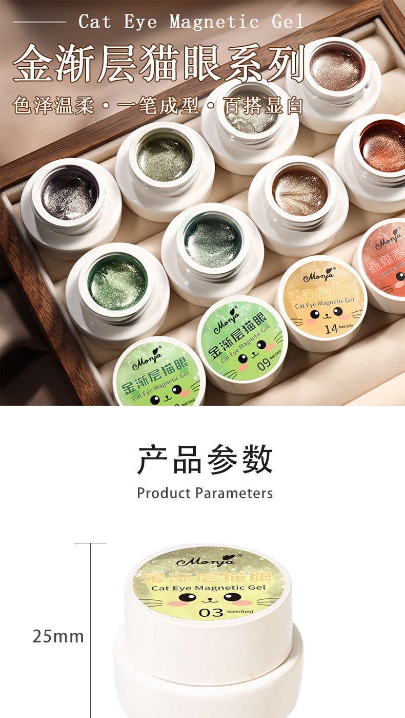 Monja Gold Gradual Cat's Eye Nail Polish 2025 New Autumn and Winter Flash Champagne Gold Crystal Cat's Eye Nail Art