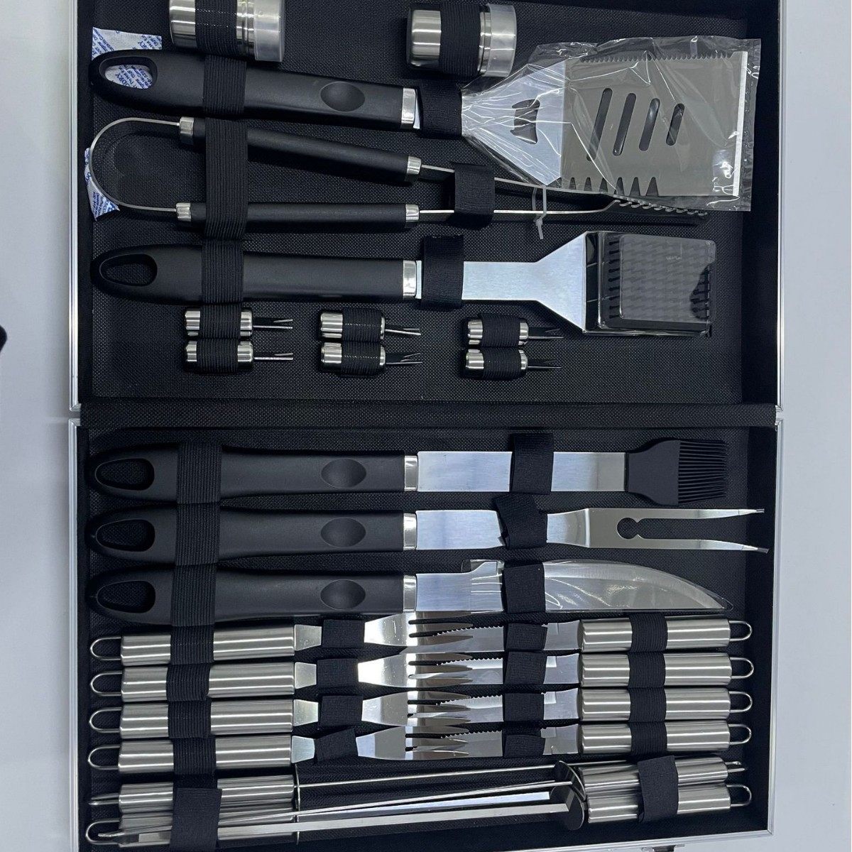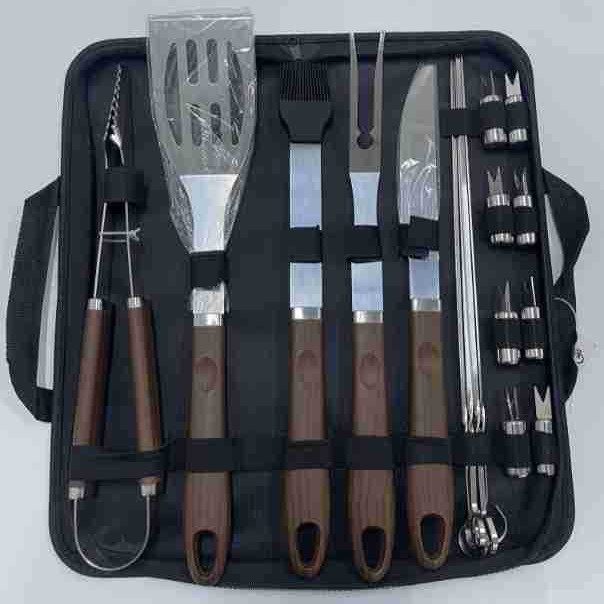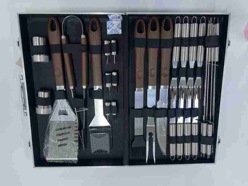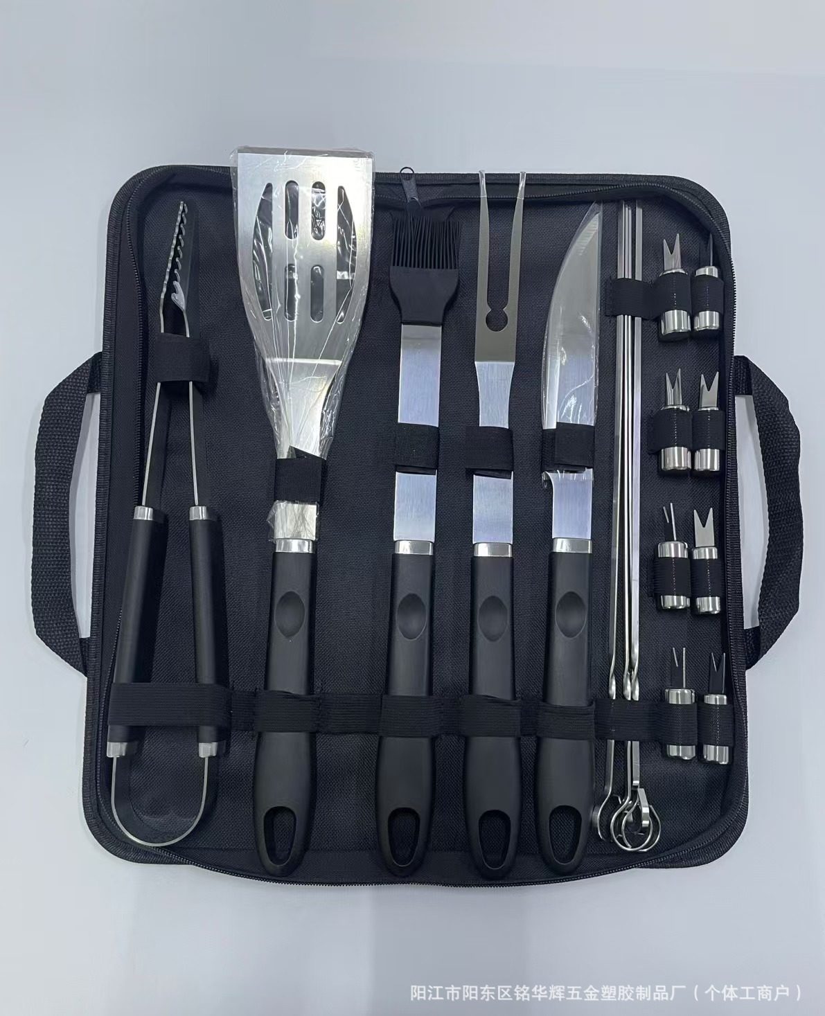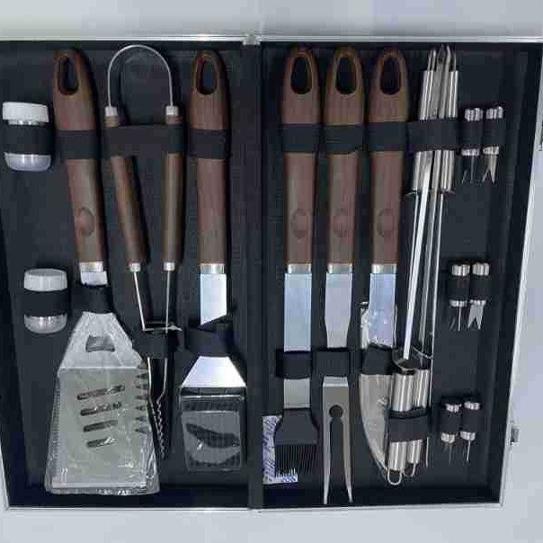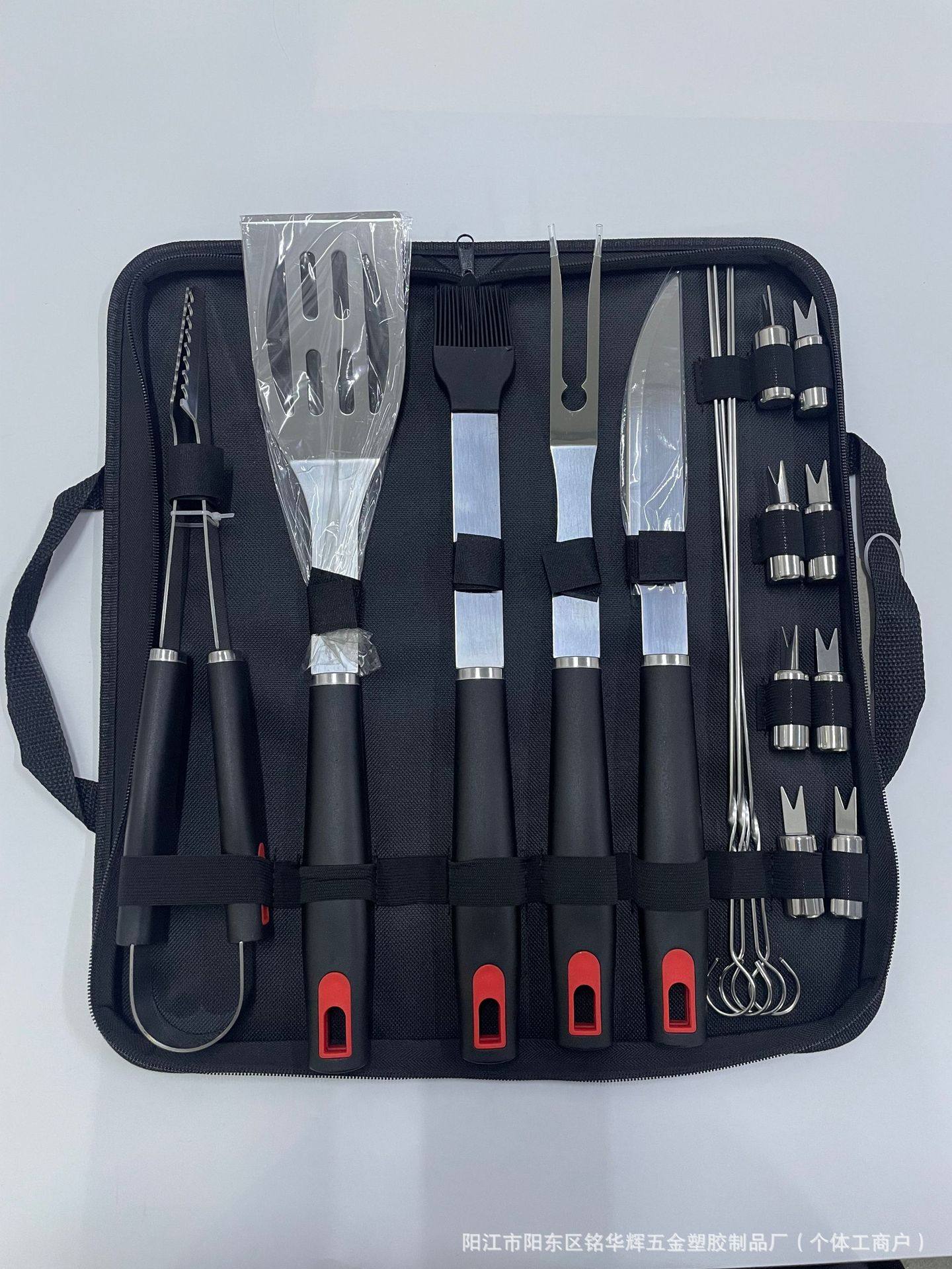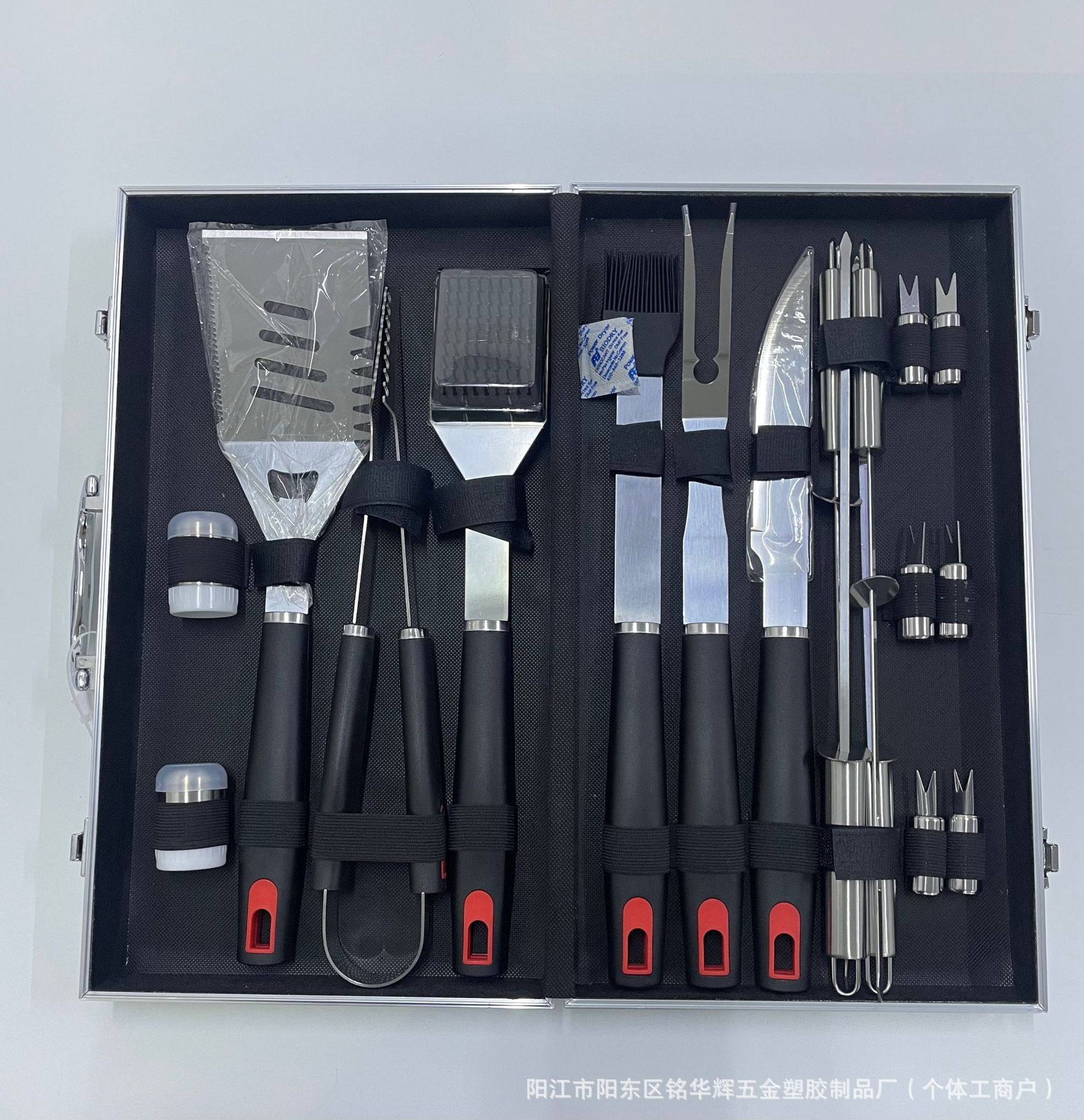 | Item number | Amazon cross-border stainless steel grill outdoor tool set bbq plastic handle cloth bag, aluminum box, apron, apron card barbecue combination set |