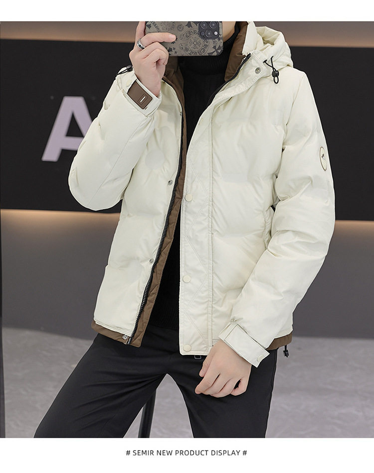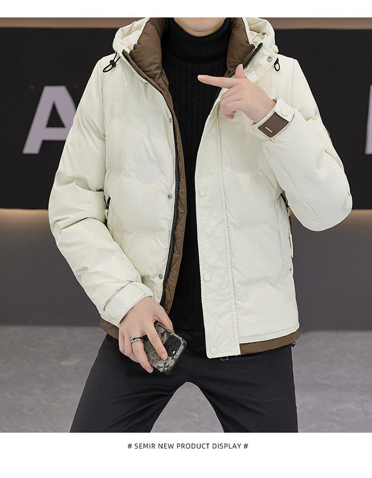 Men's Winter Thickened Collar Down Jacket Youth Fashion All-match Color Matching Korean Style Slim-fit Lightweight White Duck Down Jacket