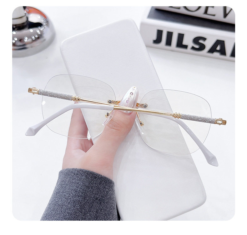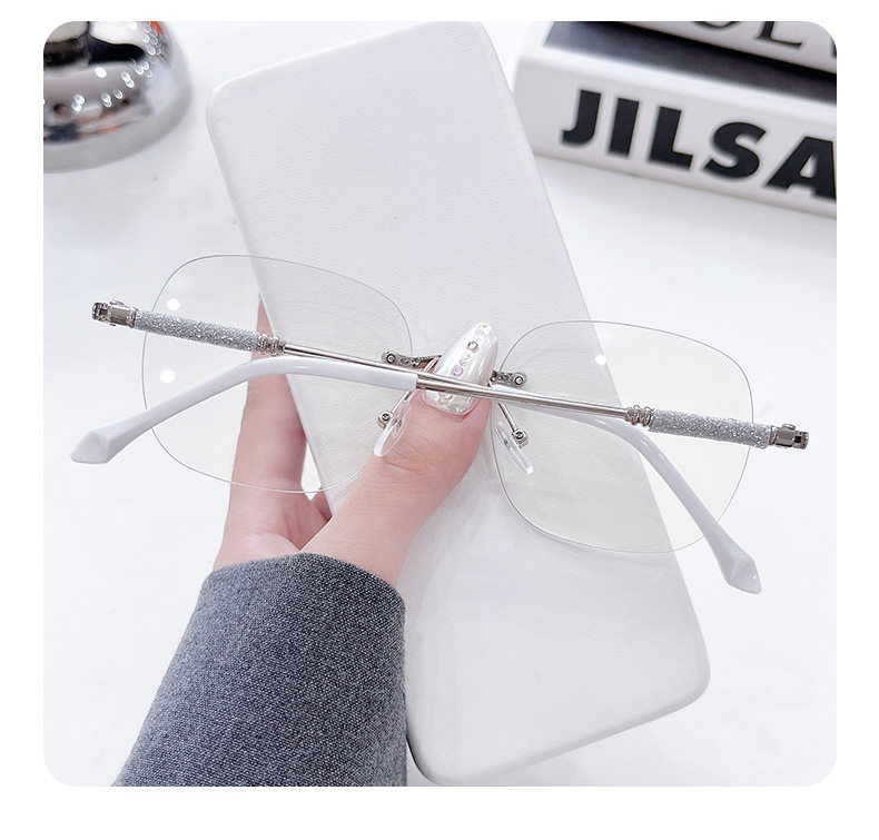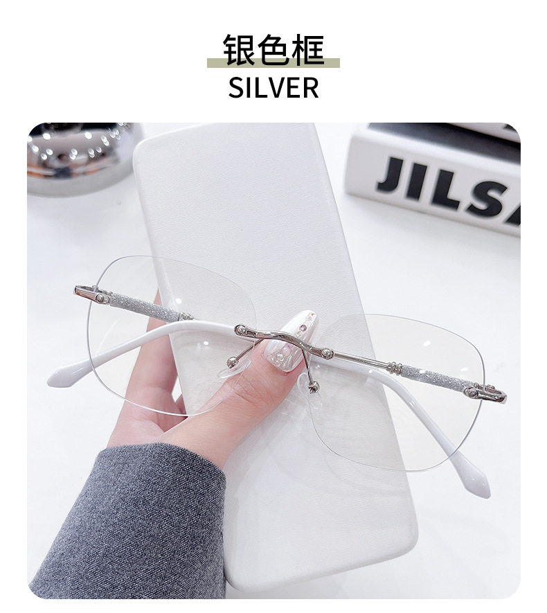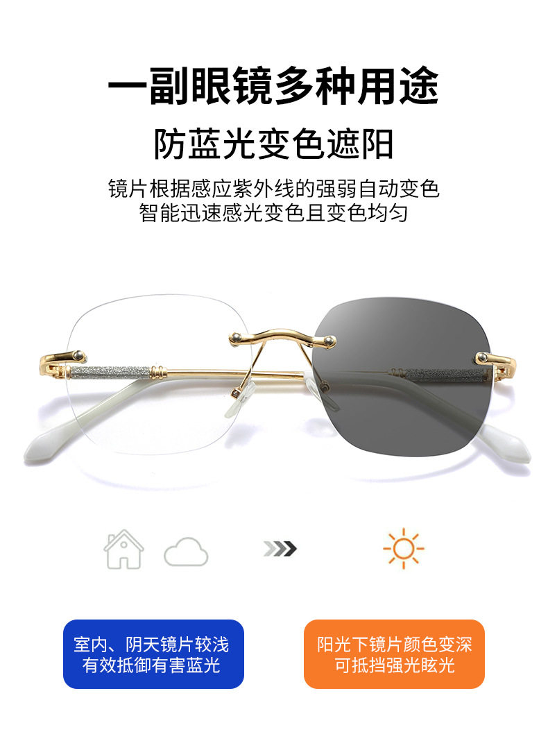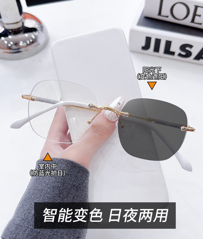 Photochromic Rimless Glasses for Women, Starry Sky Anti-Blue Light Photochromic Reading Glasses, Plain Glasses Frame, Metal Glasses