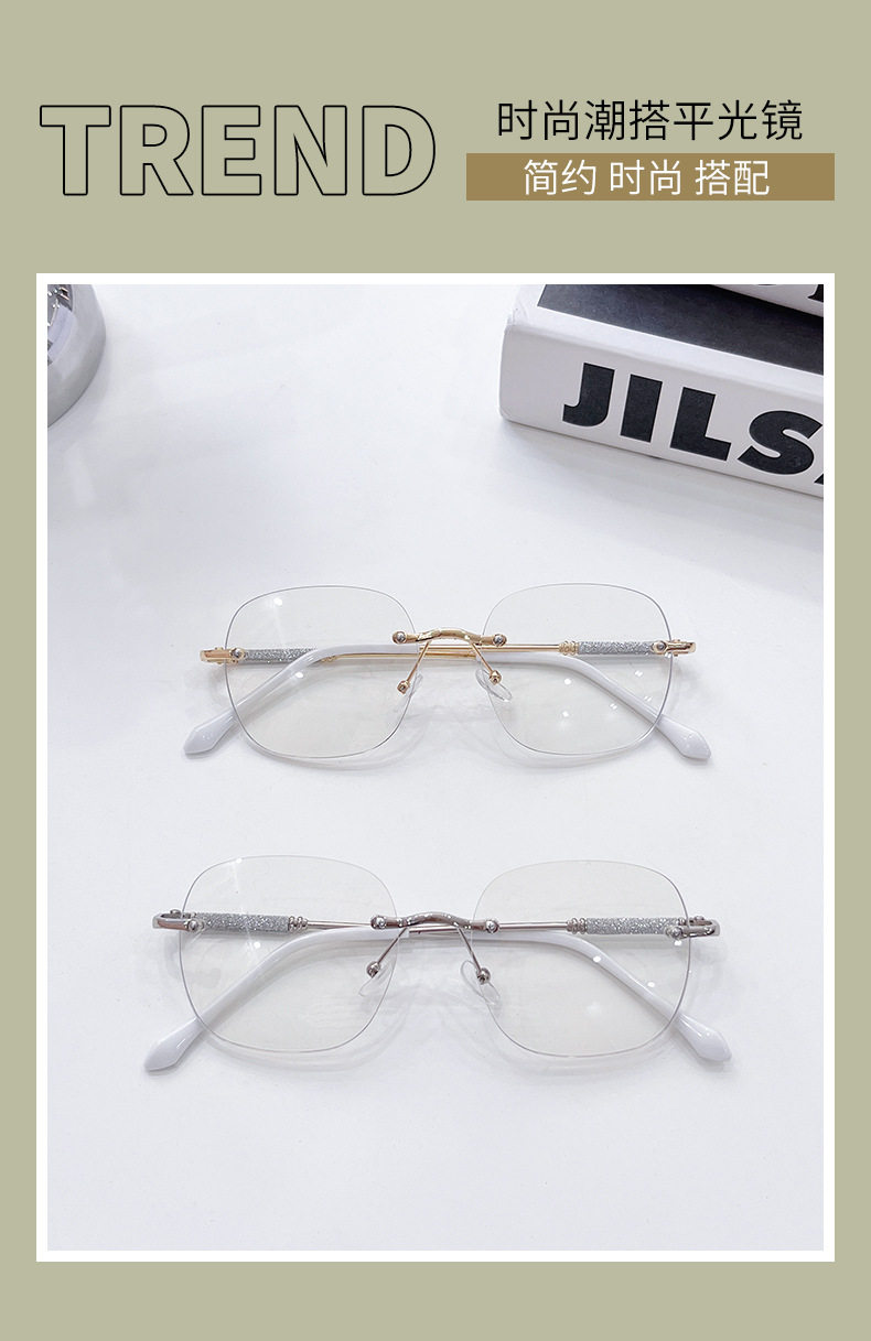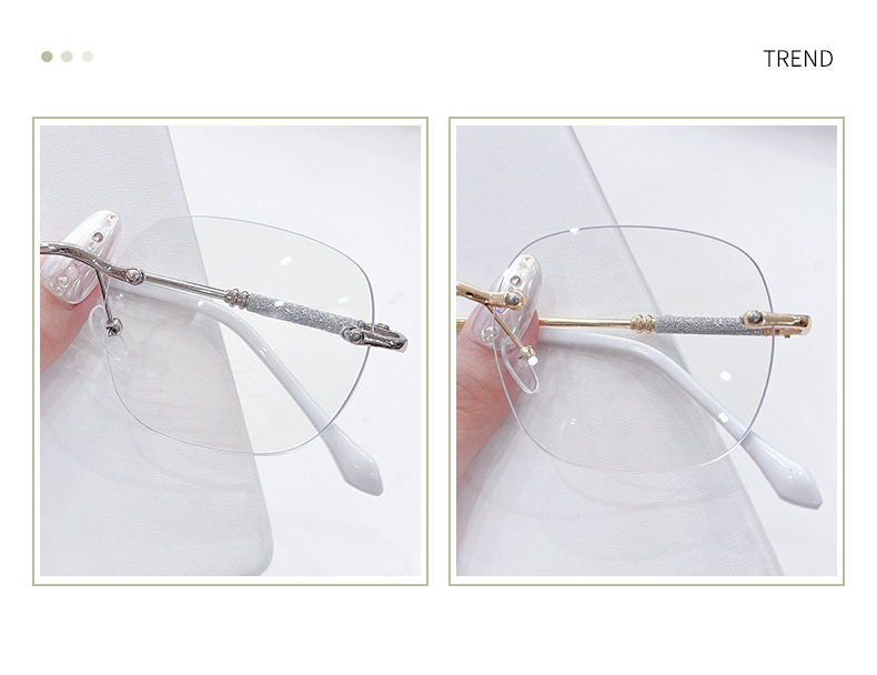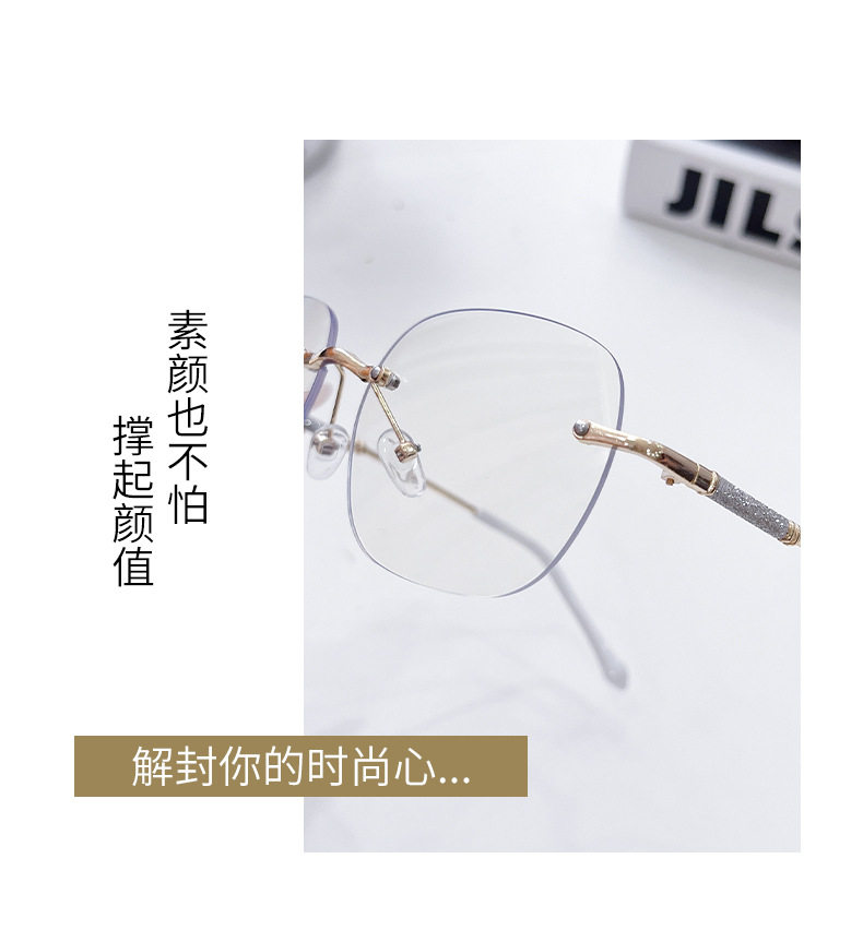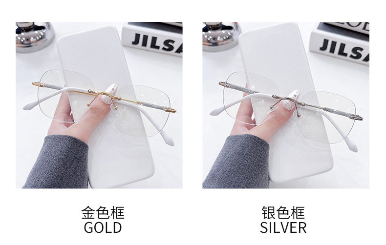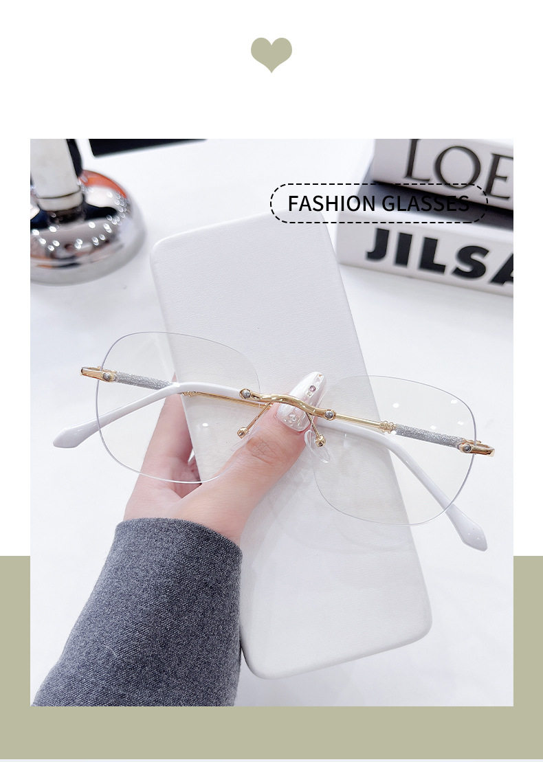 Photochromic Rimless Glasses for Women, Starry Sky Anti-Blue Light Photochromic Reading Glasses, Plain Glasses Frame, Metal Glasses