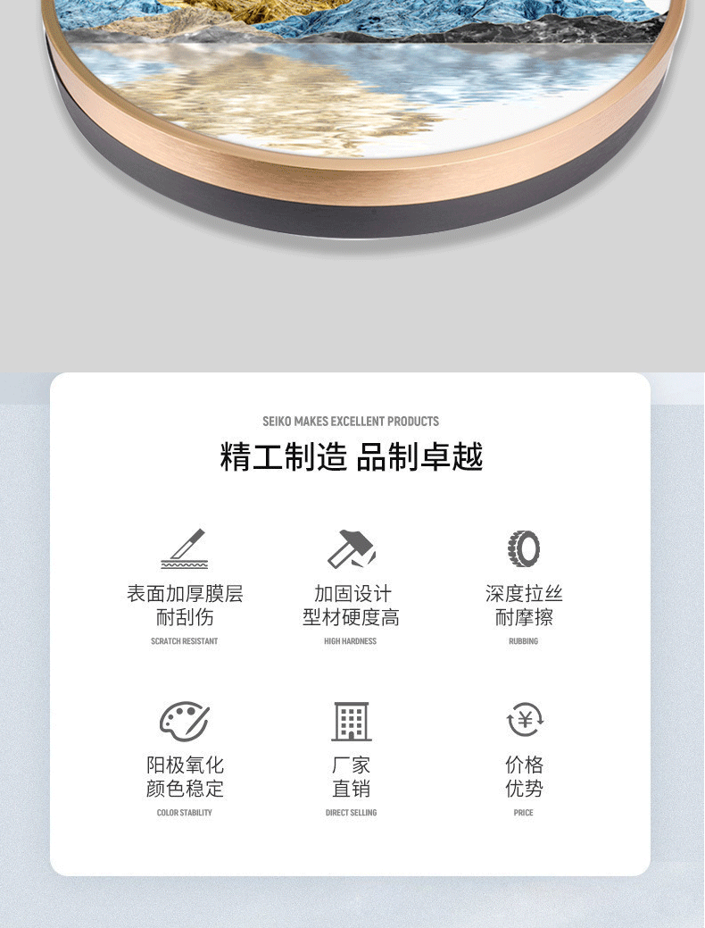 | Inner frame size | Aluminum alloy round frame-brushed matte gold,Aluminum alloy round frame-brushed matte black,Aluminum alloy round frame-brushed matte silver,Aluminum alloy round frame-brushed bright gold,Aluminum alloy round frame-brushed purple gold |