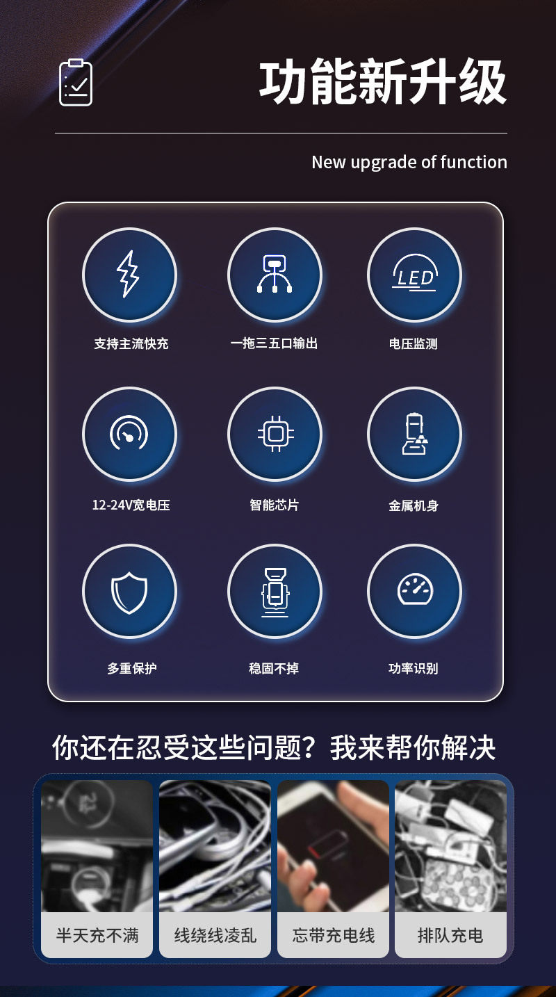 One-to-three super fast charger car charger mobile phone cigarette lighter conversion plug car charger car usb interface