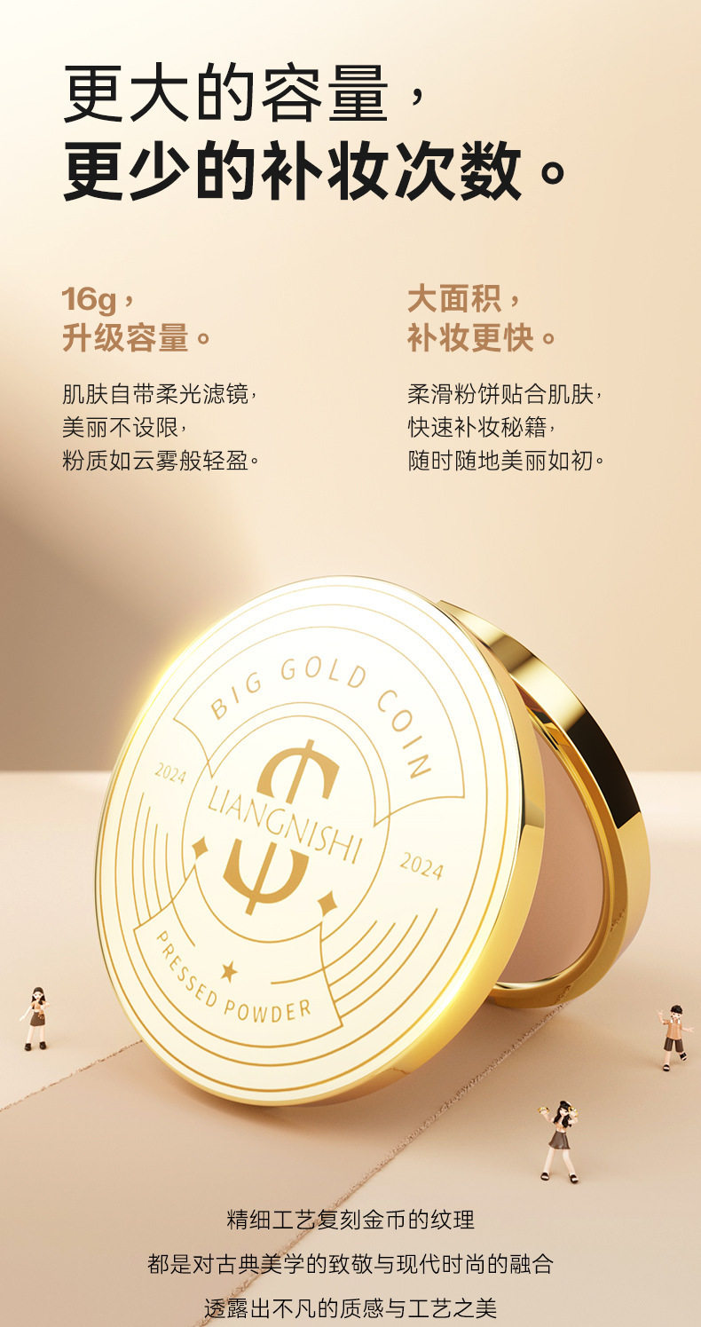 Liangni poem velvet big gold coin powder cake makeup makeup makeup lasting makeup not card powder three-in-one makeup powder cake makeup