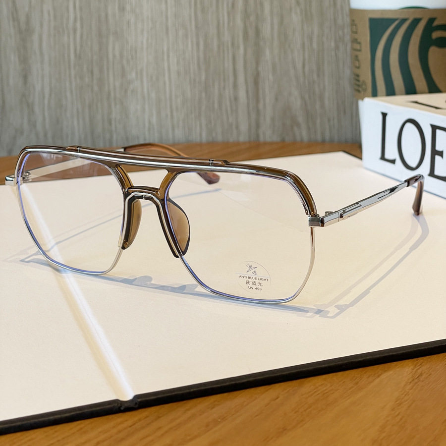 European and American Large Frame Double Beam Anti-Blue Glasses Ins Trendy Flat Glasses Frame Metal Plain Style Glasses Frame for Men and Women
