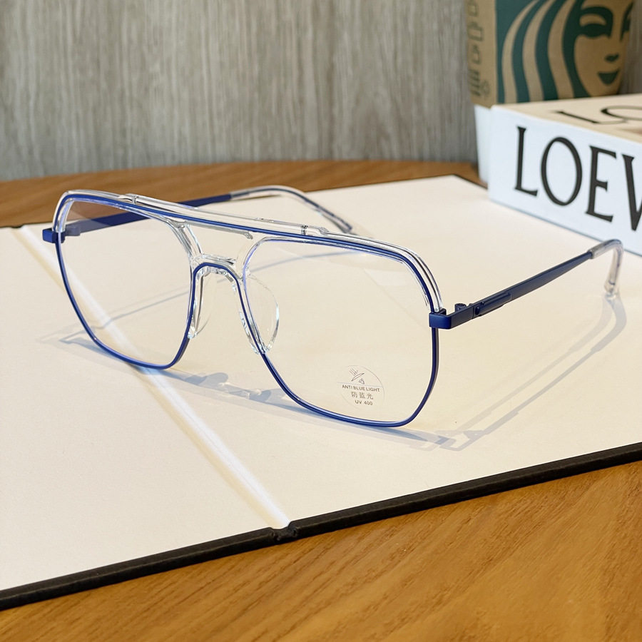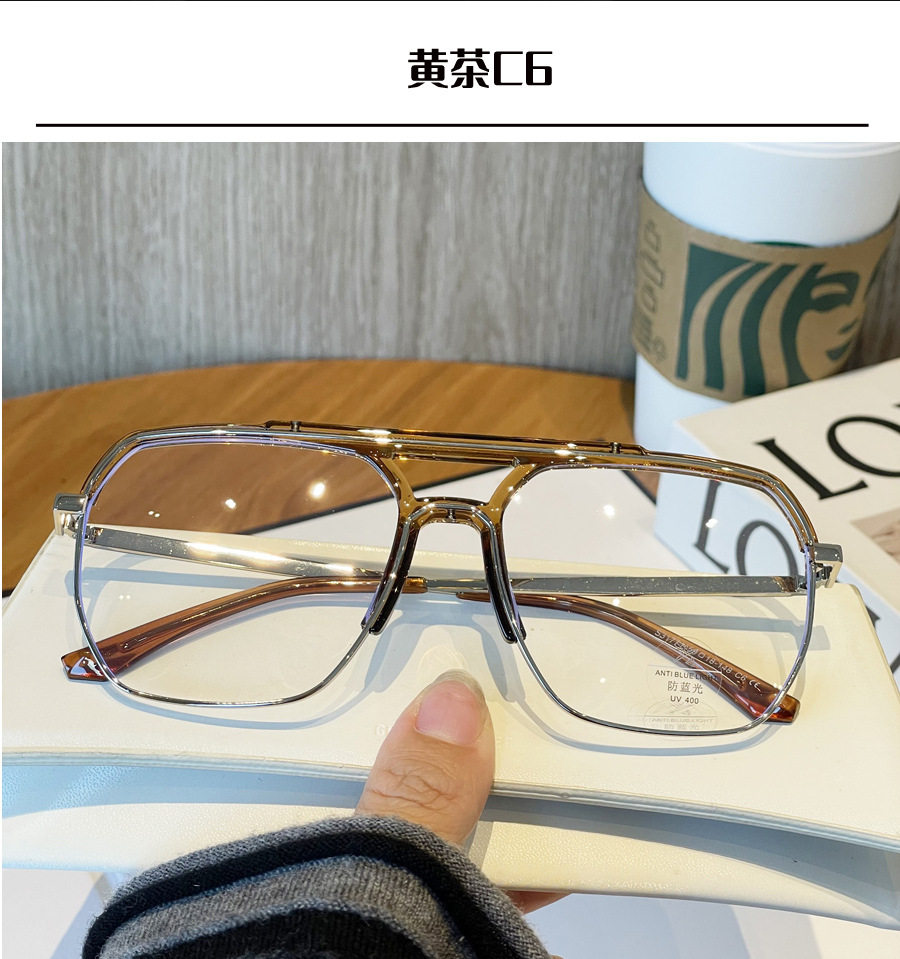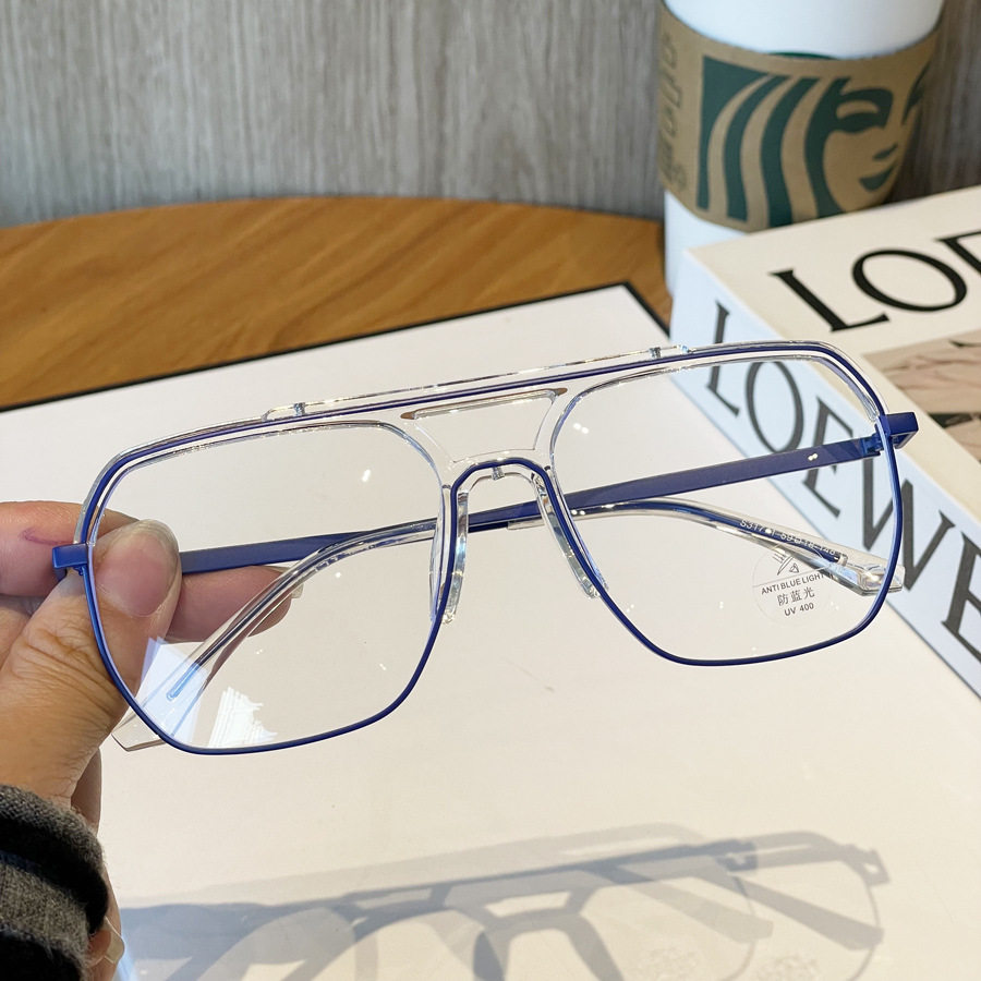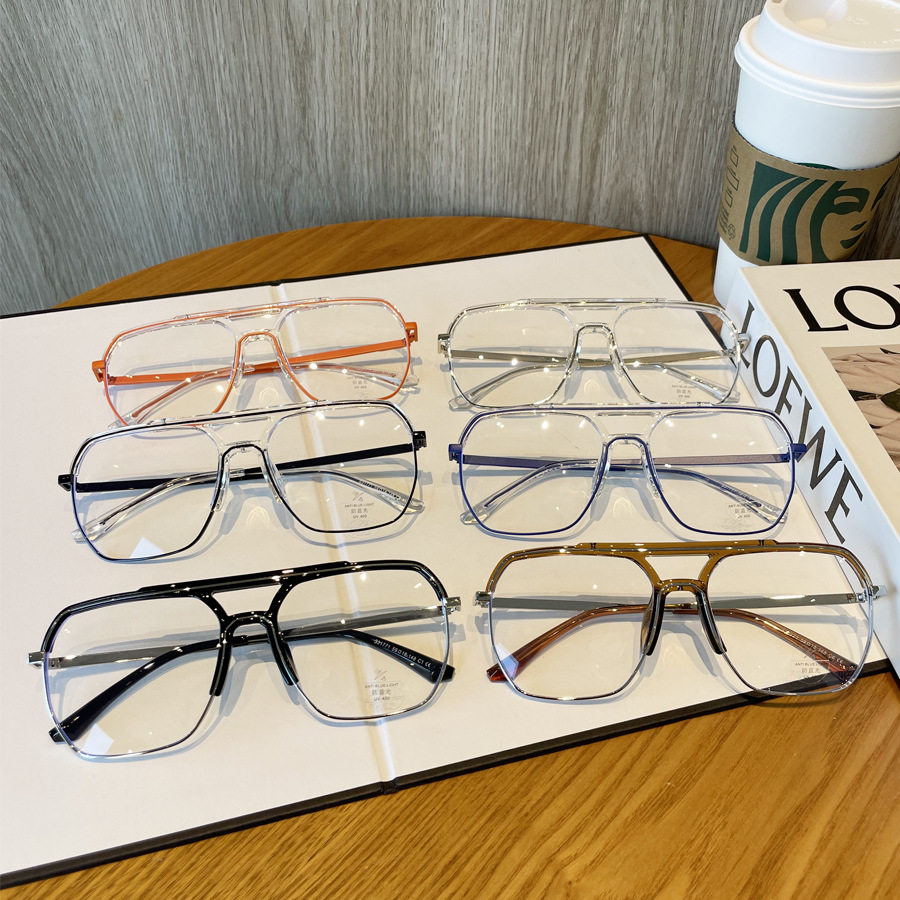 European and American Large Frame Double Beam Anti-Blue Glasses Ins Trendy Flat Glasses Frame Metal Plain Style Glasses Frame for Men and Women