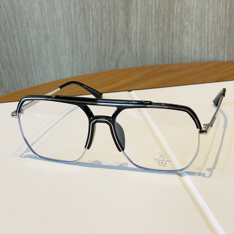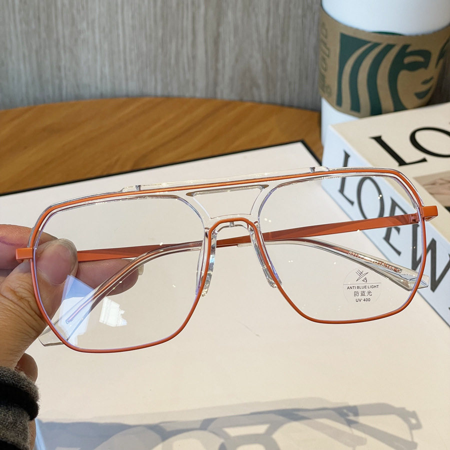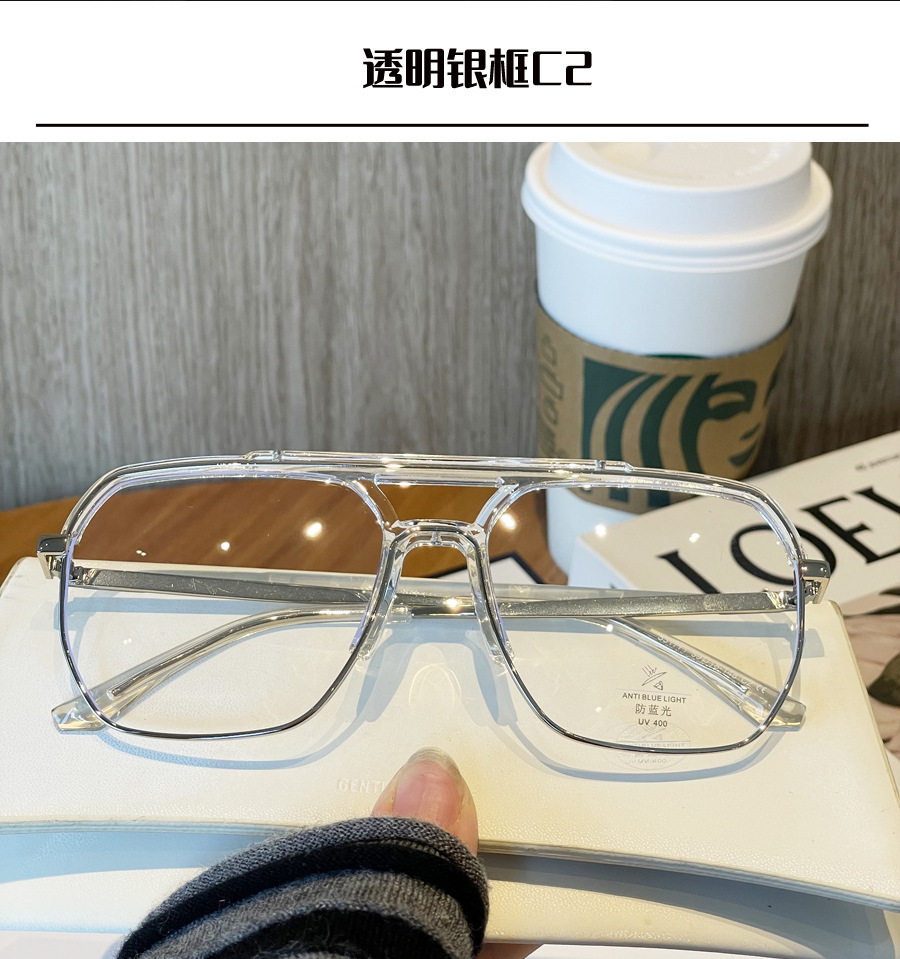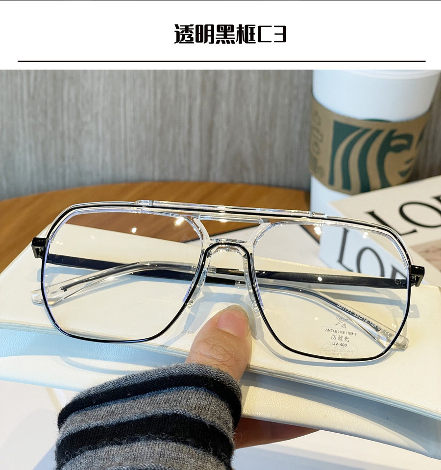 European and American Large Frame Double Beam Anti-Blue Glasses Ins Trendy Flat Glasses Frame Metal Plain Style Glasses Frame for Men and Women