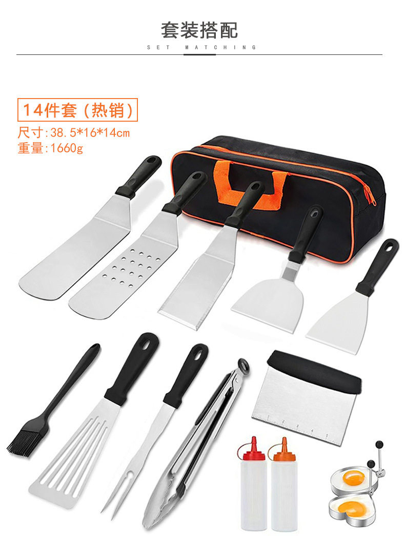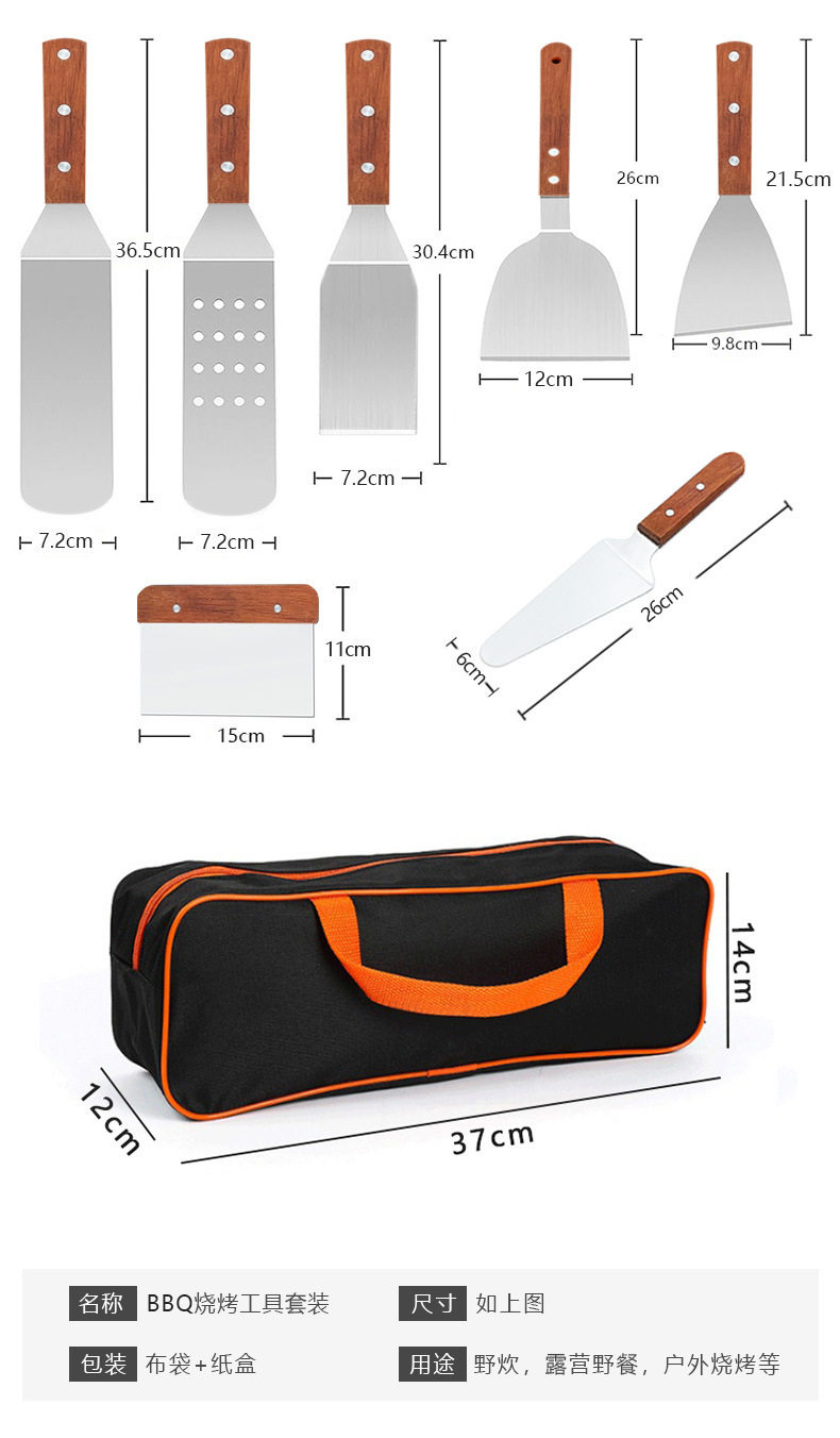 | Specifications | 14-piece set,12-piece set,6-piece set (plastic handle-dough shovel combination),6-piece set (wooden handle - cooking shovel combination),9-piece set (wooden handle-outdoor bbq combination) |