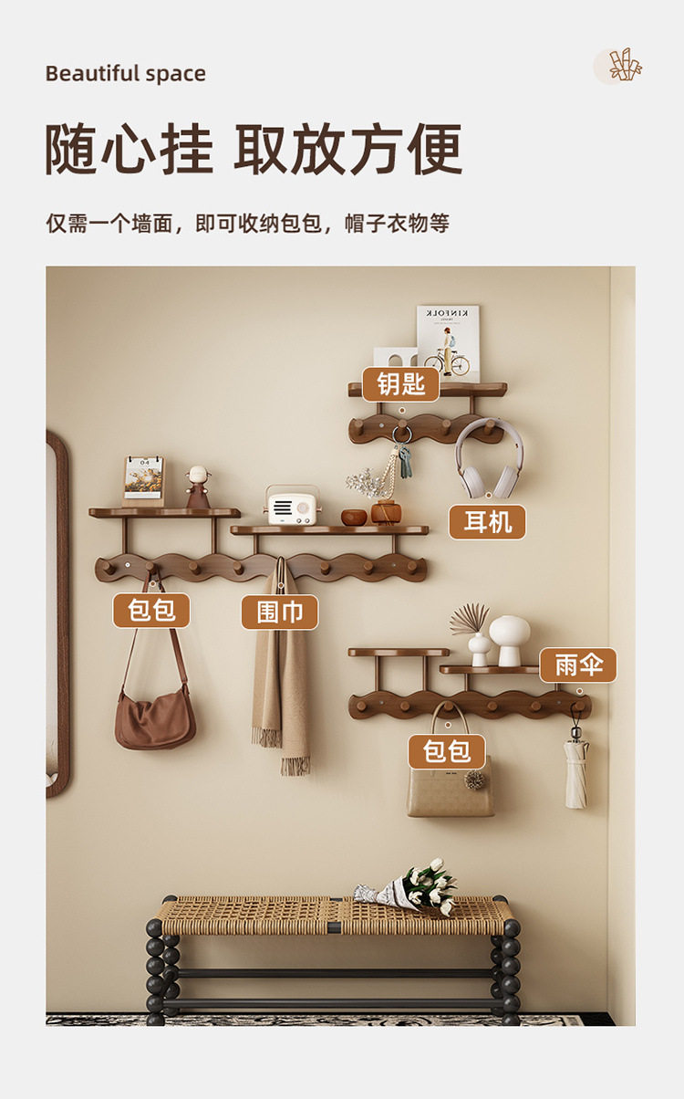 Entrance Hanger Wall Wall Hanging Entry Door Key Bag Storage Clothes Hook Bedroom Door Rear Wave Coat Rack