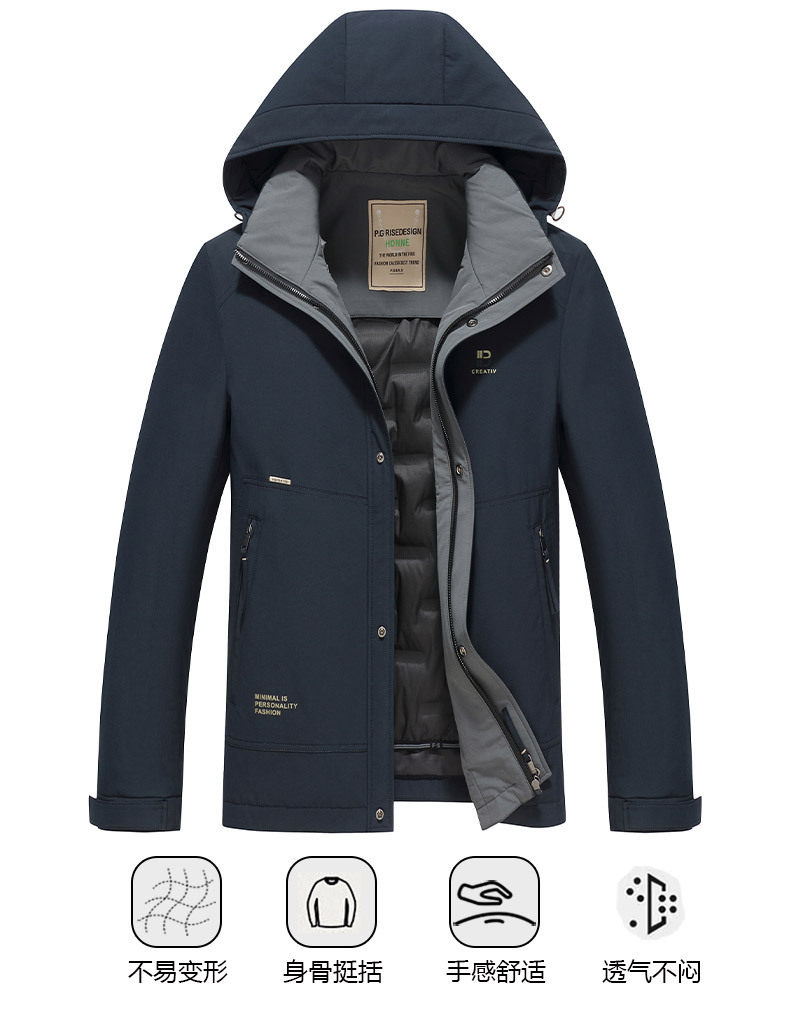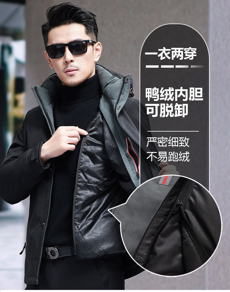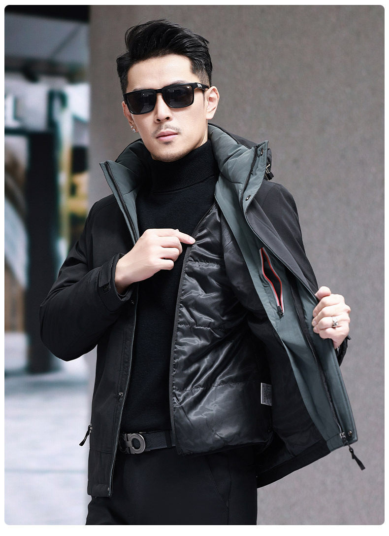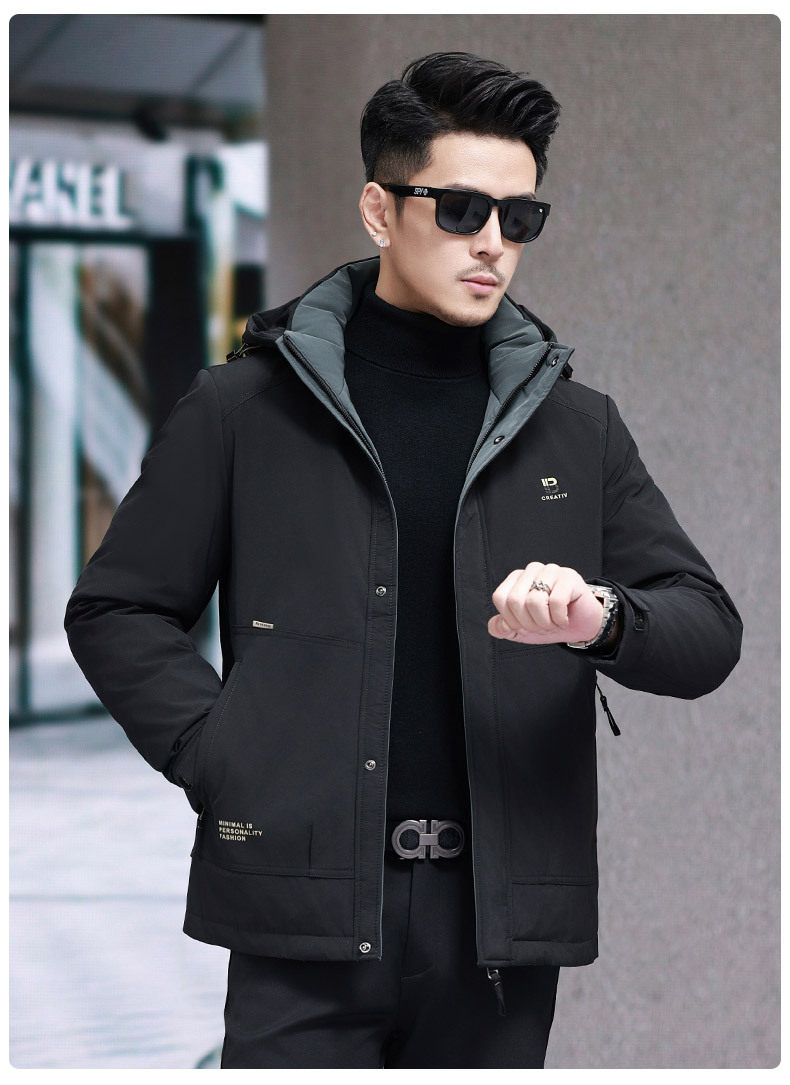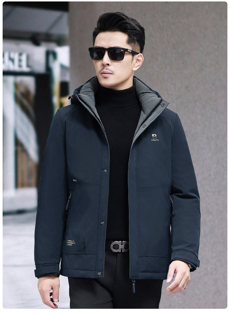 Hengyuanxiang 90 White Goose Down Hood Liner Removable Jacket Men's New Middle-aged Business Casual Warm Goose Down Clothes