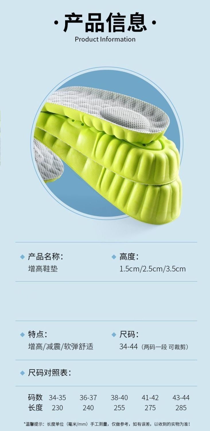 Inner Heightened Insole Men's Heightened Insole Women's Heightened Insole Women's Full Pad Women's Whole Insole Winter Martin Boots Insole