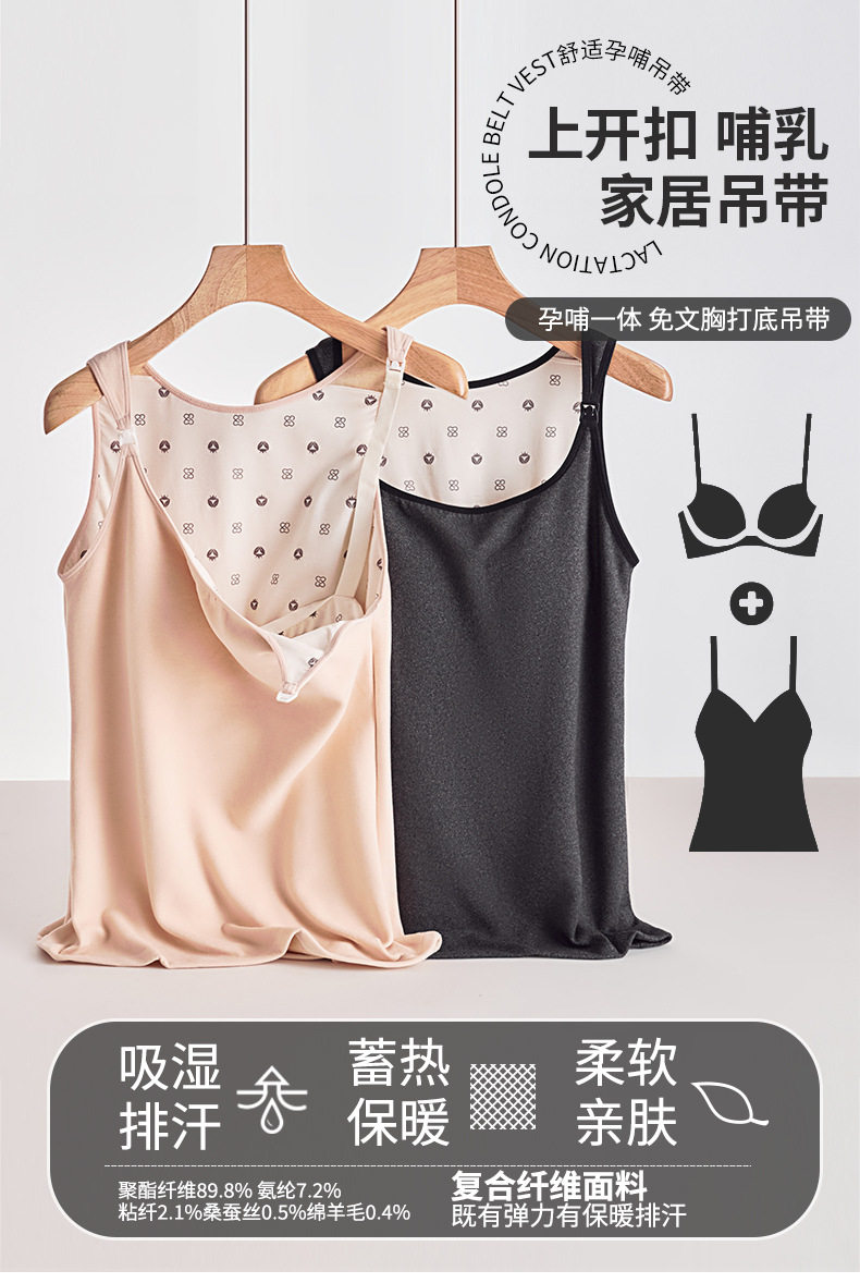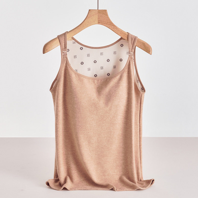 fleece-lined Thickened Pregnant Women's Lactation Camisole Autumn and Winter with Chest Pad for Nursing Postpartum Warm Clothes Home Camisole