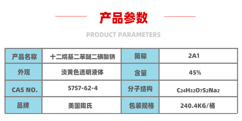 Emulsifier Dow anionic surfactant 2A1 cleaning printing and dyeing sodium dodecyl diphenyl ether disulfonate