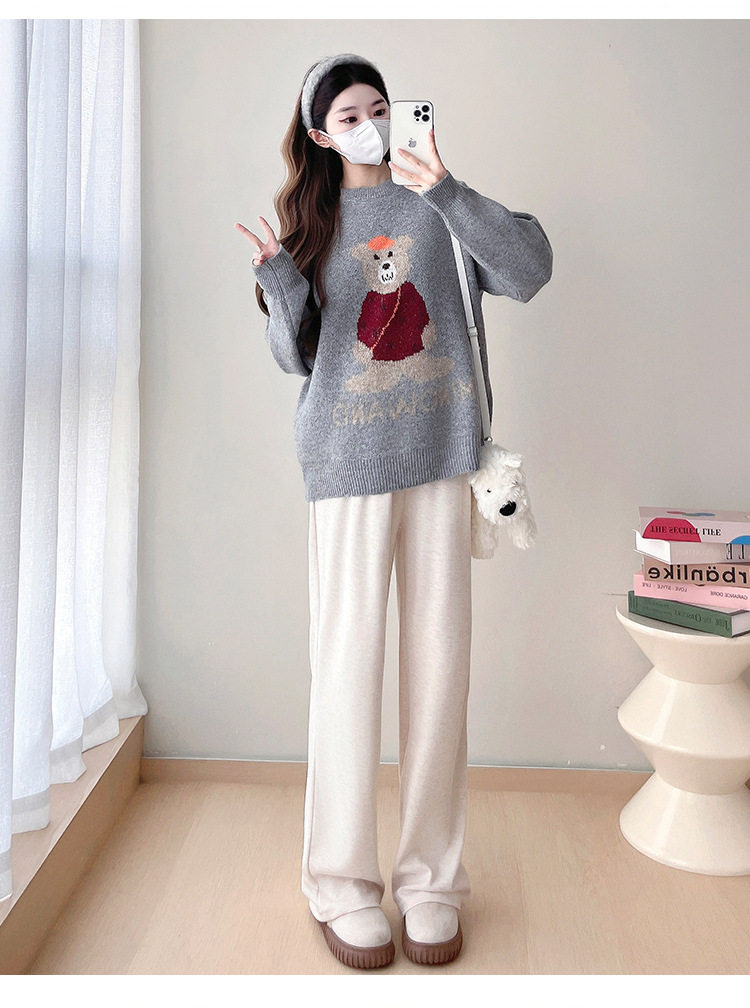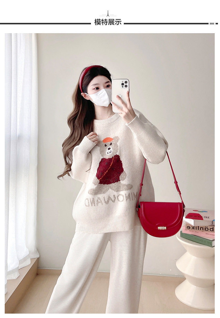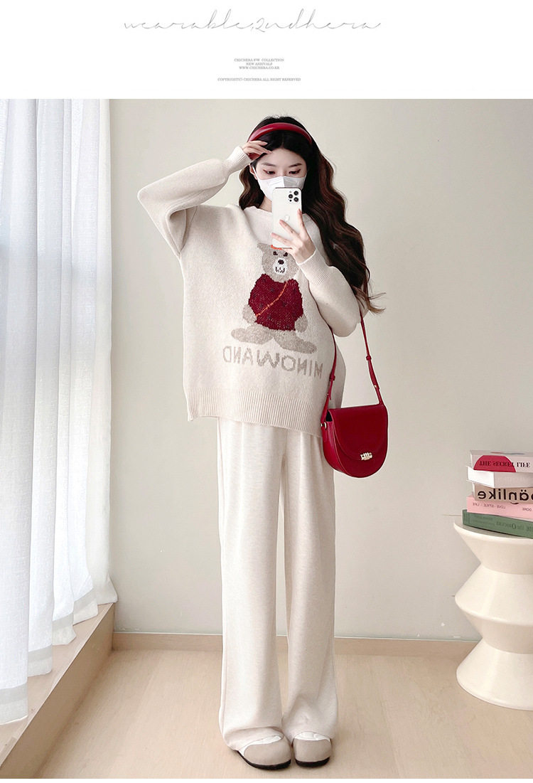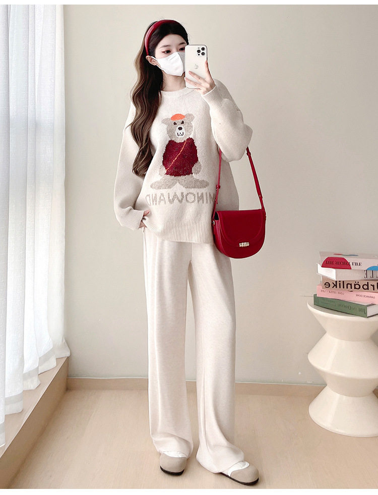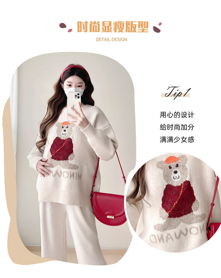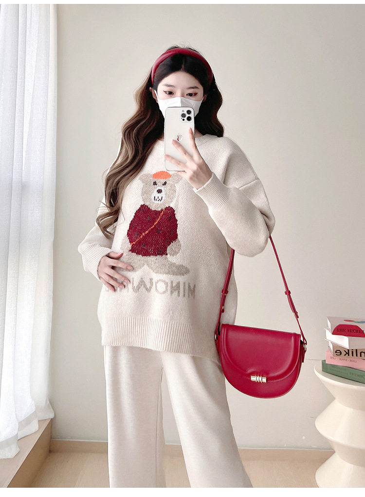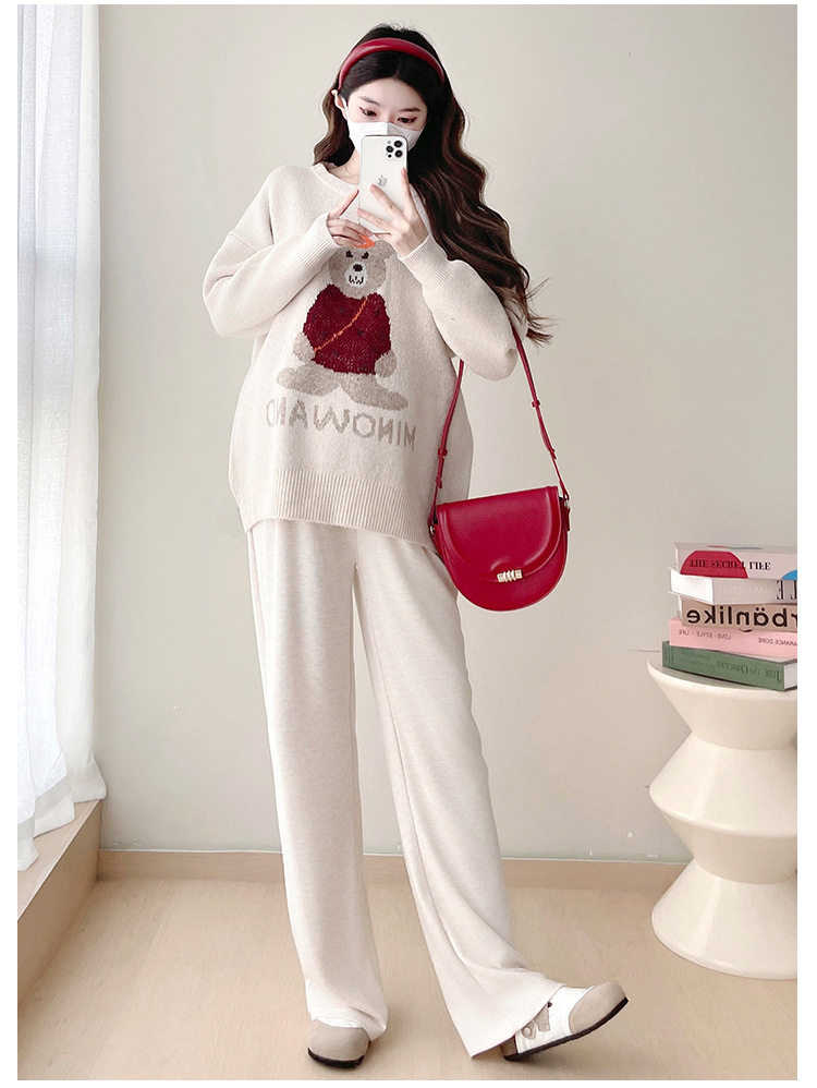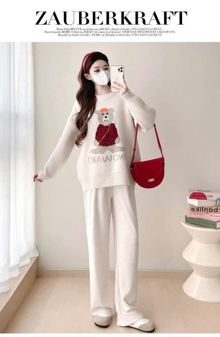 Pregnant Women's Autumn and Winter Sweater suit 2024 New Bear Thickened Loose All-match Knitted Shirt Casual Two-piece Set