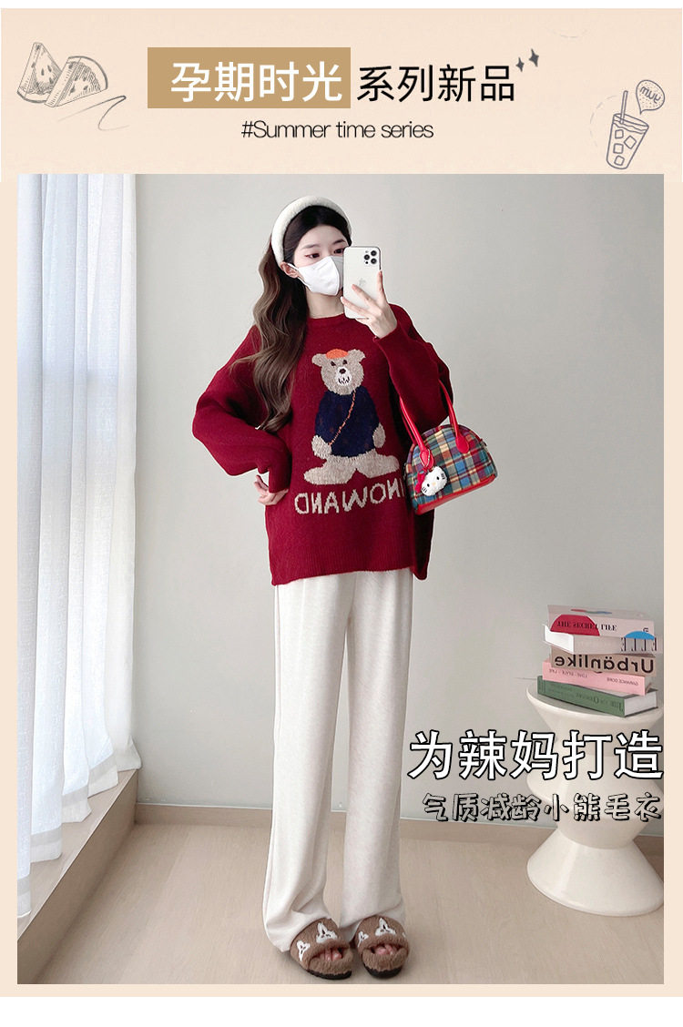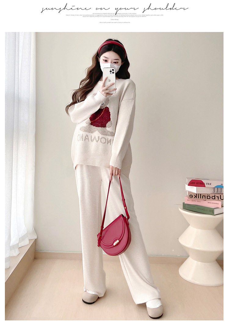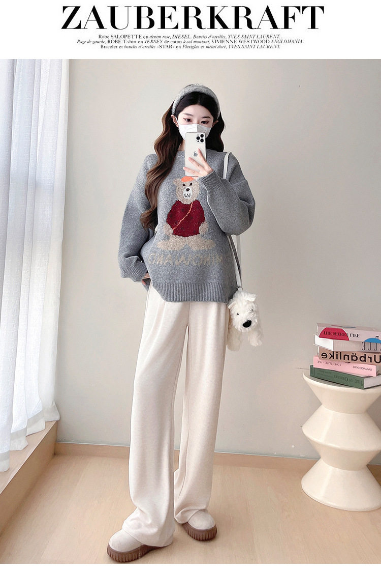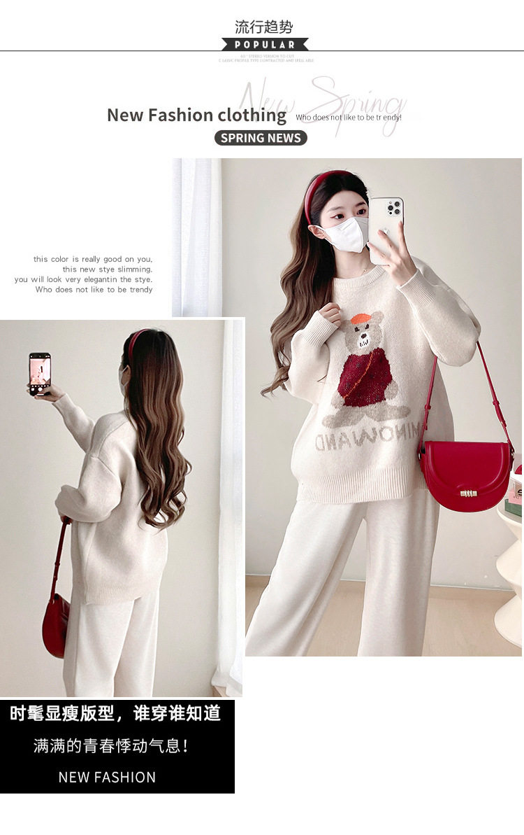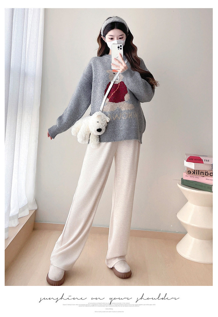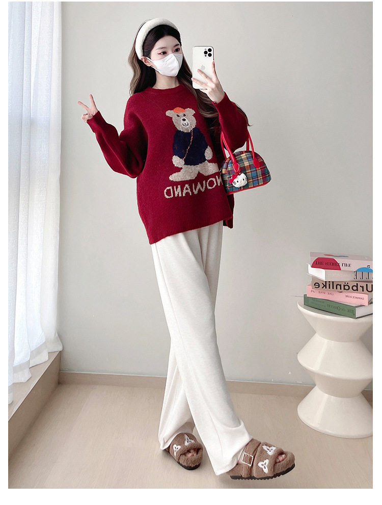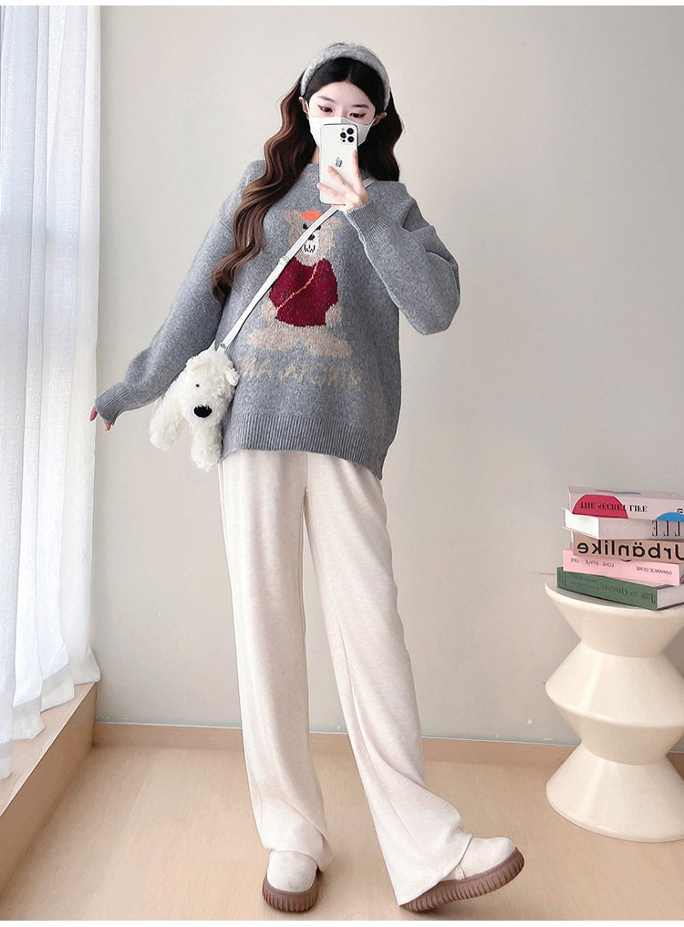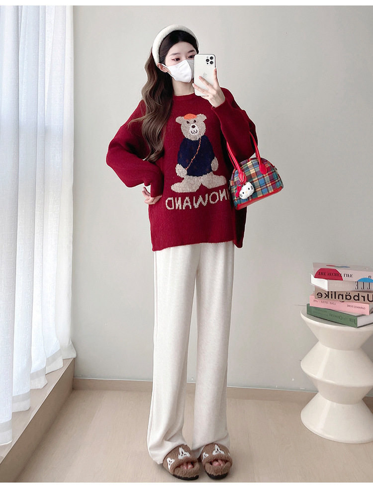 Pregnant Women's Autumn and Winter Sweater suit 2024 New Bear Thickened Loose All-match Knitted Shirt Casual Two-piece Set